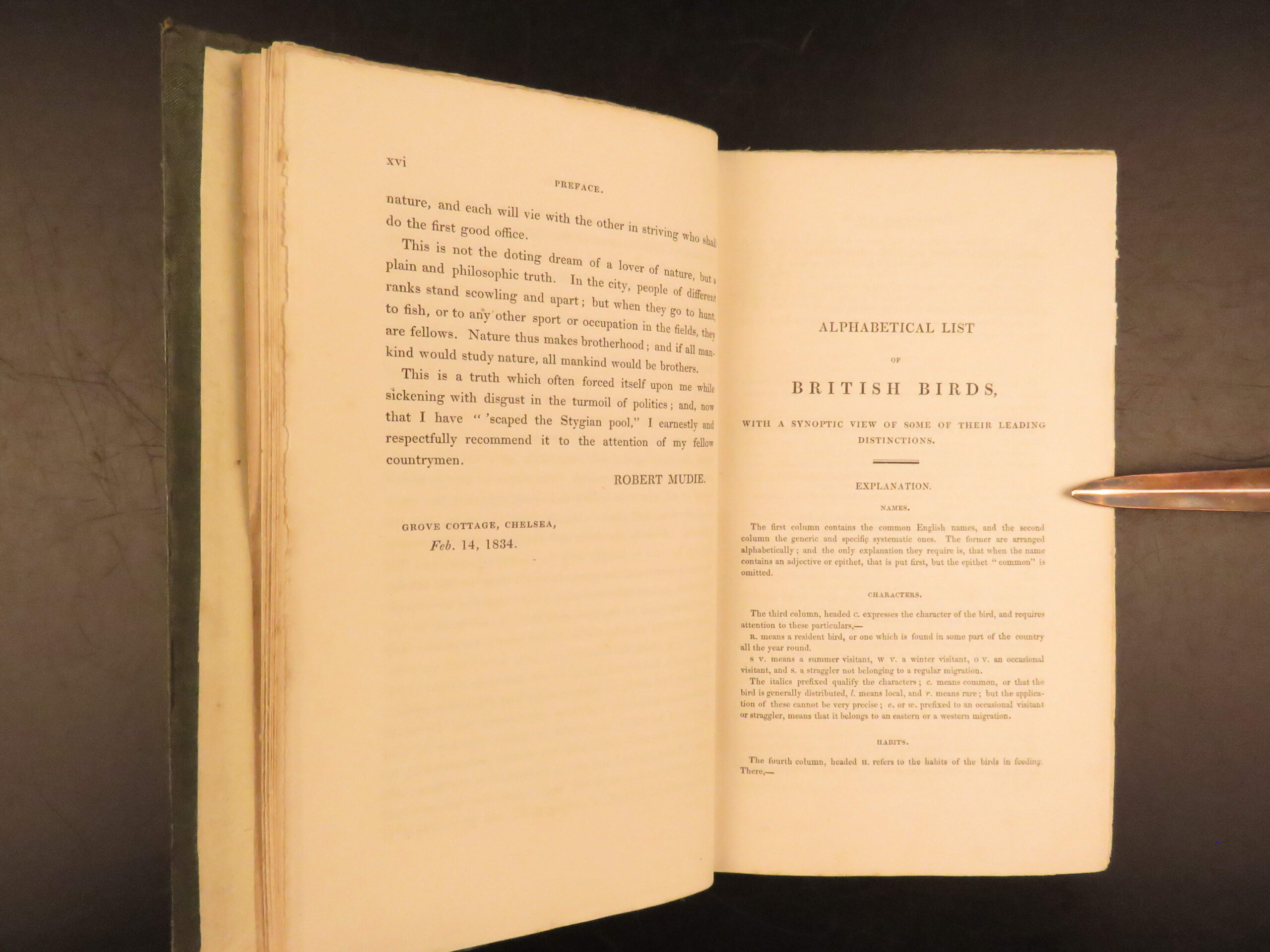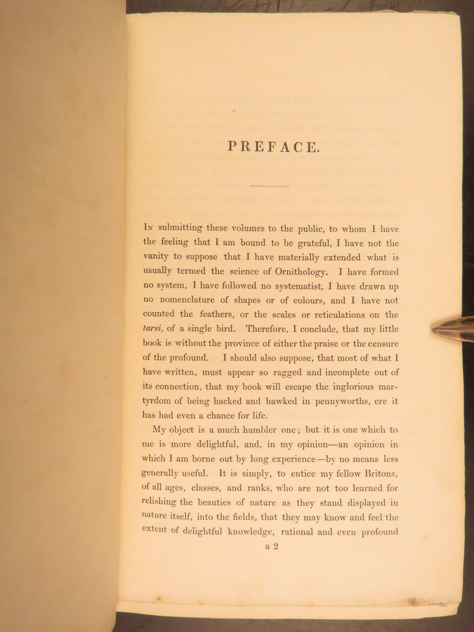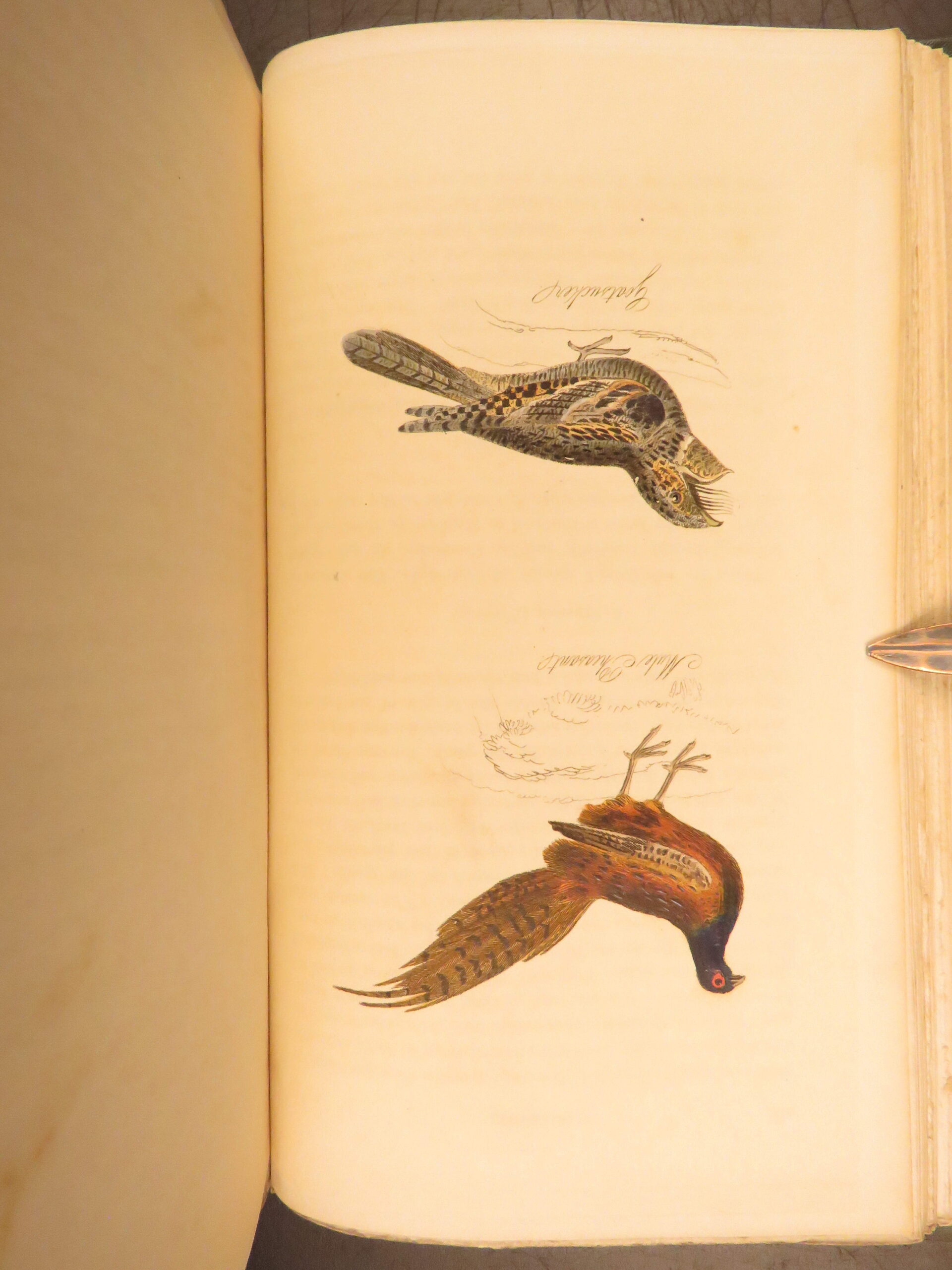 Robert Mudie’s 1834-1835 Feathered Tribes is a two volume first edition on British birds, featuring hand-colored plates and descriptions of species from eagles to songbirds.