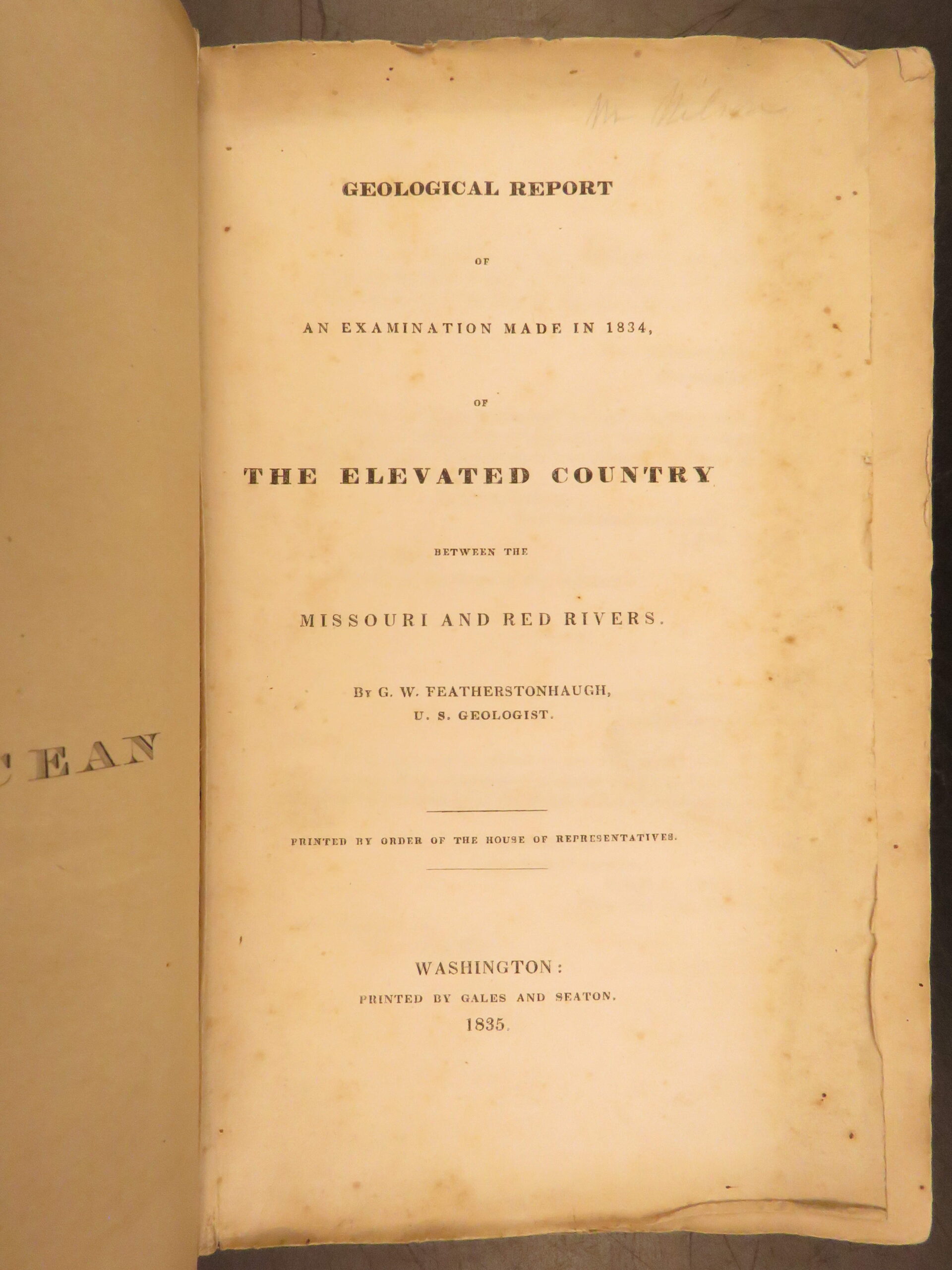 • Title: Geological Report of an Examination Made in 1834 of the Elevated Country between the Missouri and Red Rivers