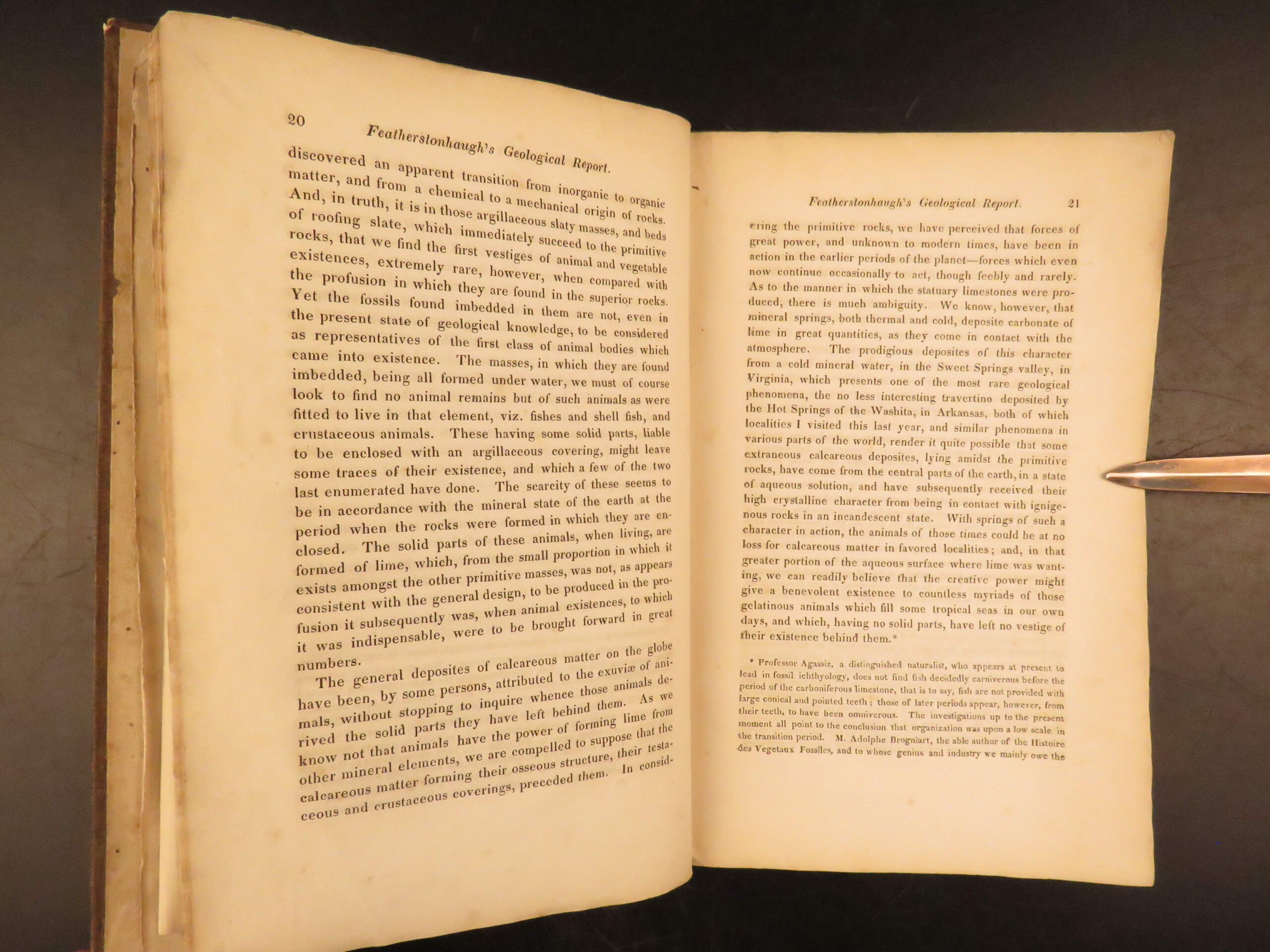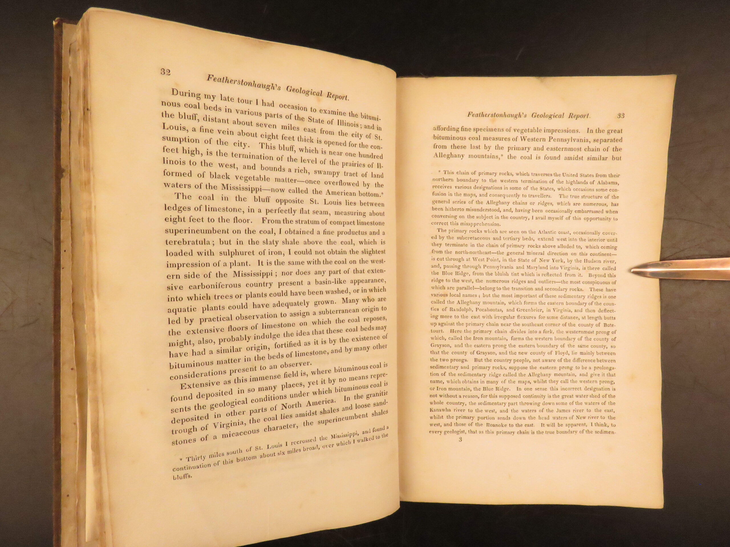 Geological report – george featherstonhaugh – 1835 | folding map, fossils | first edition of george william featherstonhaugh’s 1835 geological report surveying missouri, arkansas, and indian territory with analysis of strata, fossils, coal, iron, and novaculite, including one large folding map.