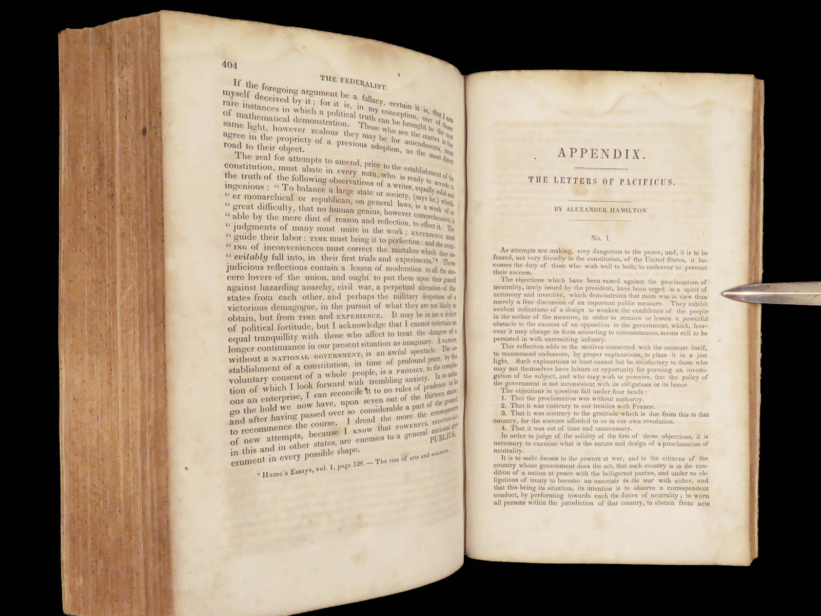 This rare 1842 ‘new edition’ was printed with an appendix that consists of the Letters of Pacificus and Helvidius on the Proclamation of Neutrality of 1793, based on the first Hallowell edition of 1837.
