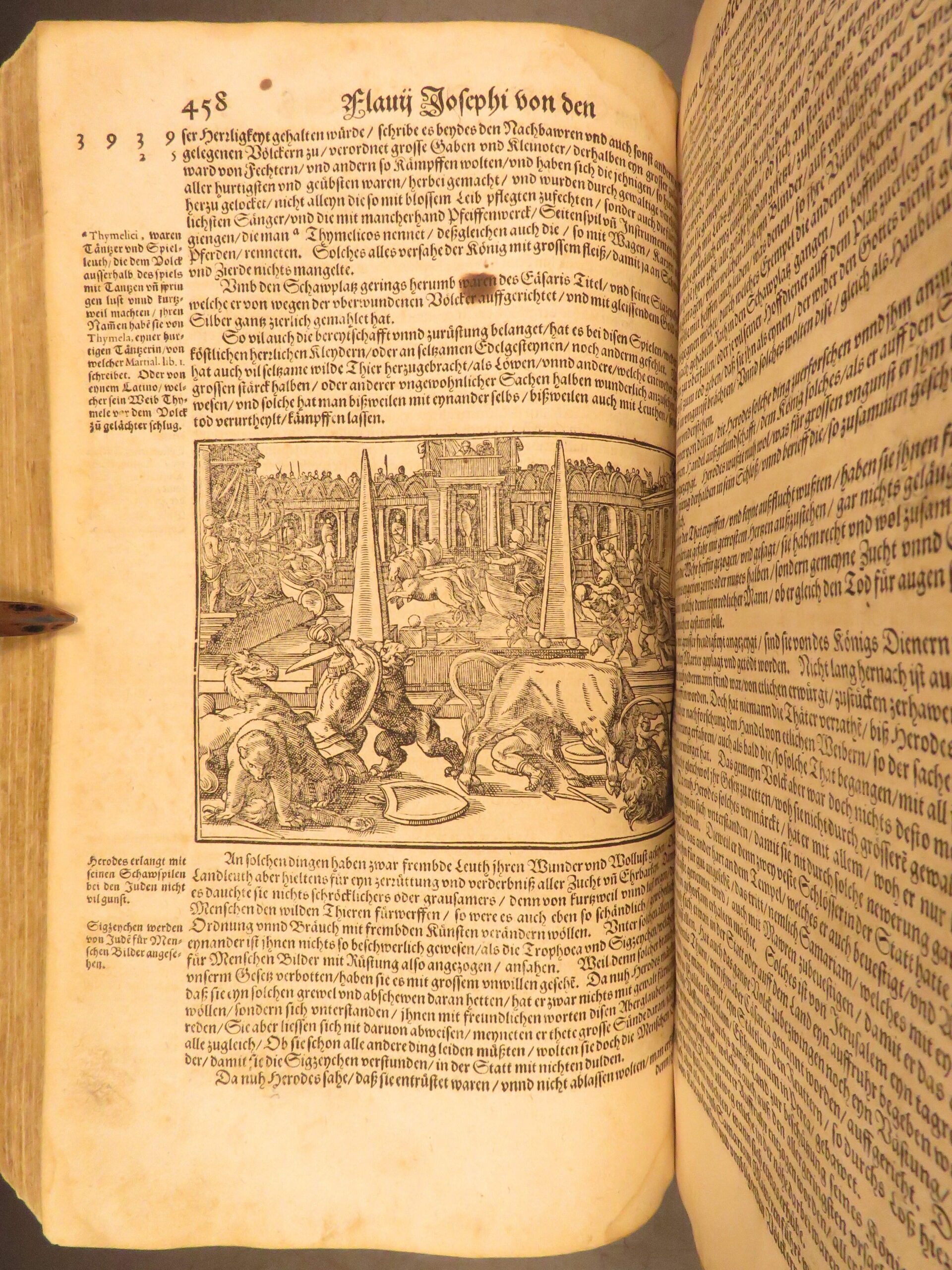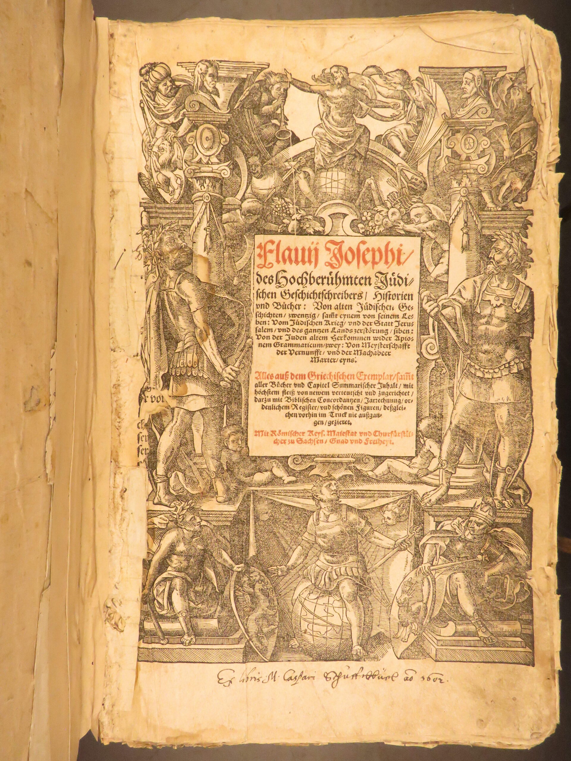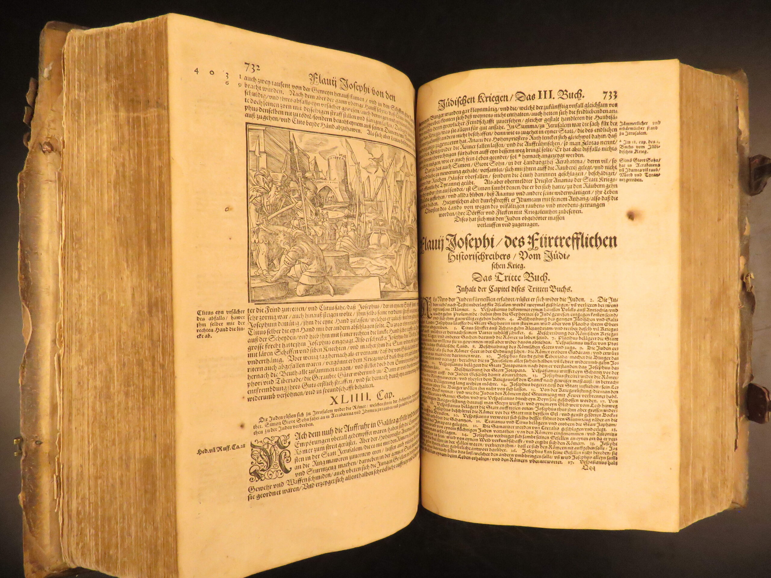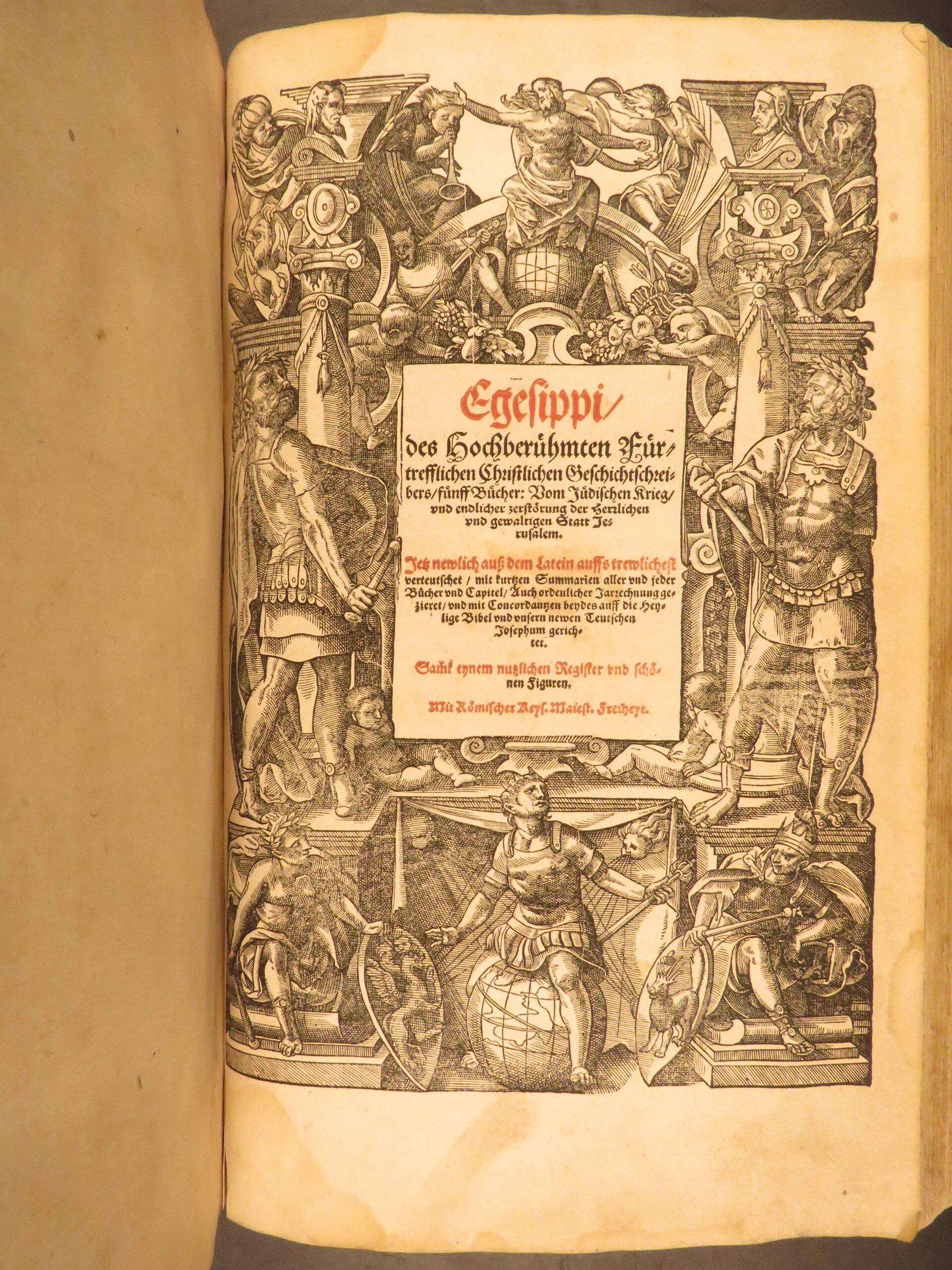 German folio edition of Josephus’s Antiquities, printed in 1578 in Strasbourg by Rihel, with full woodcuts and bound with Egesippus’s five Christian historical books in vellum.