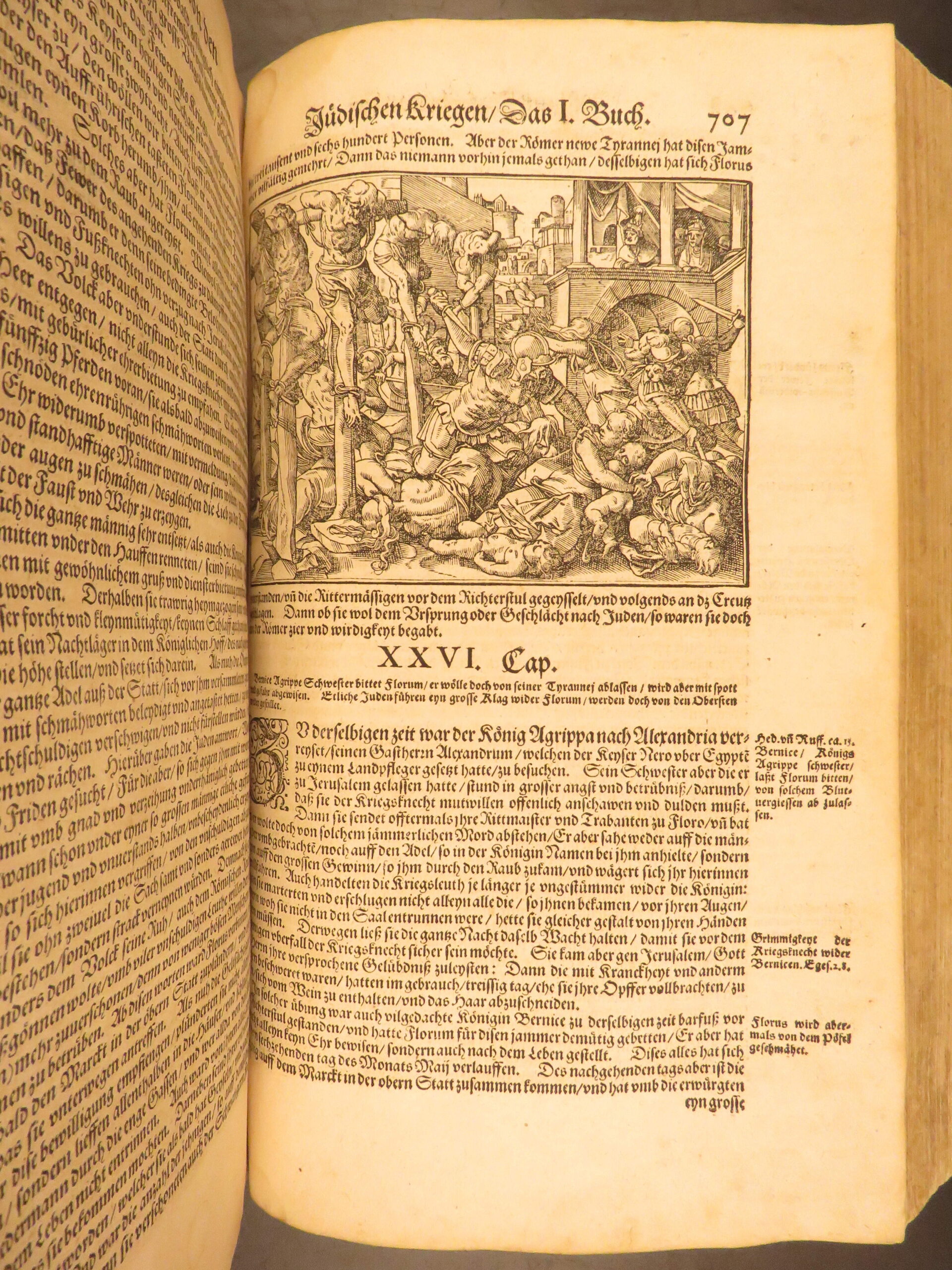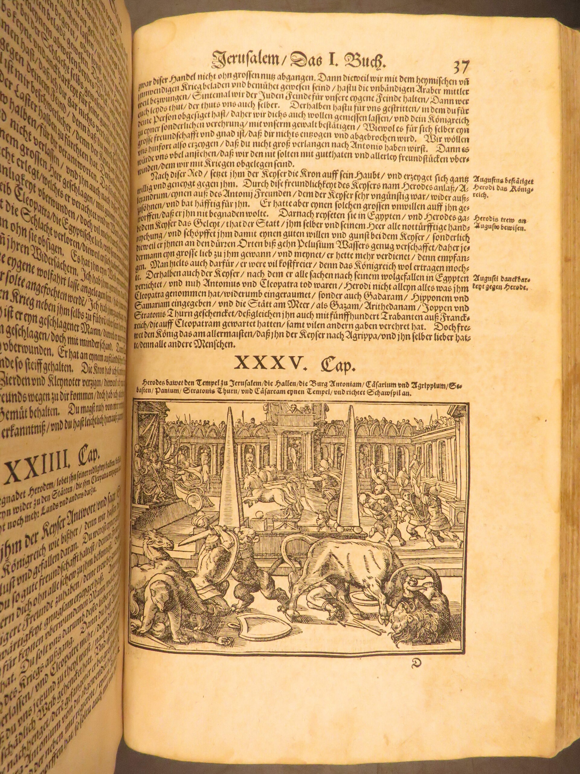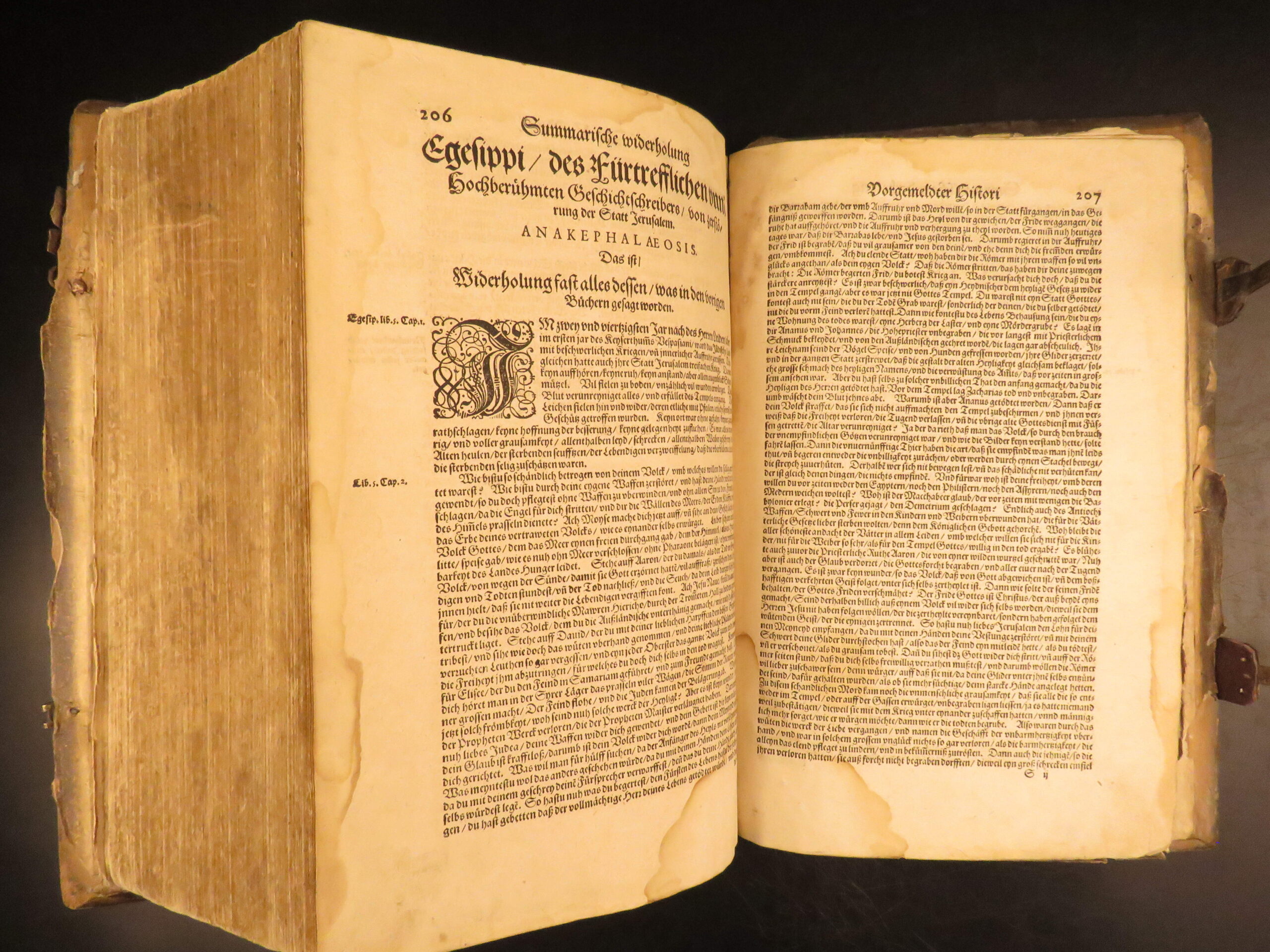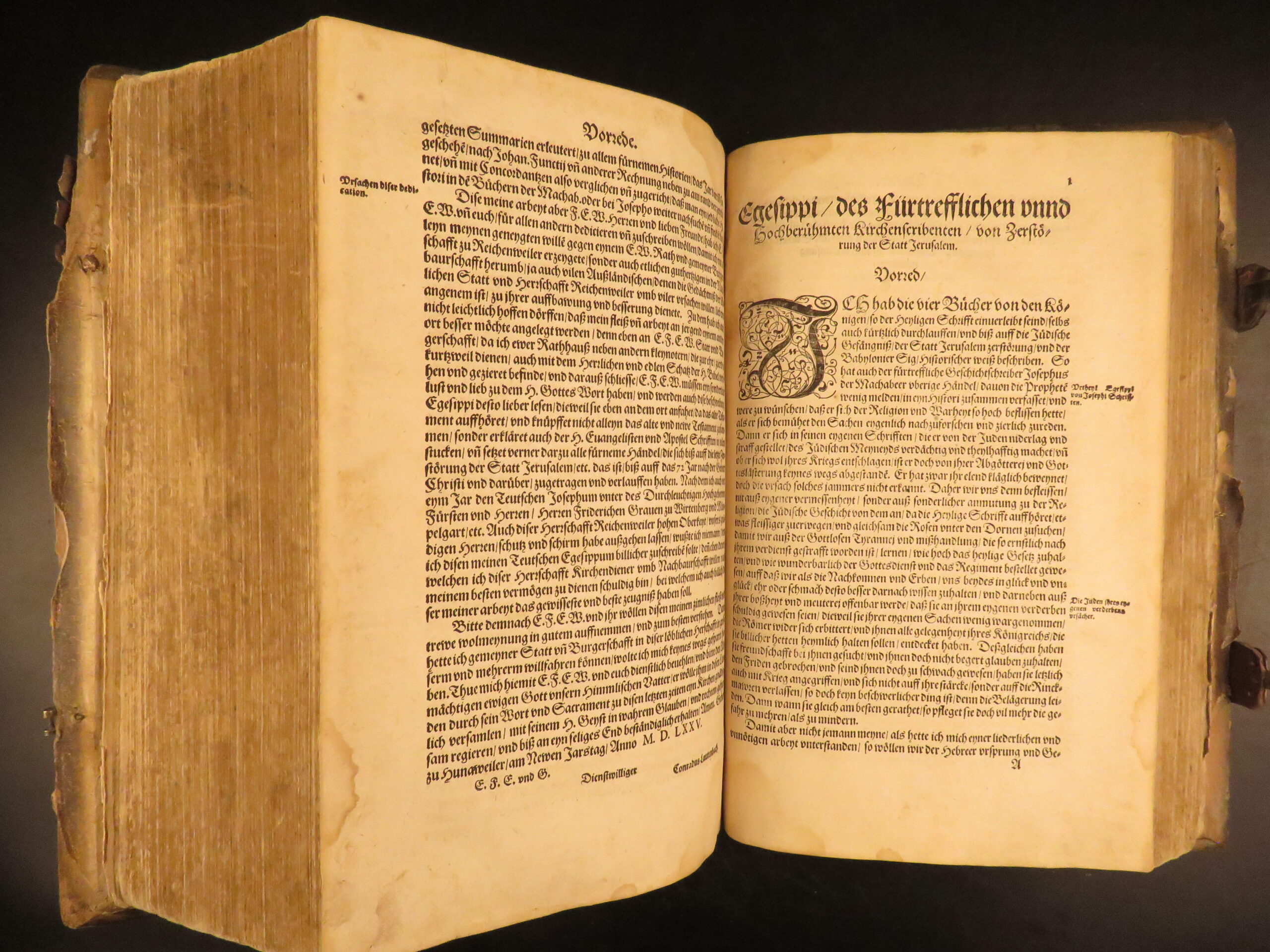 German folio edition of Josephus’s Antiquities, printed in 1578 in Strasbourg by Rihel, with full woodcuts and bound with Egesippus’s five Christian historical books in vellum.