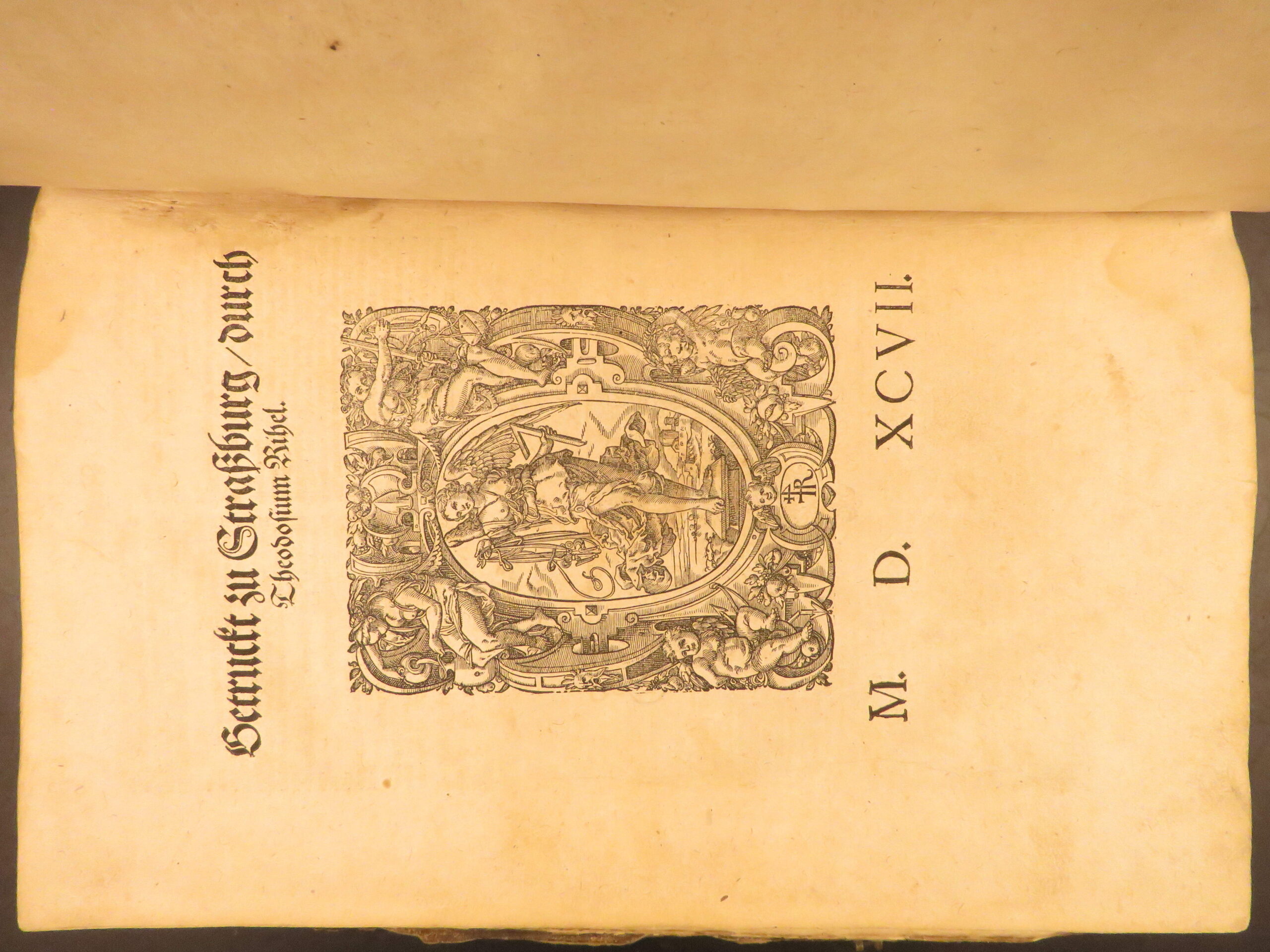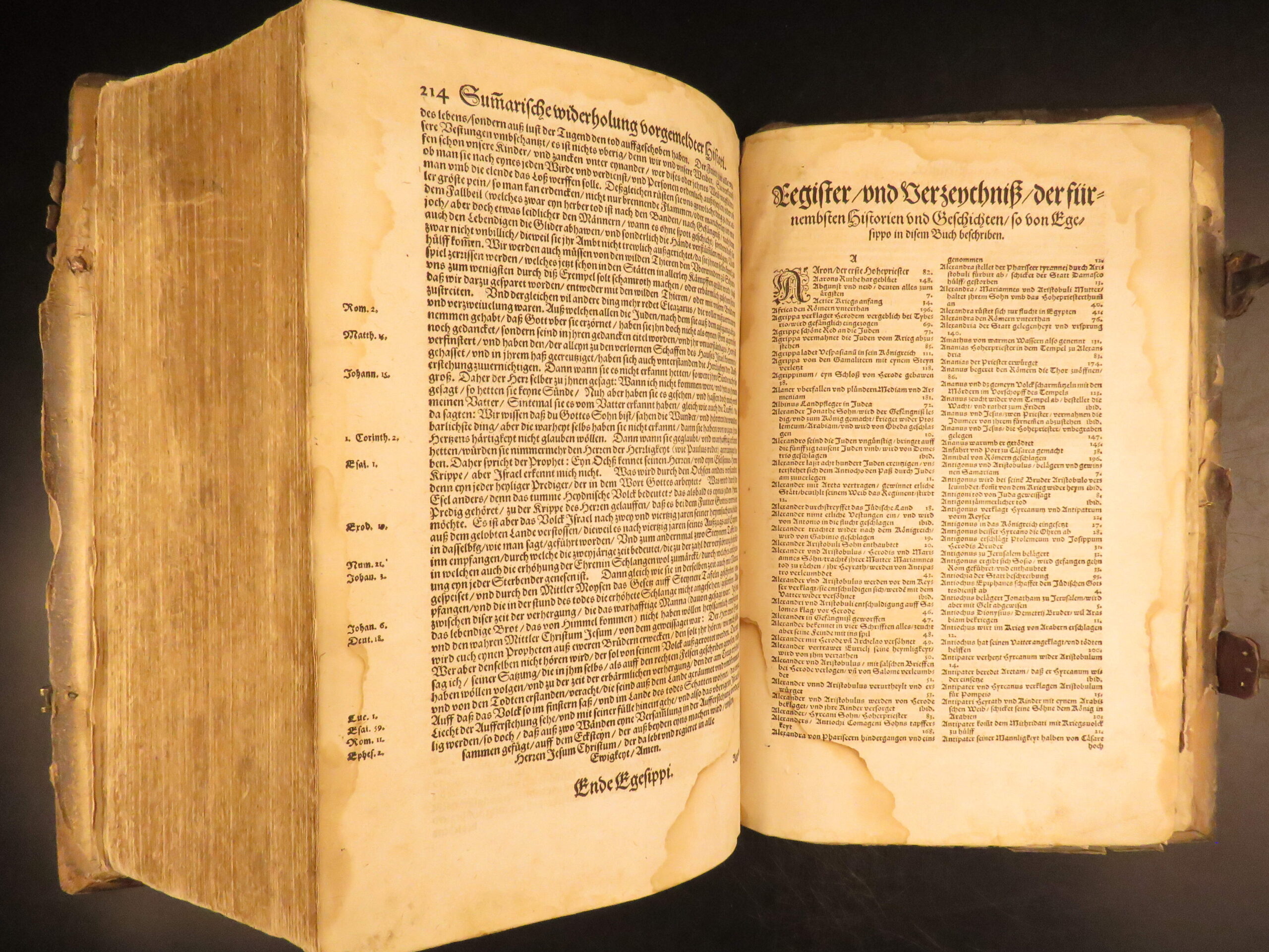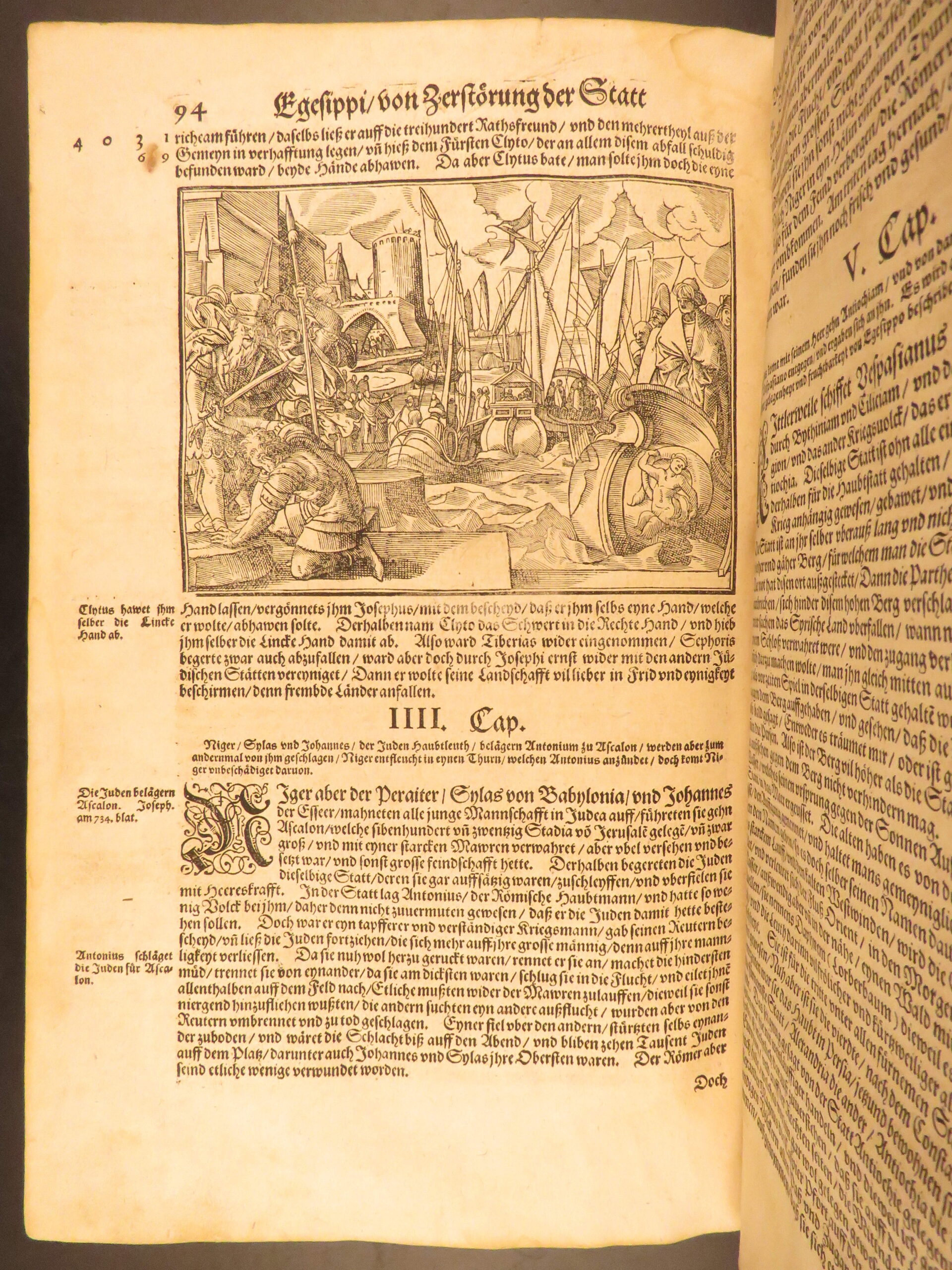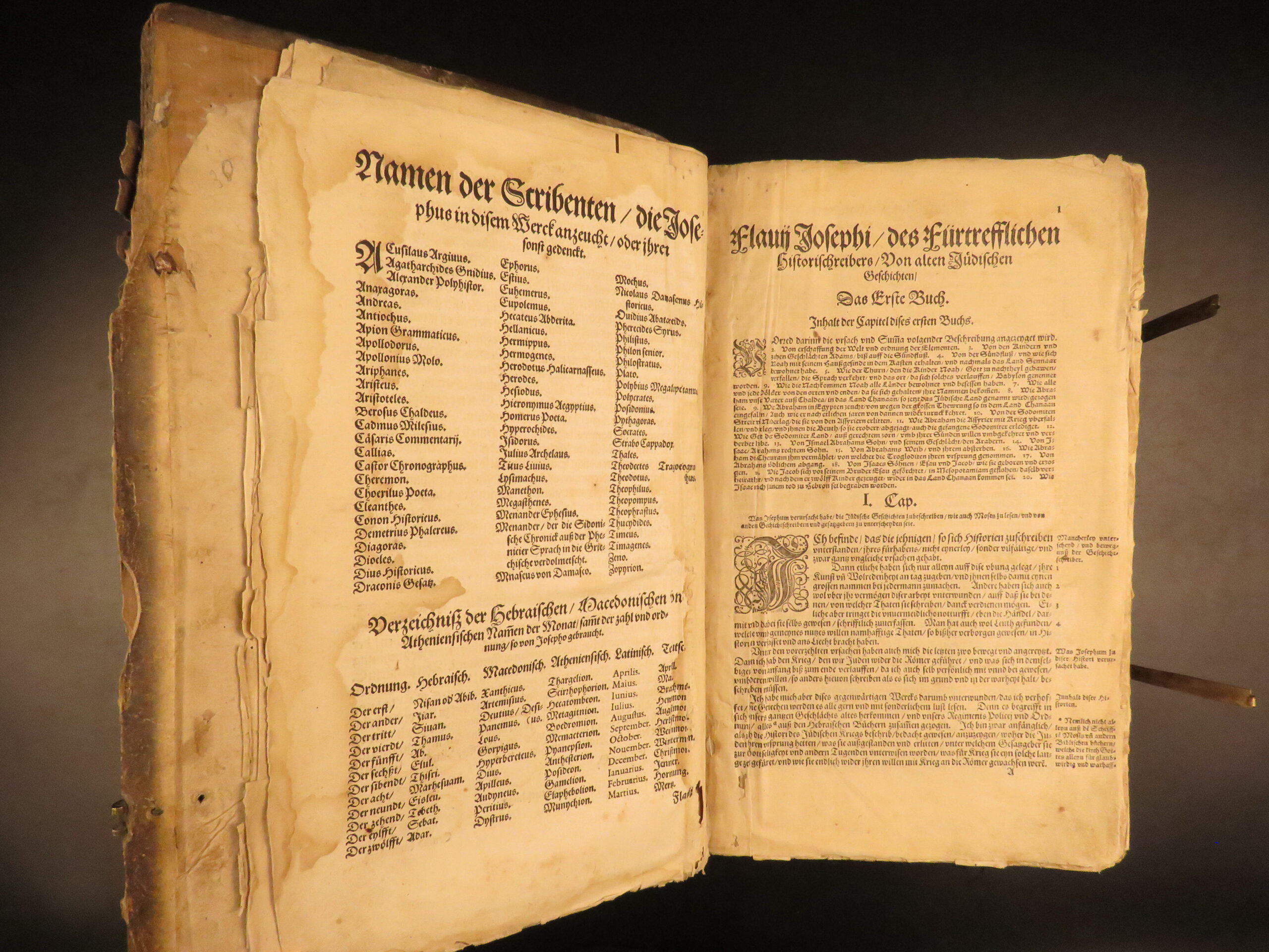 German folio edition of Josephus’s Antiquities, printed in 1578 in Strasbourg by Rihel, with full woodcuts and bound with Egesippus’s five Christian historical books in vellum.