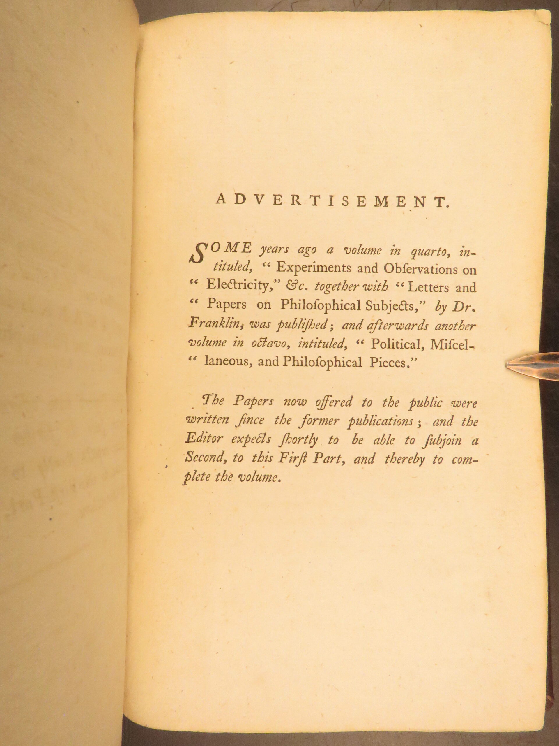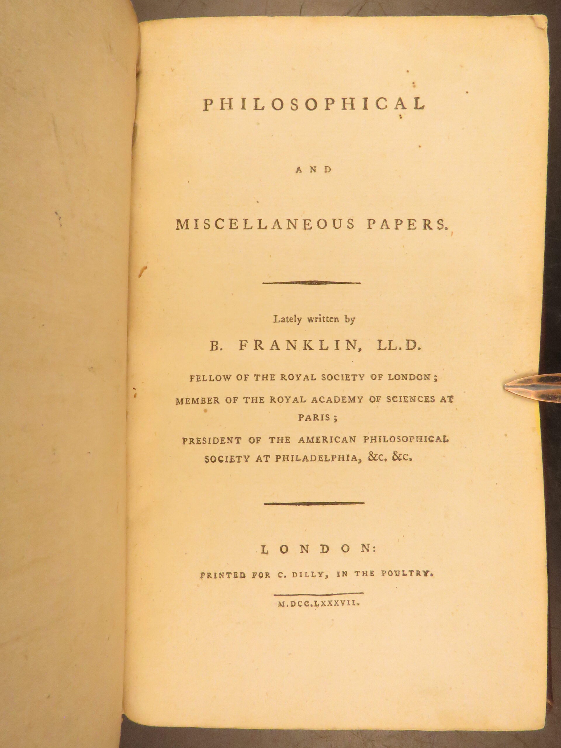 Philosophical and Miscellaneous Papers – Benjamin Franklin – 1787 | First Edition