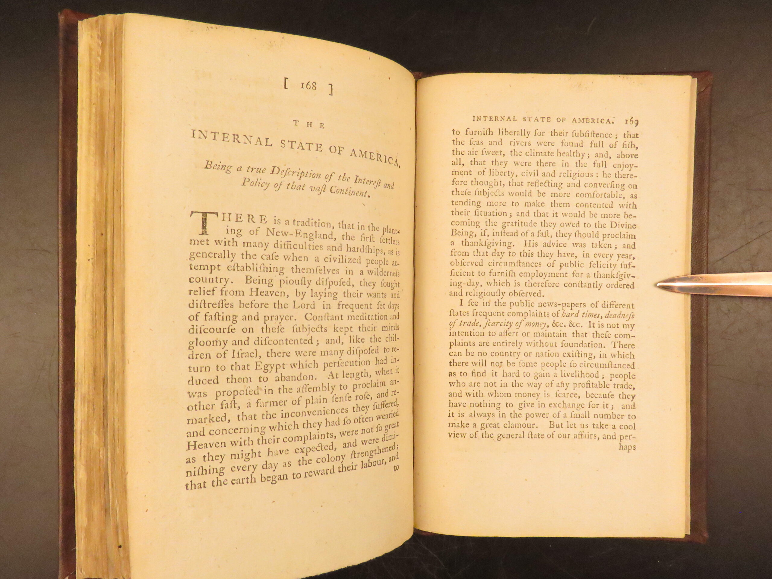 Philosophical and Miscellaneous Papers by Benjamin Franklin, first published in 1787, is a collection of Franklin’s reflections on invention, diplomacy, correspondence, and life in Colonial America. This first edition includes a thorough description of his ‘smokeless stove’, now known as the Franklin Stove, as well as a commentary on the challenges Americans faced following the Revolution.