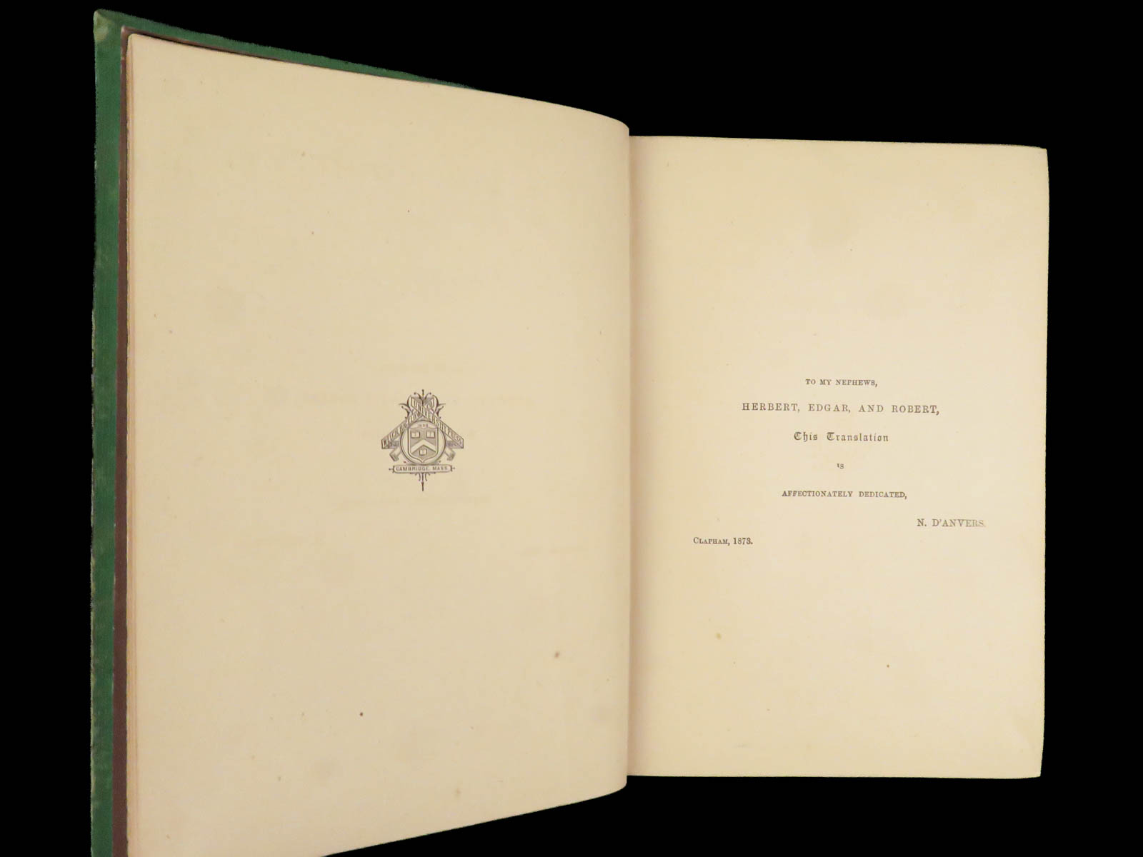 - Binding: Original green cloth with black and gilt stamping