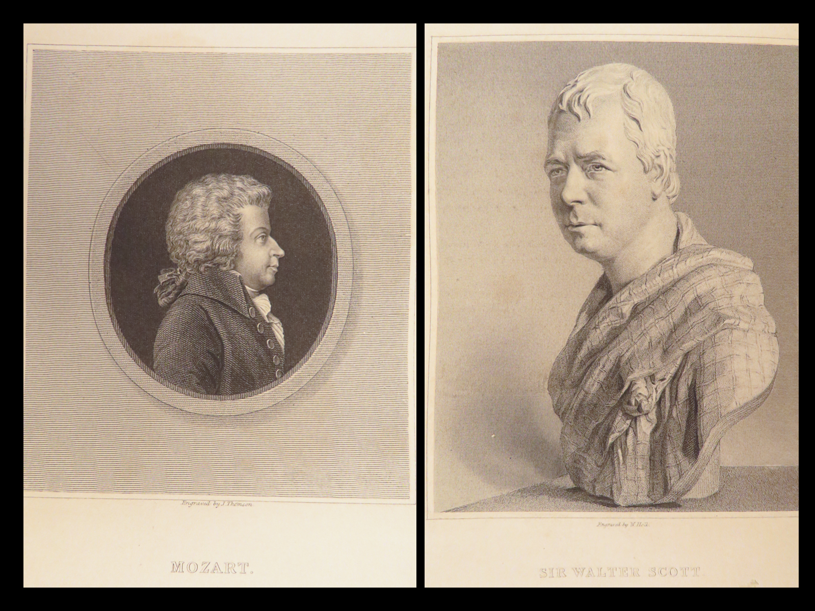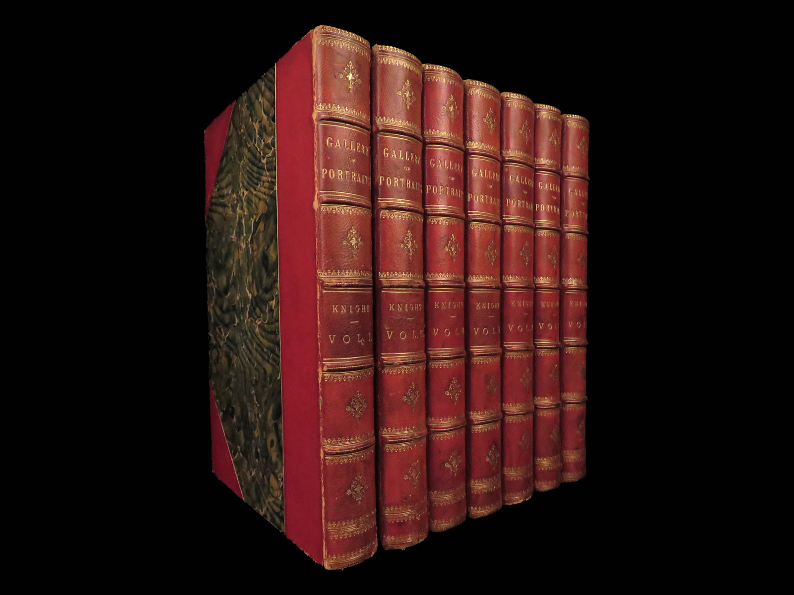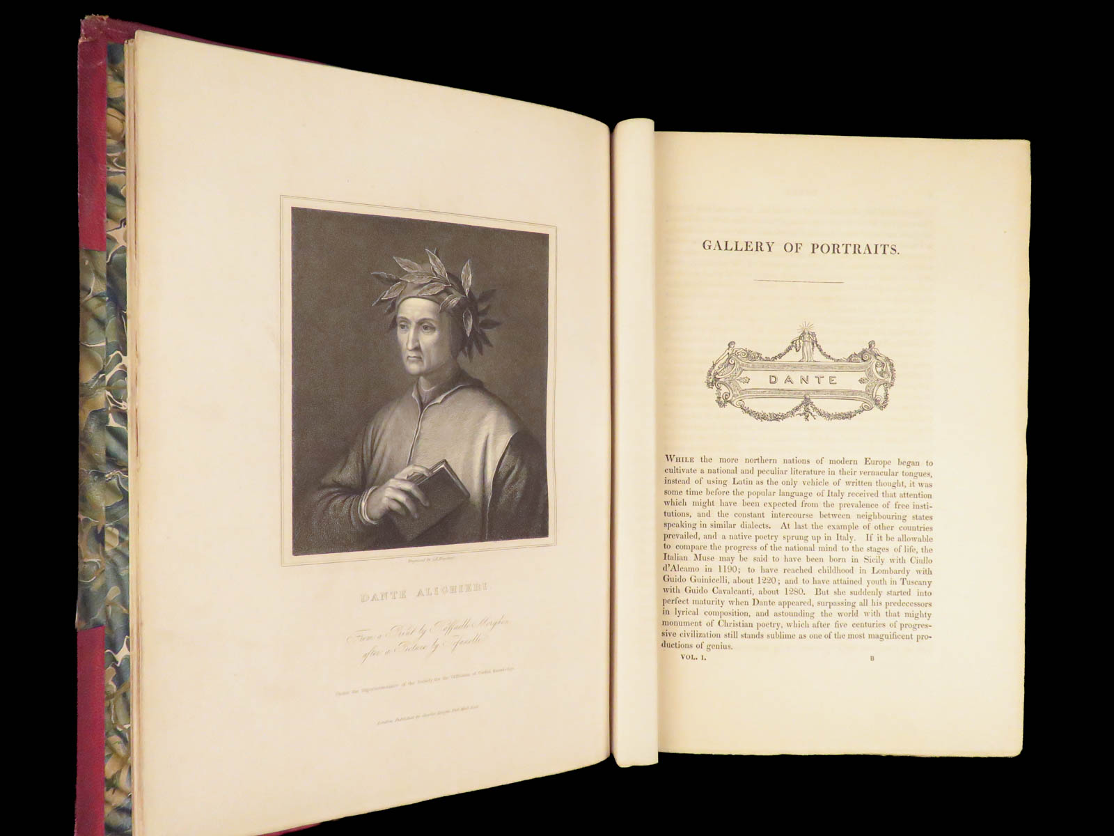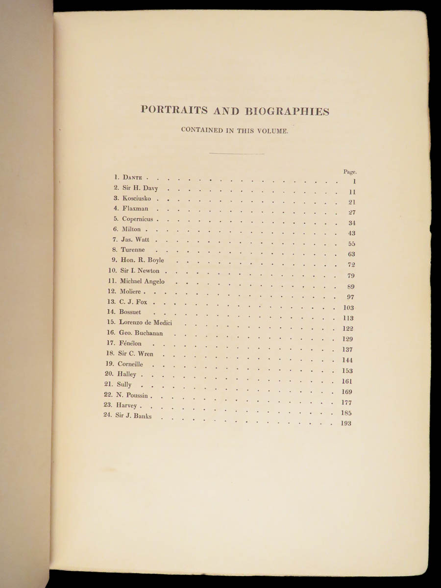 Arthur Thomas Malkin’s The Gallery of Portraits with Memoirs (1833), a first edition in seven volumes, contains 168 steel-engraved portraits with biographies of Dante, Newton, Washington, Napoleon, and other influential figures.