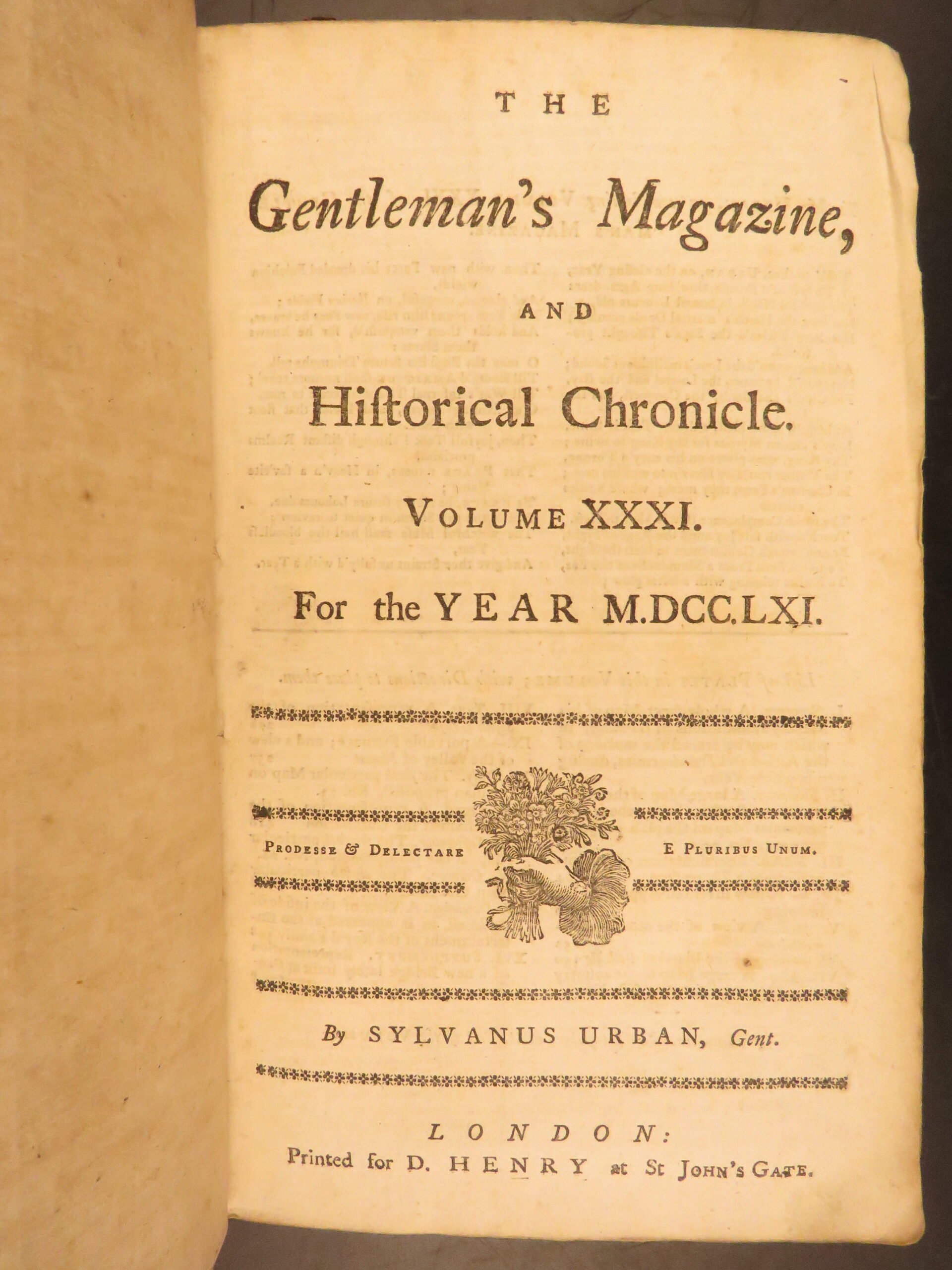 The Gentleman’s Magazine was an English periodical which first appeared in 1731. It was published without interrupt for nearly 200 years and was the first of its kind to use the term ‘magazine’. It was published by Edward Cave, pseud. Sylvanus Urban.