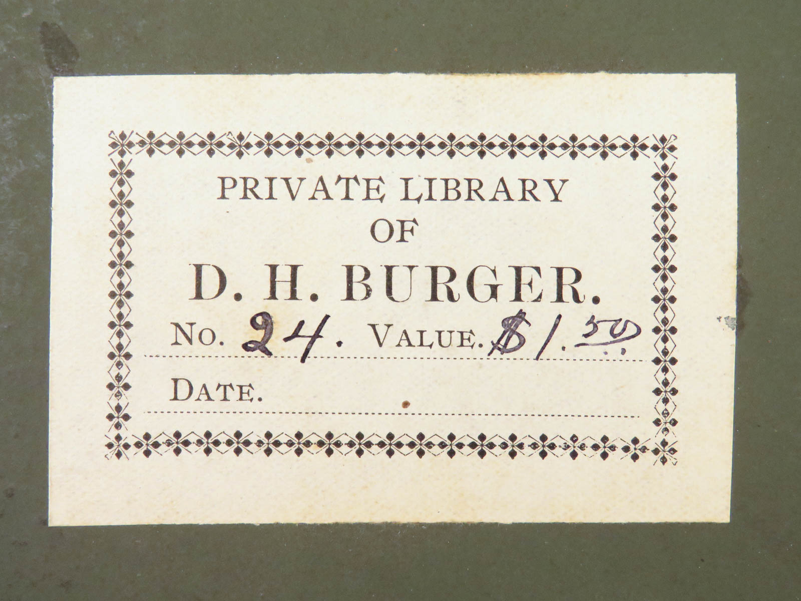 - Provenance: Bookplate of D. H. Burger on front pastedown