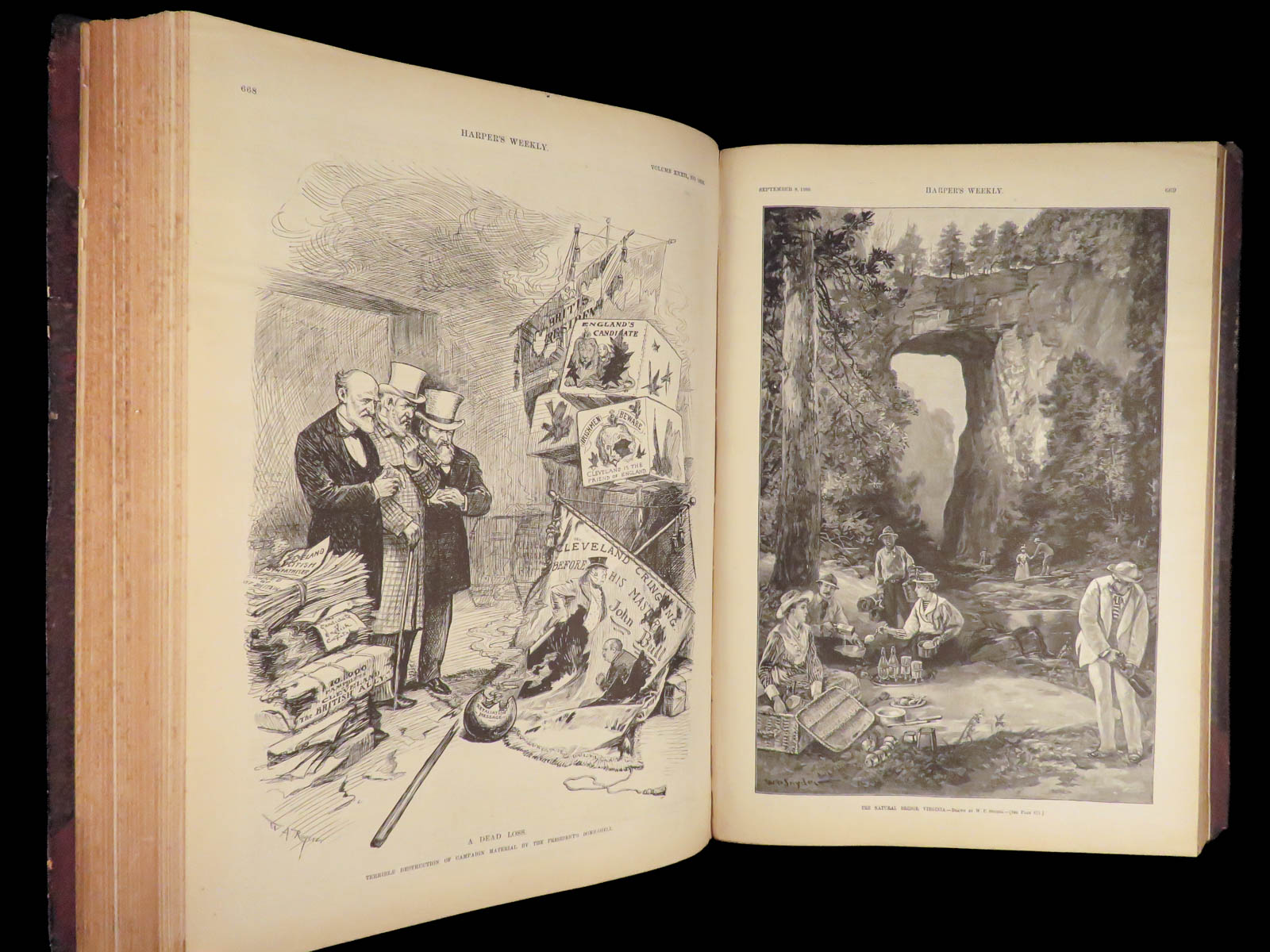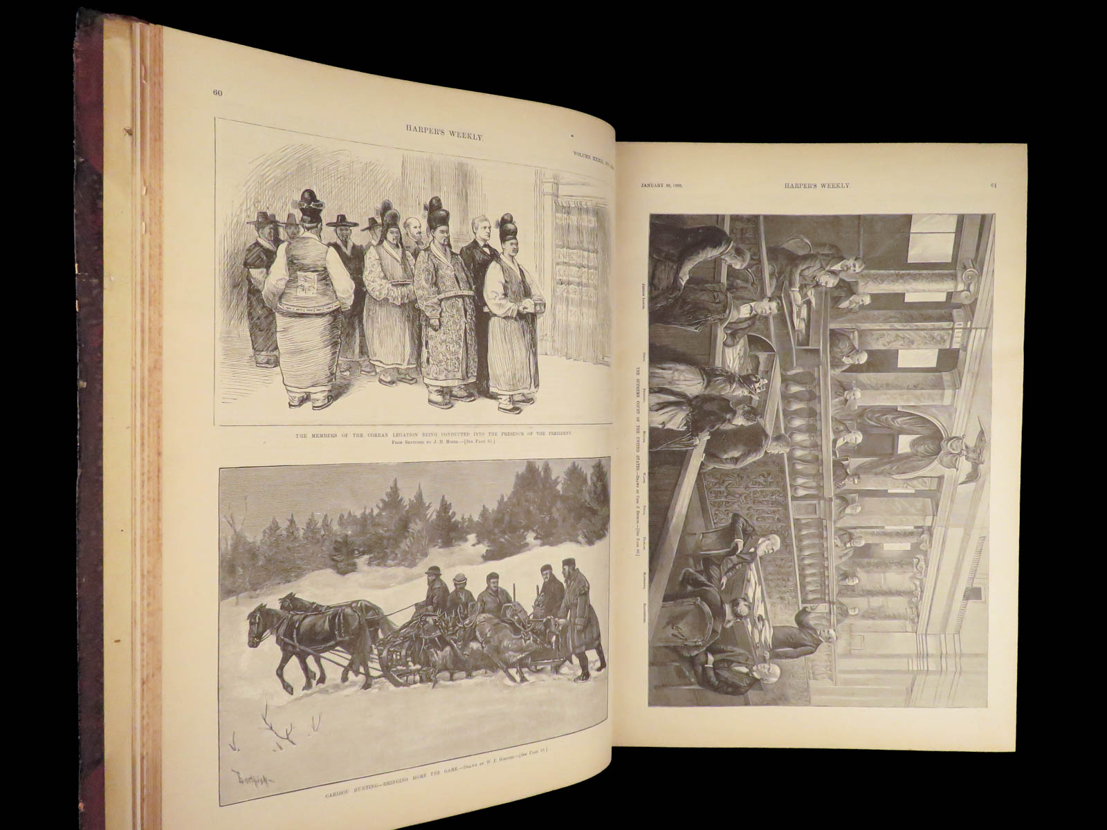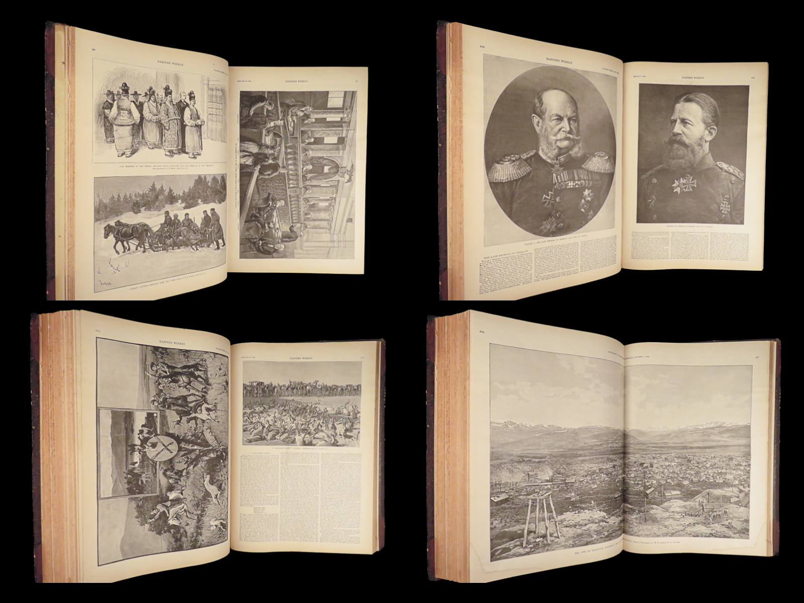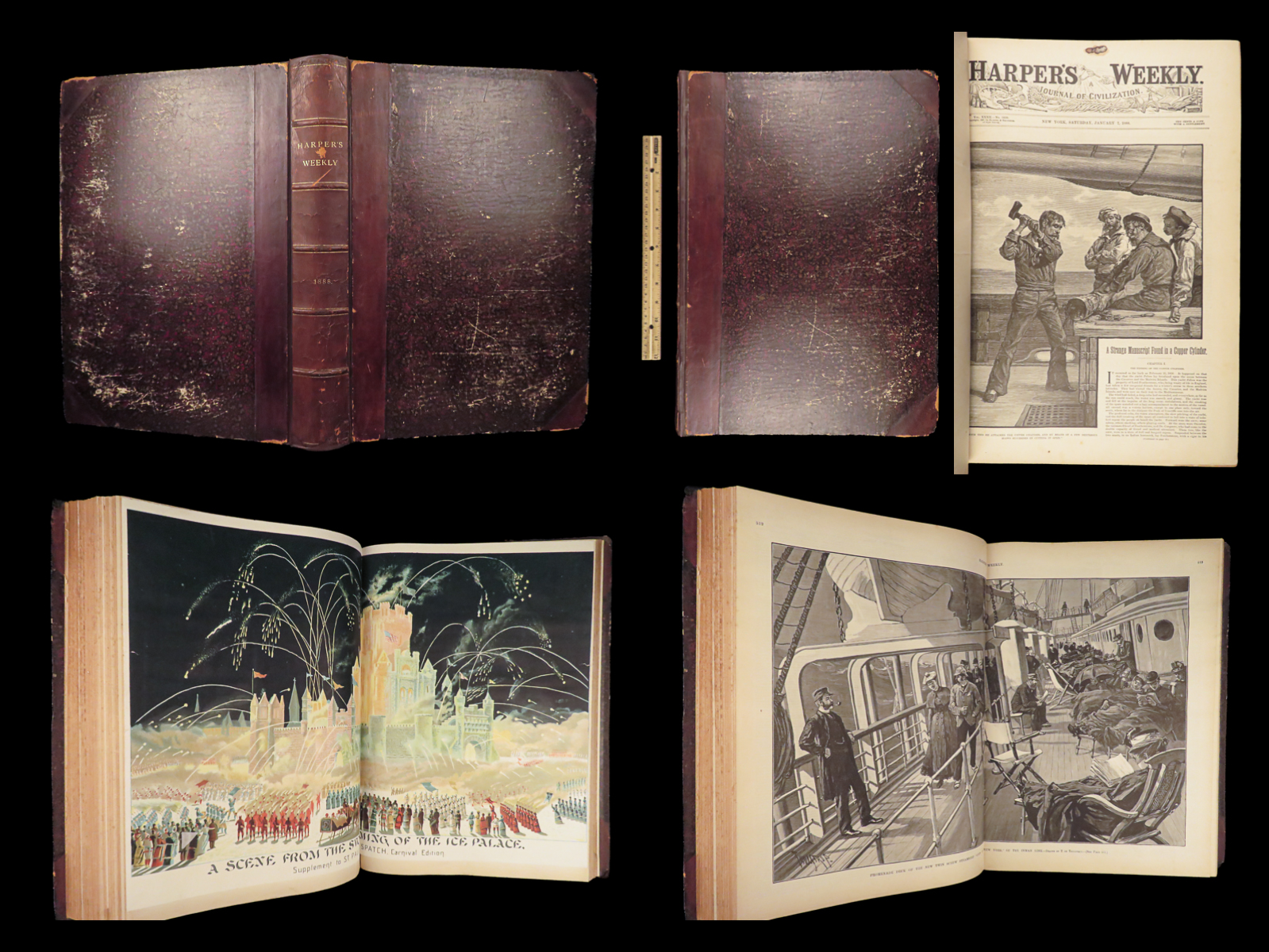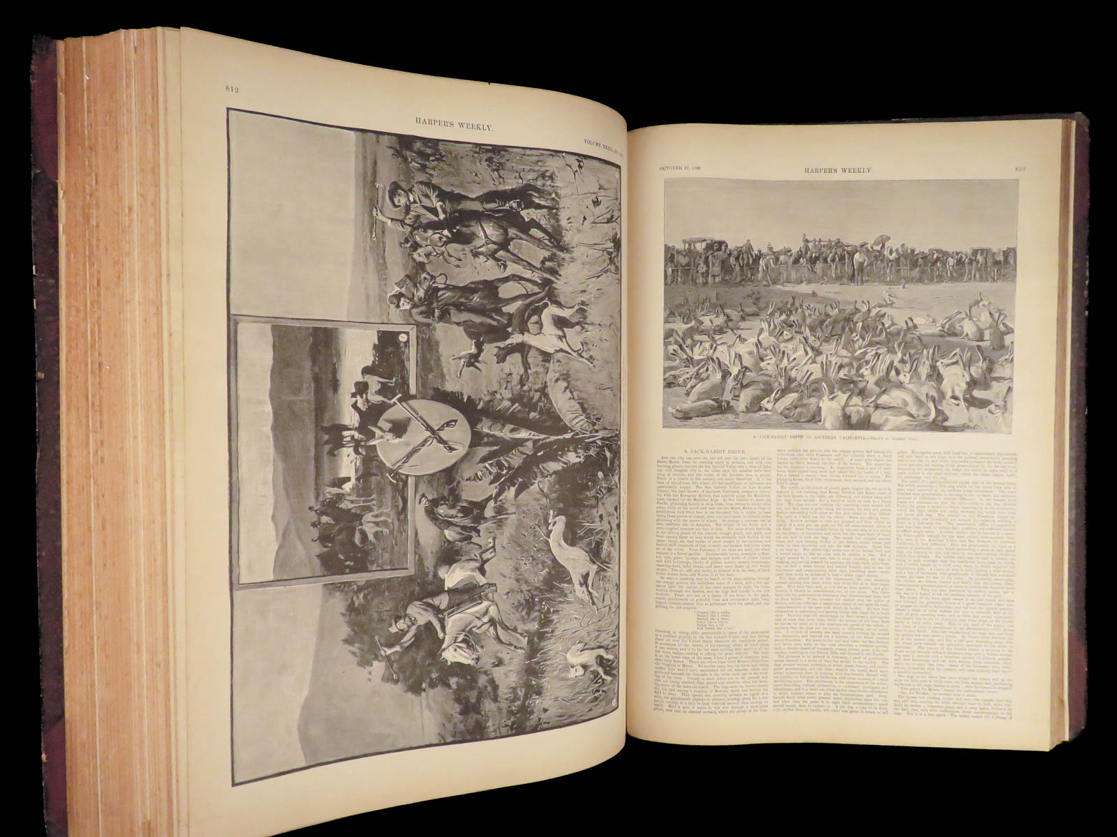 Harper’s Weekly: Journal of Civilization was a primary source of news, fiction stories, humor, satire, and a number of other topics published in the late 19th-century. The illustrations throughout this folio make it highly desirable and coveted volume.