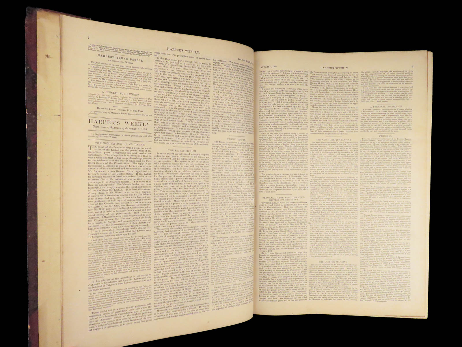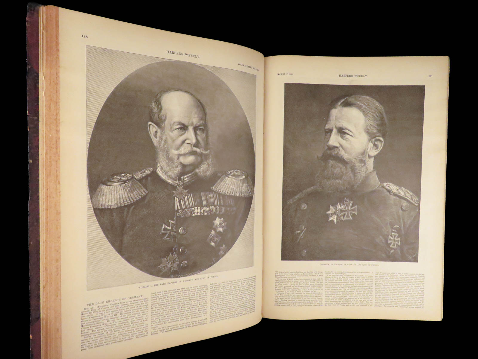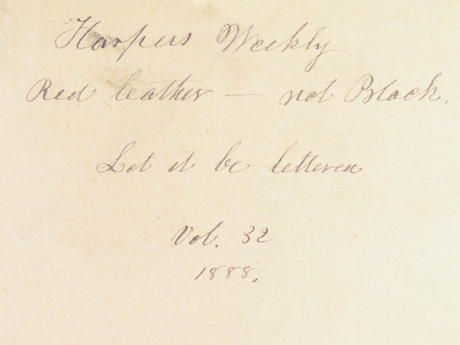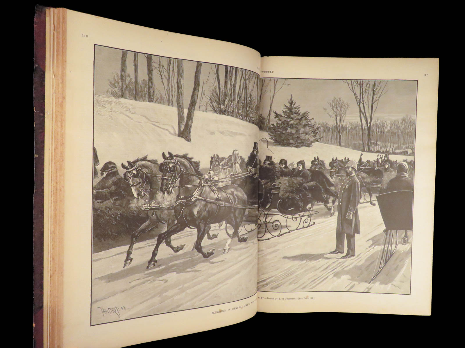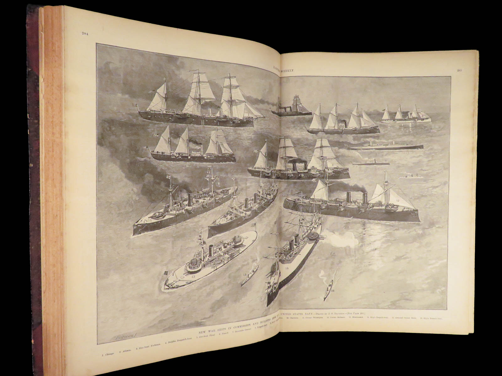 Harper’s Weekly: Journal of Civilization was a primary source of news, fiction stories, humor, satire, and a number of other topics published in the late 19th-century. The illustrations throughout this folio make it highly desirable and coveted volume.
