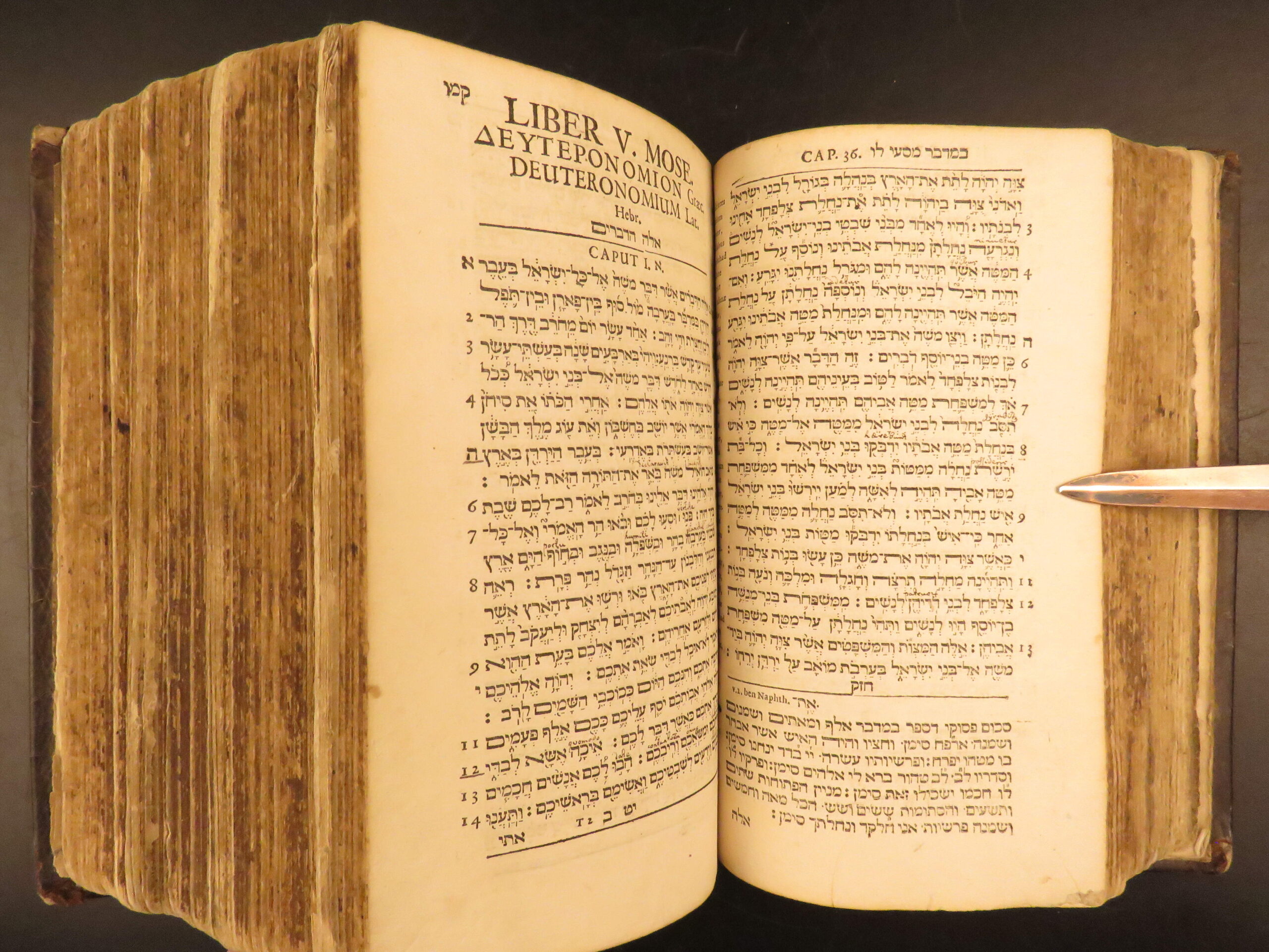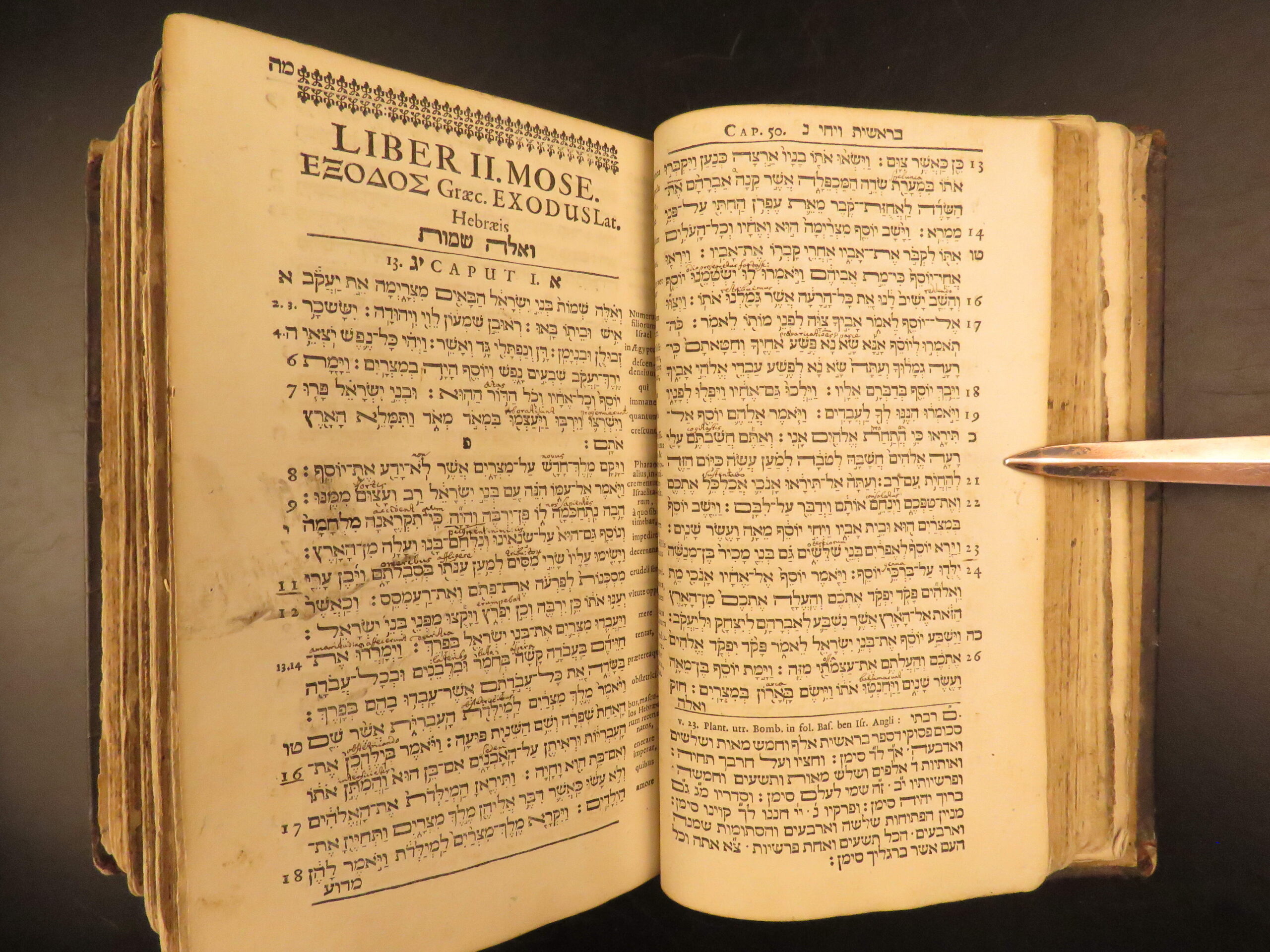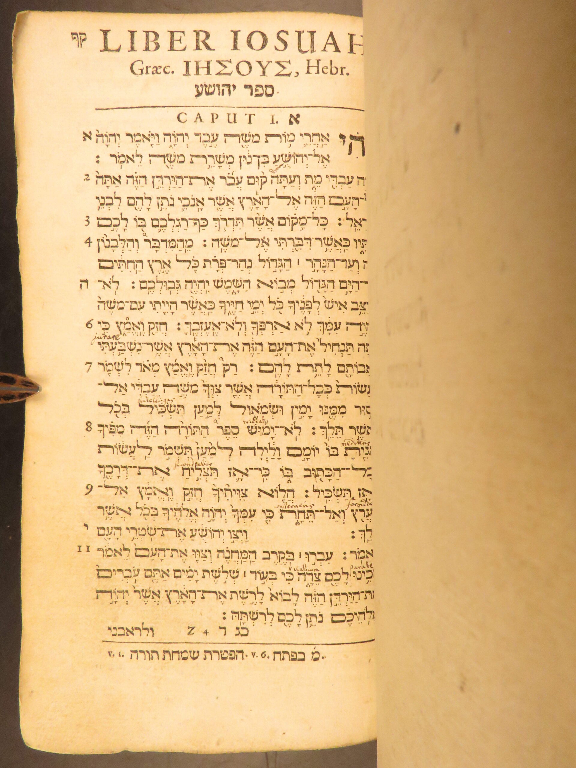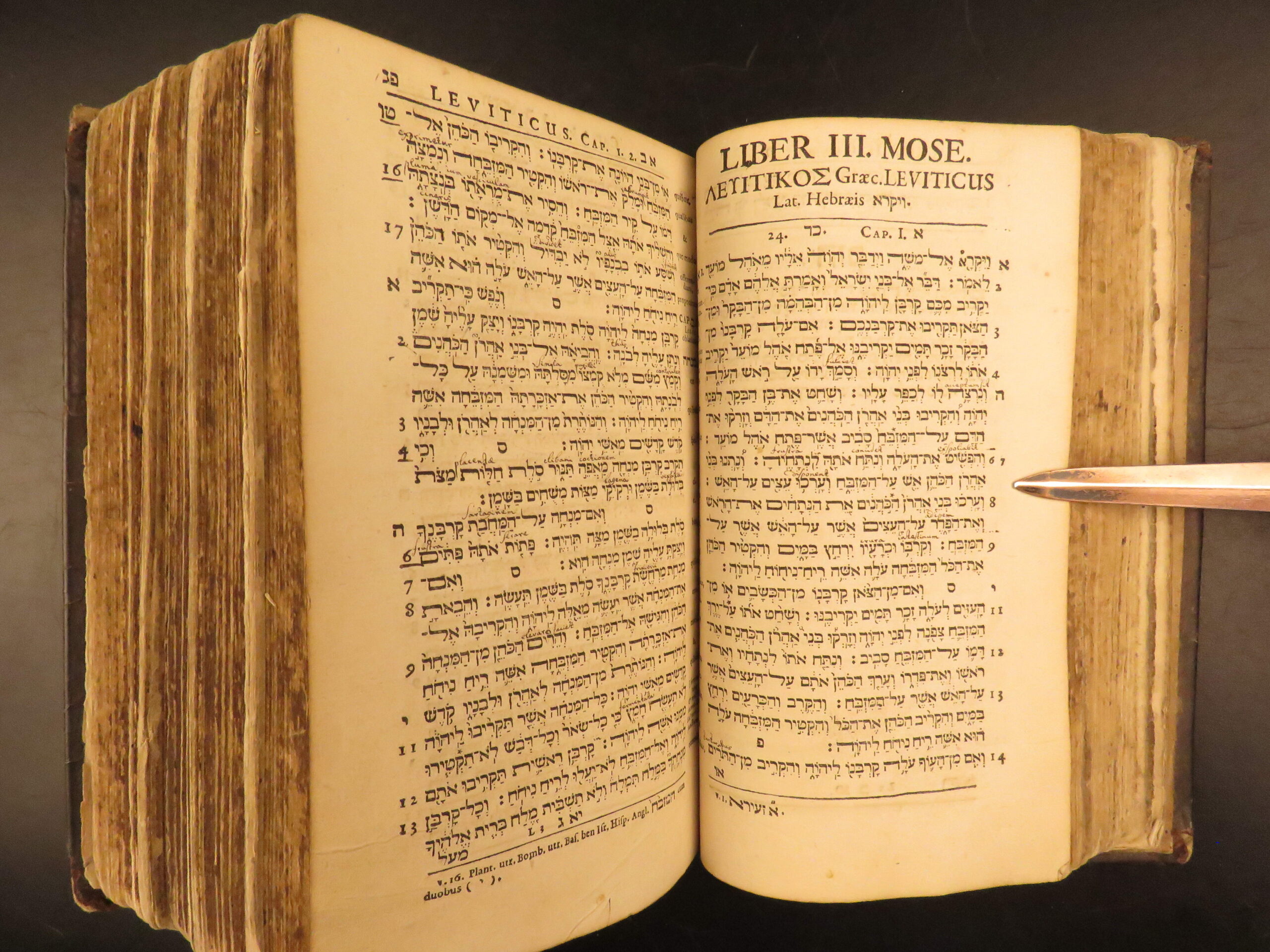 Printed in Frankfurt in 1677, David Clodius’s Biblia Testamenti Veteris contains the Hebrew Pentateuch with Masoretic notes.