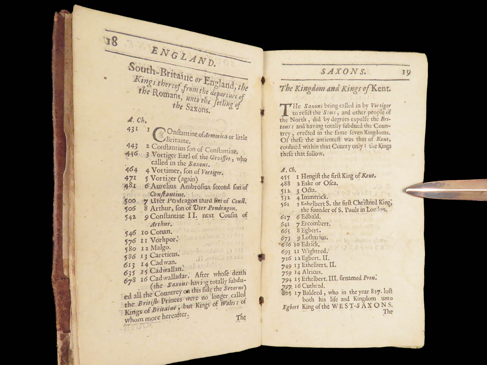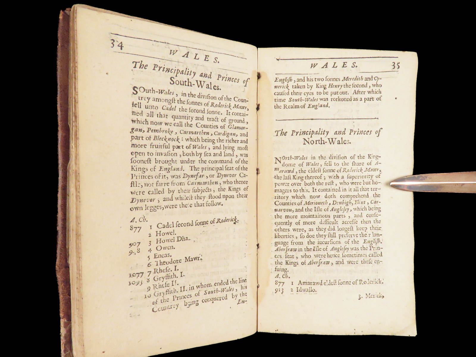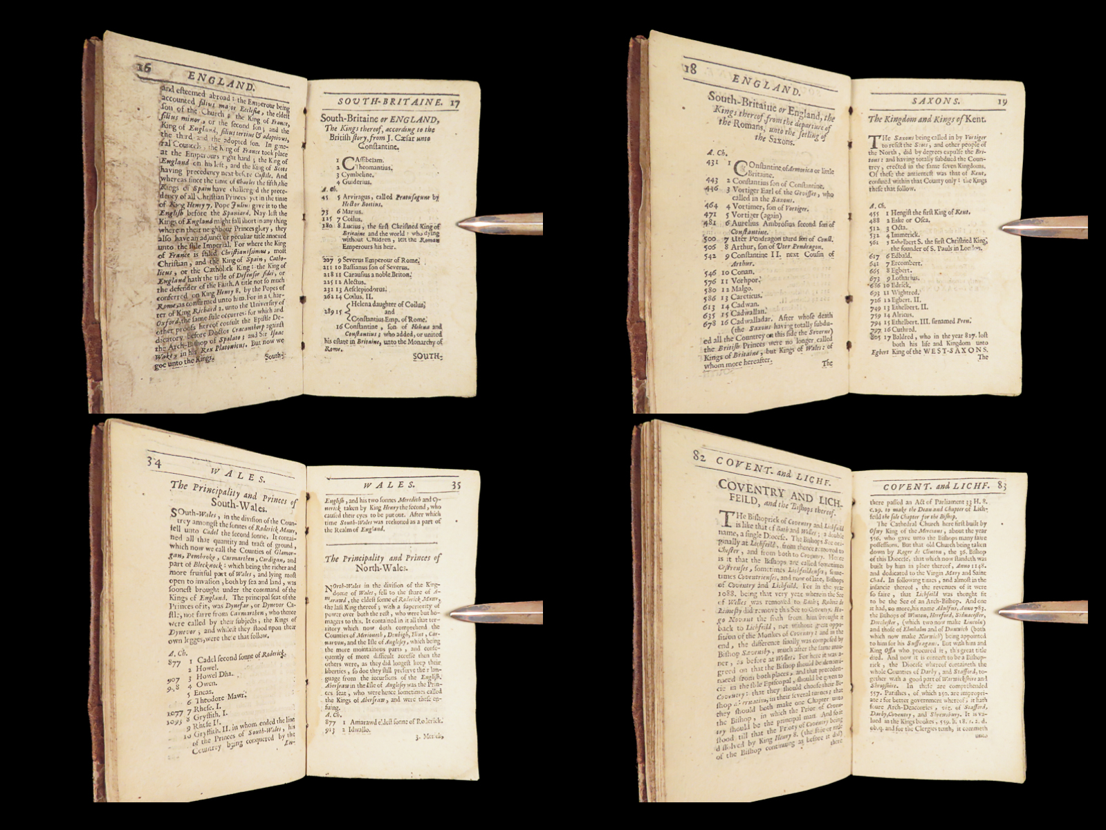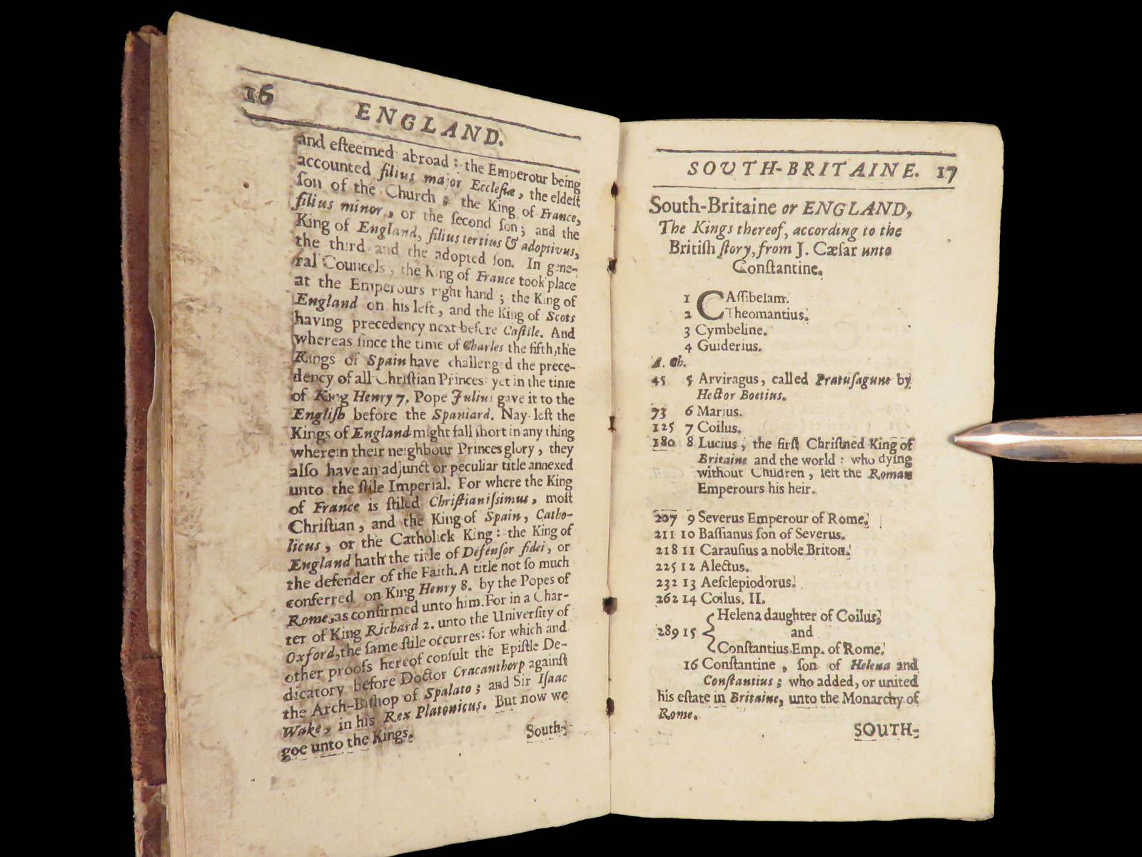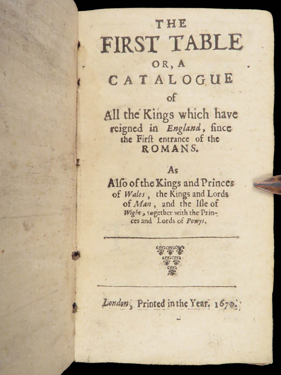 Peter Heylyn’s A Help to English History (1670) records English monarchs alongside Welsh princes and rulers of Man and Wight, forming a seventeenth-century reference work in full leather.