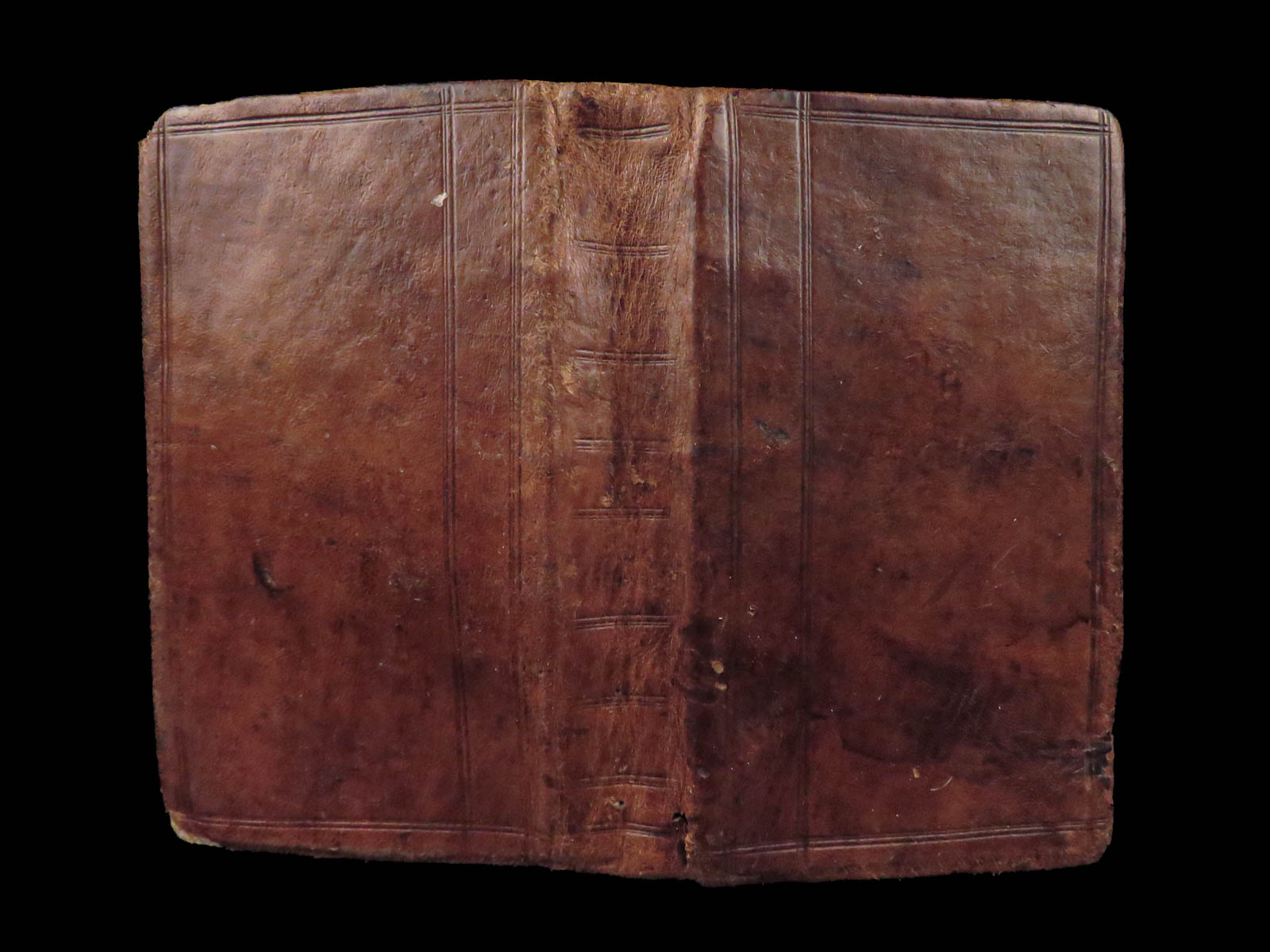 Bound in full leather, edges and corners show wear with rubbing, and there is some pulling at the hinges, though the binding remains secure and the pages are firmly attached. The text block is complete and presents well for a seventeenth-century example.