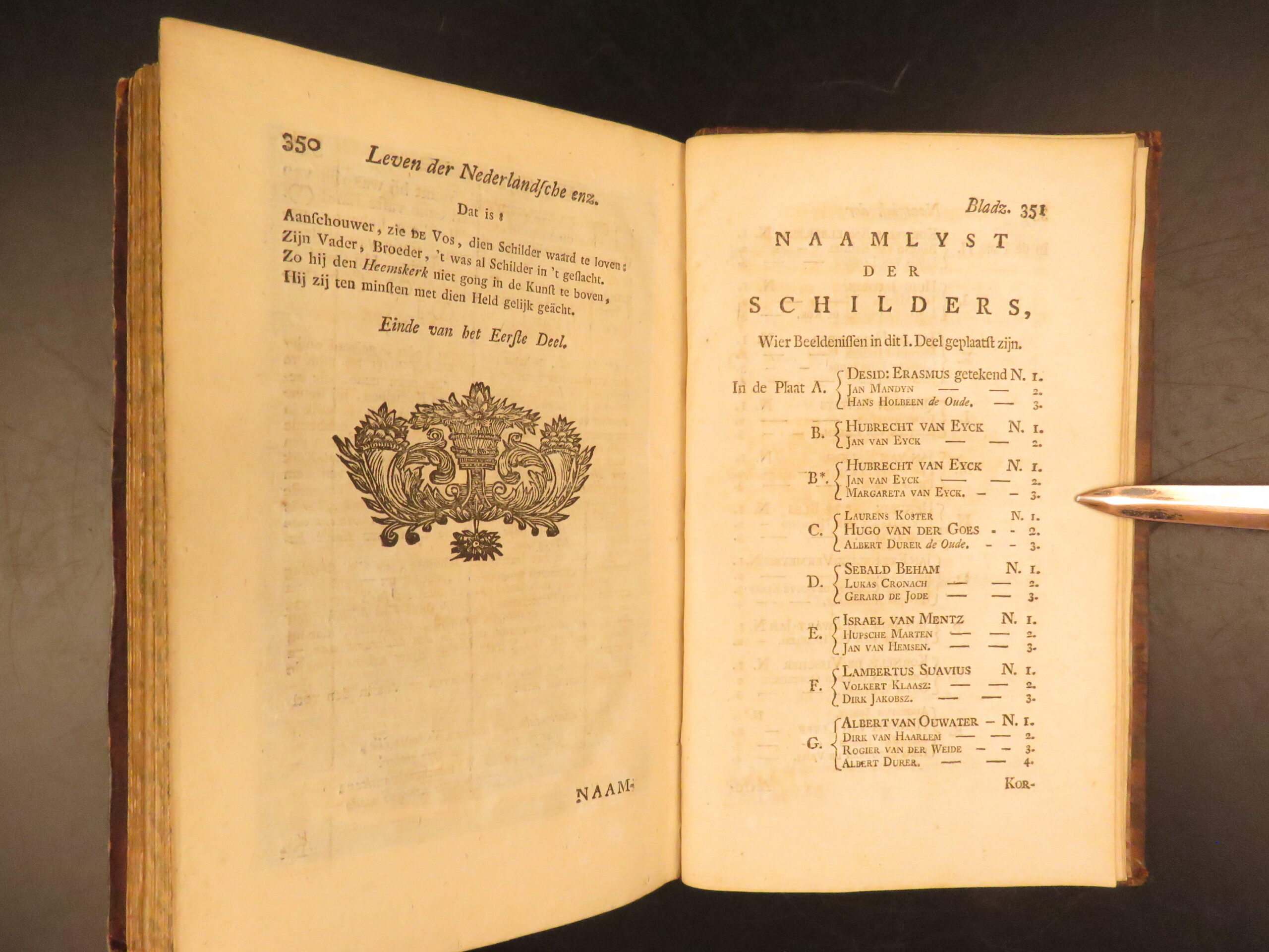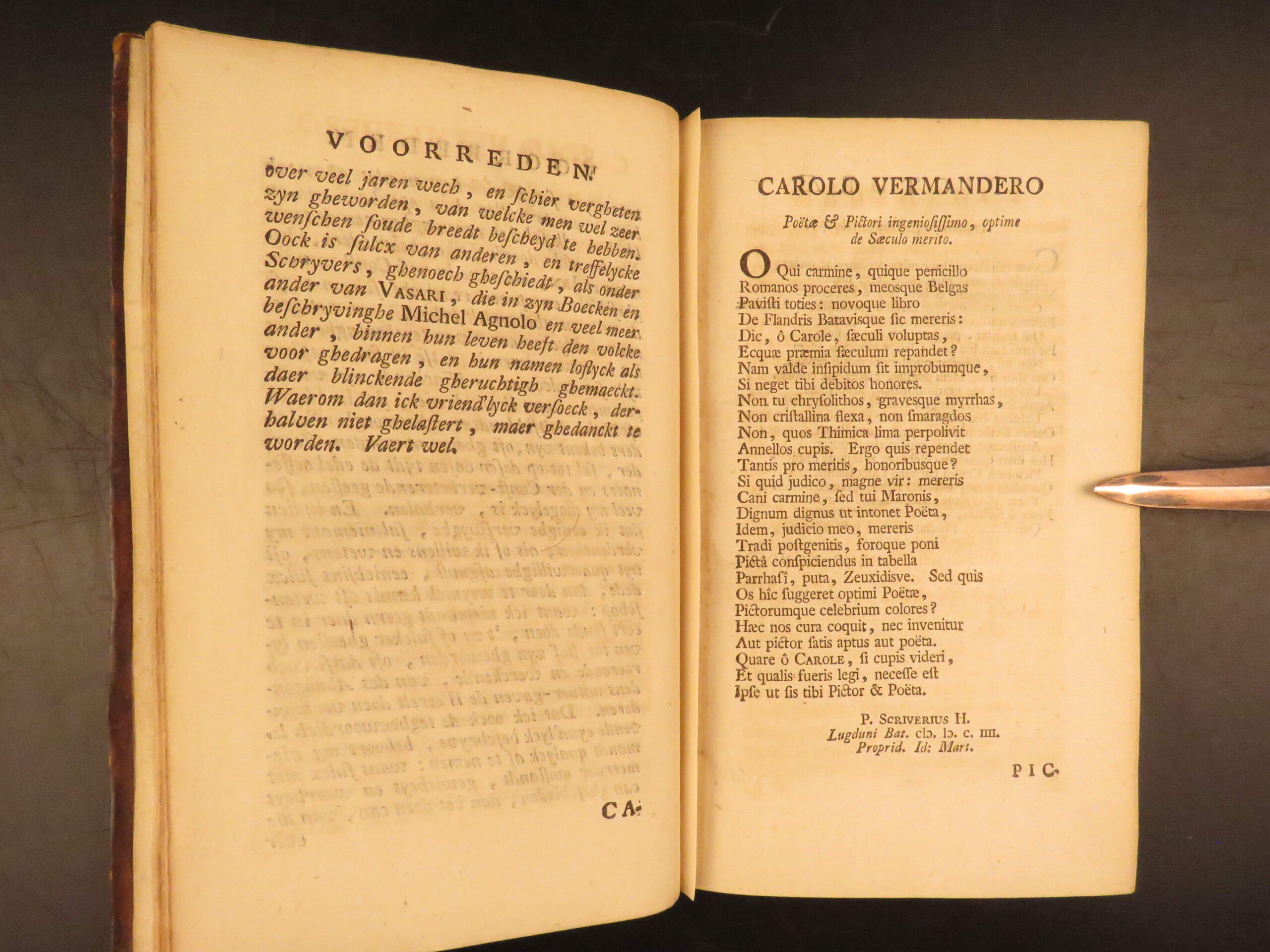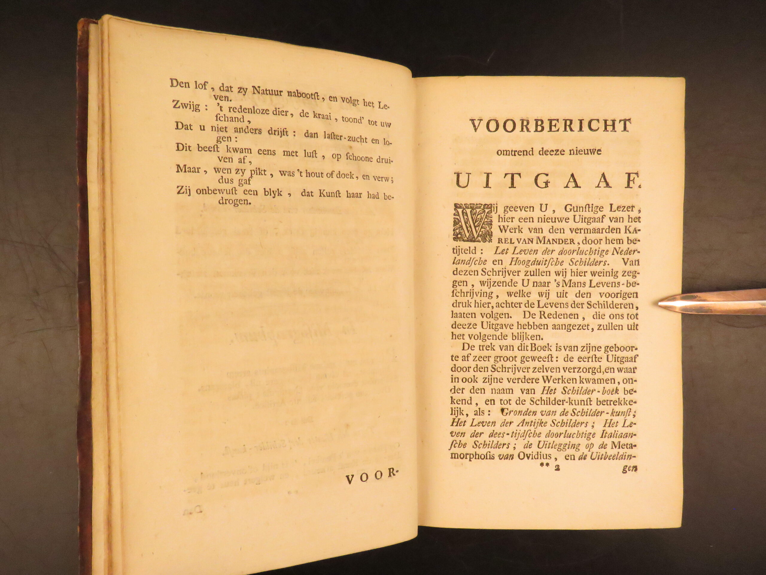 centering on the lives of Netherlandish and German painters. This book, which is often called the Schilder-boeck (or “Painter’s Book”) is considered to be the Dutch equivalent of the much more famous Lives by Vasari.