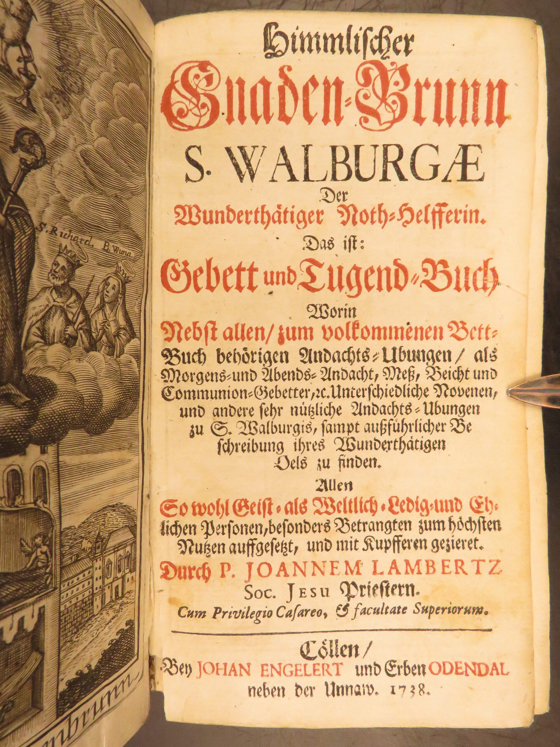 1738 – Jesuit German Devotional | Saint Walburga Miracles & Prayer book, Lambertz