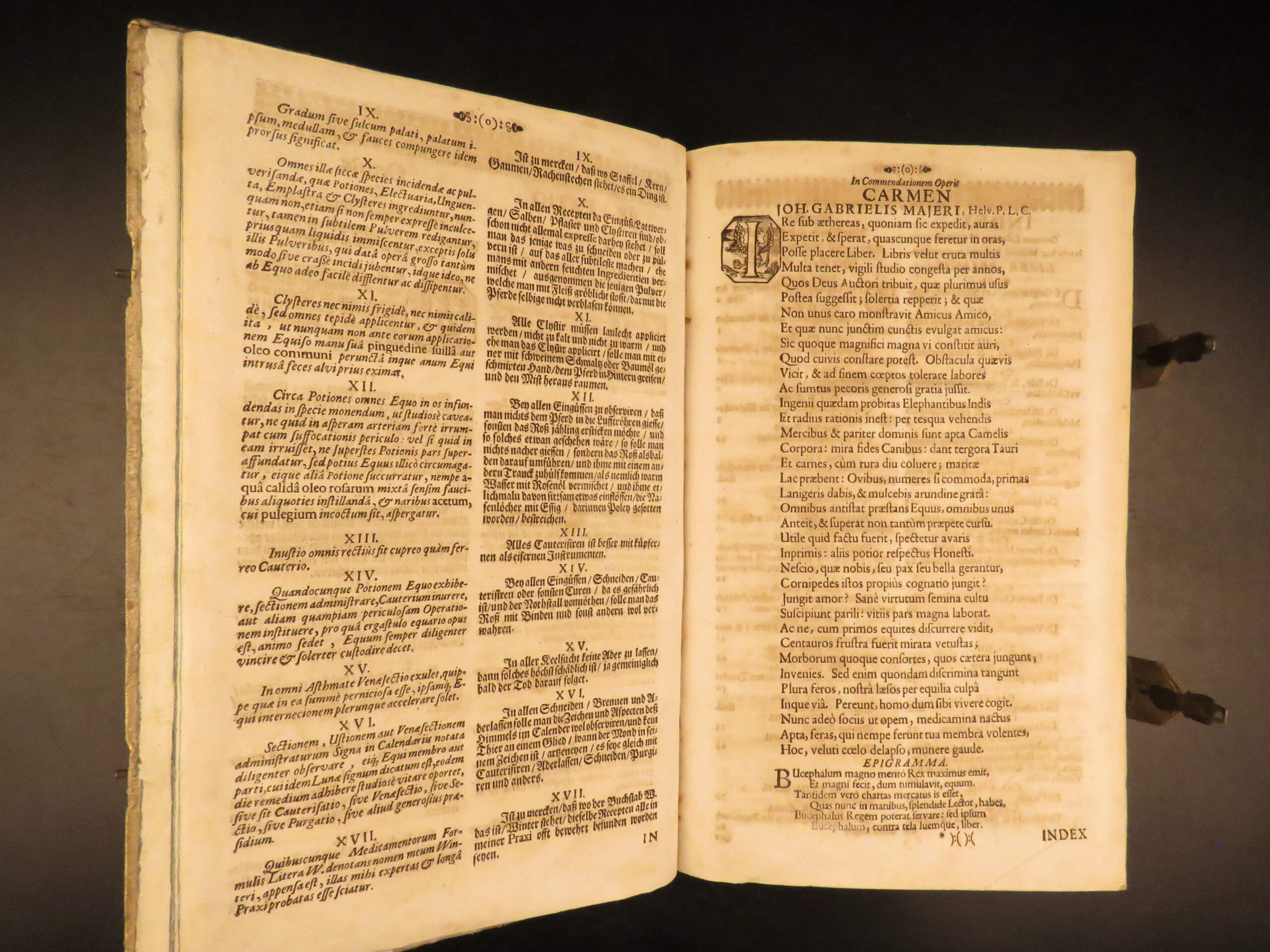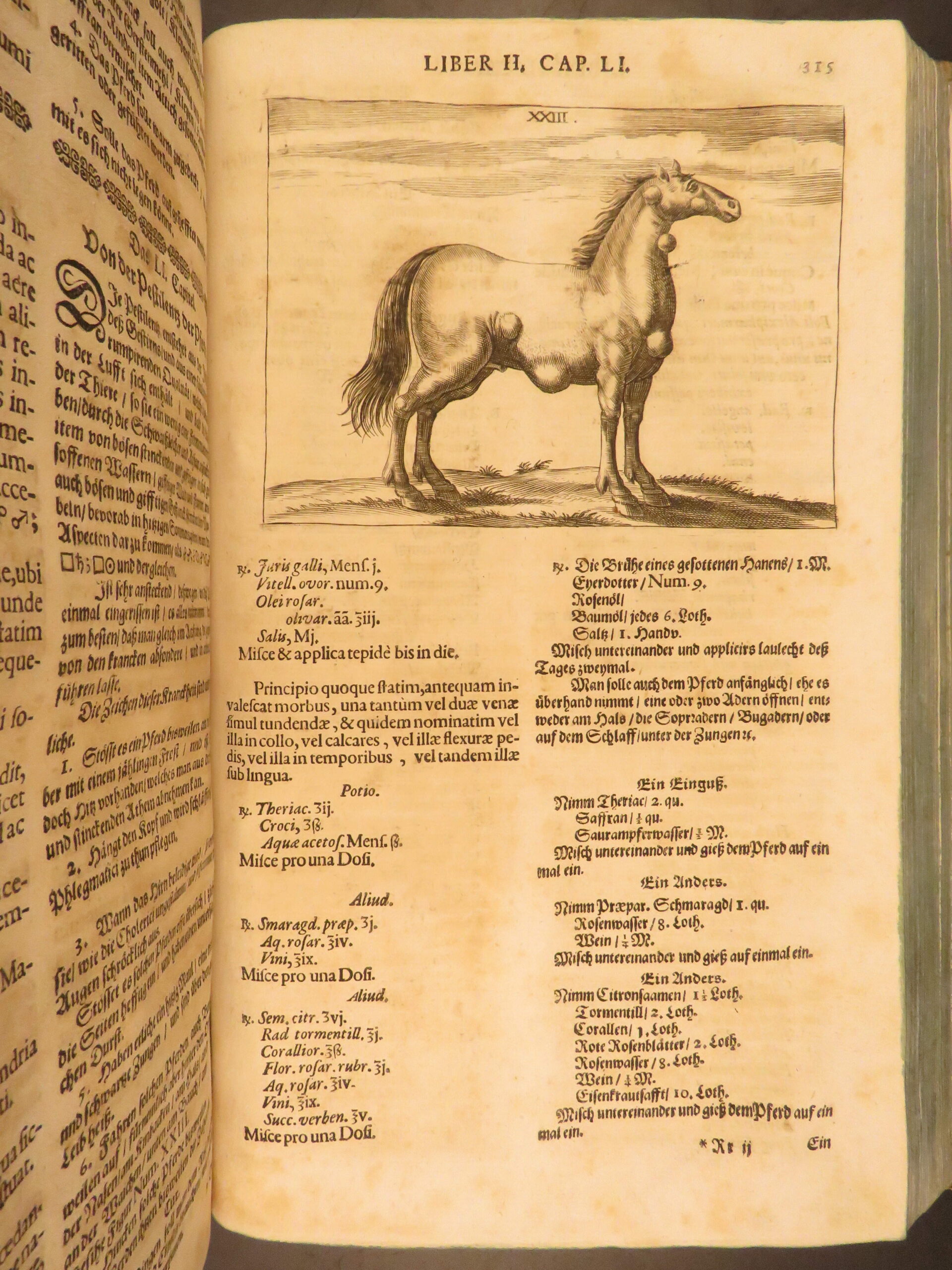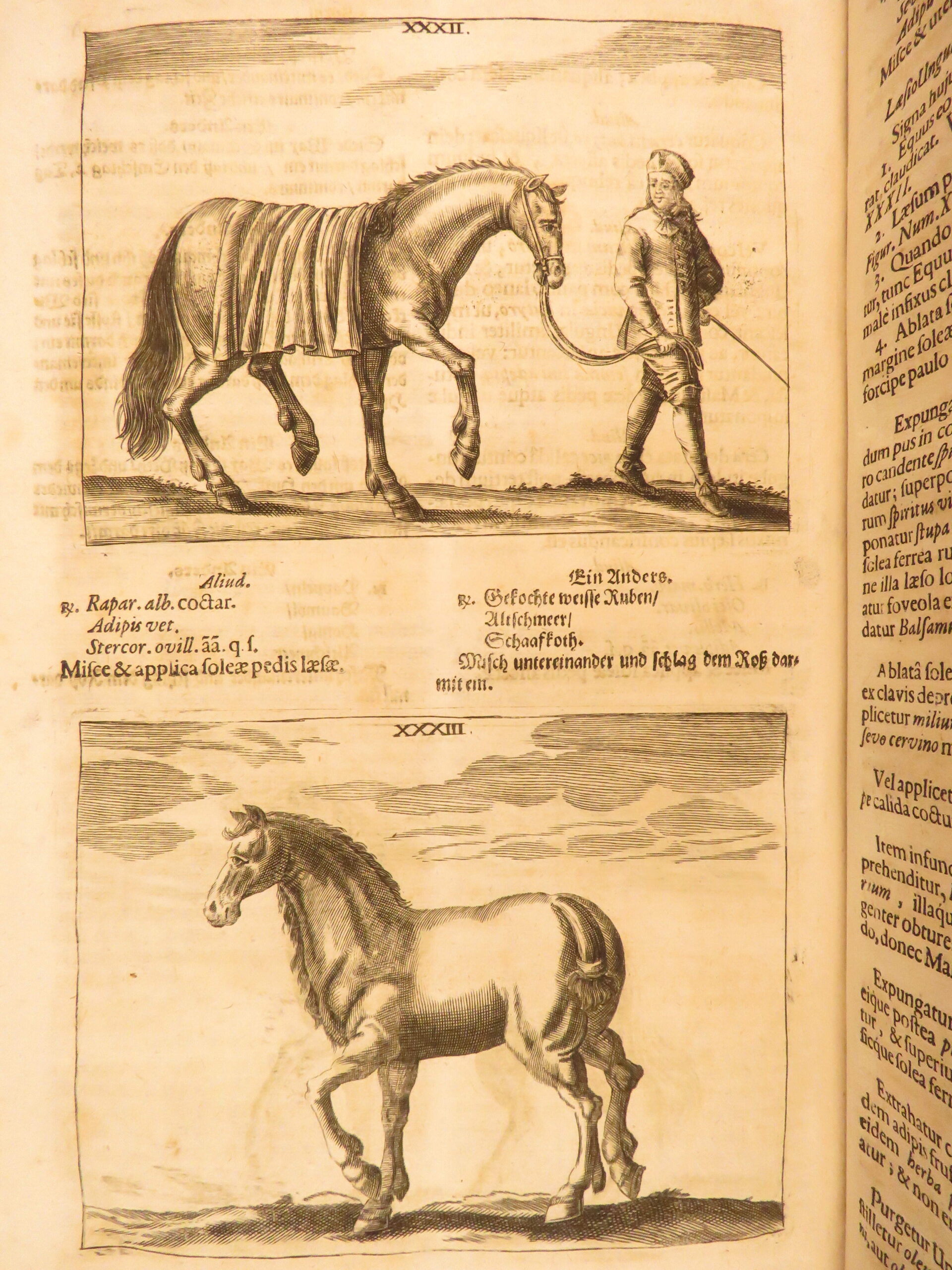 • Original 17th-century Latin text on horse health and care