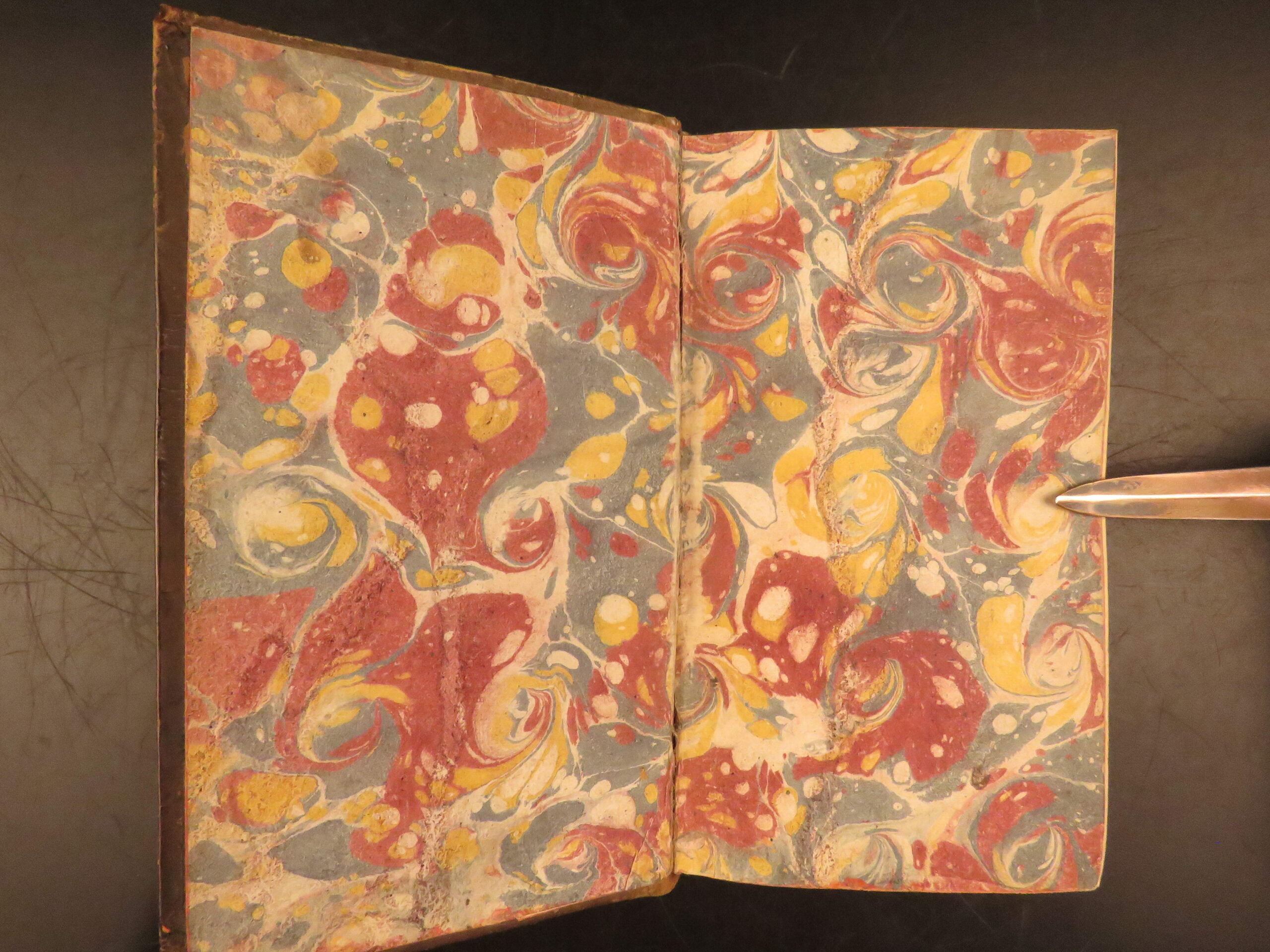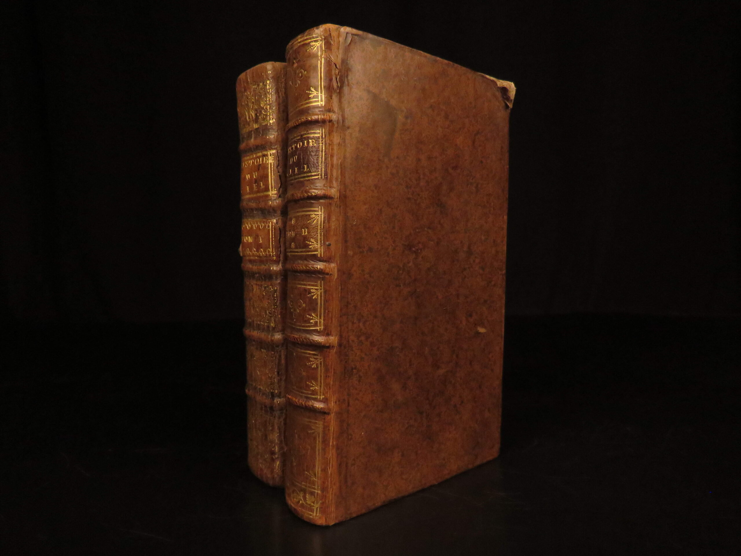 Both volumes remain tight and secure in their original leather bindings. The gilt titles on the spines remain visible. Slight wear appears at one corner of the second volume. The set shows typical light age toning consistent with 18th-century paper. Overall very good condition.