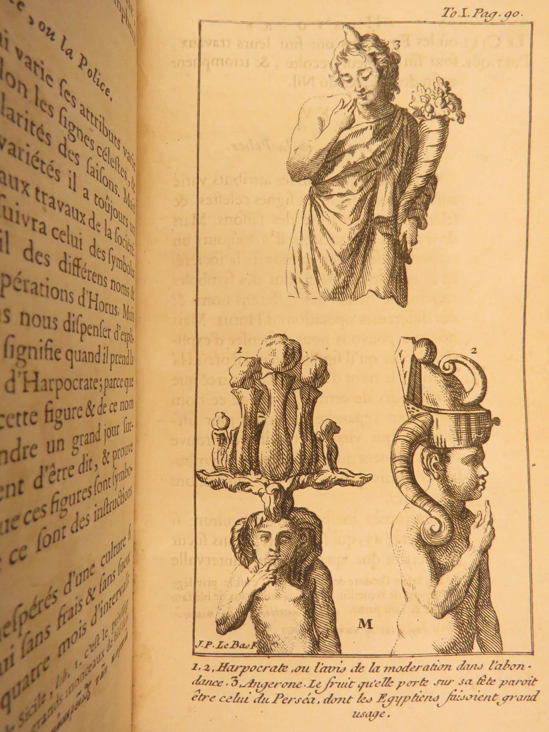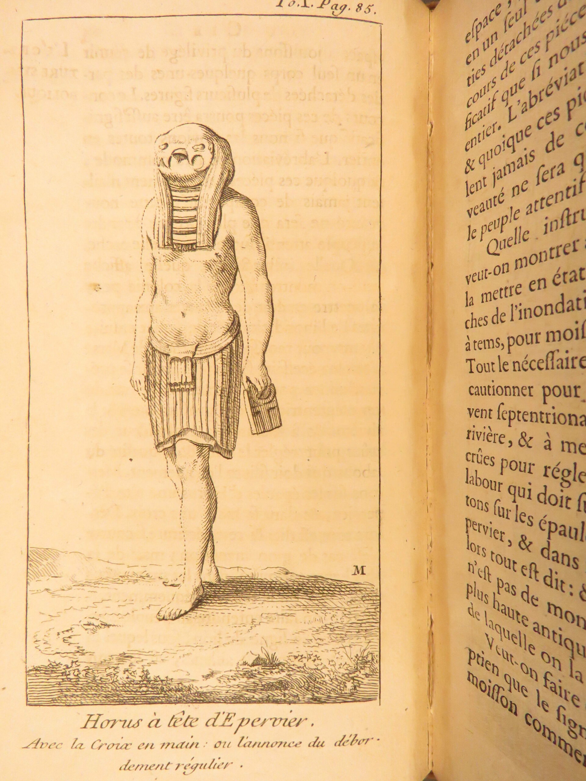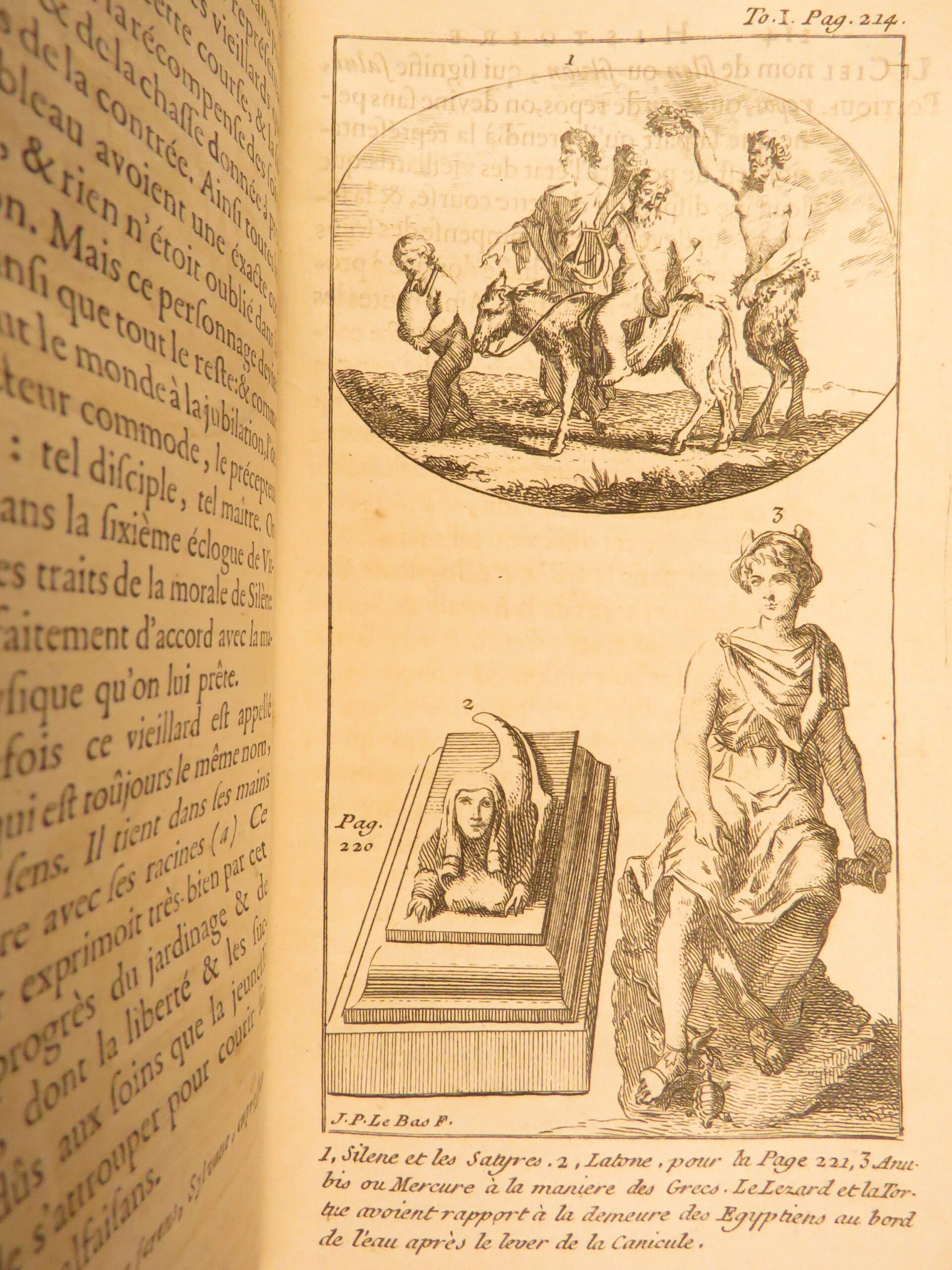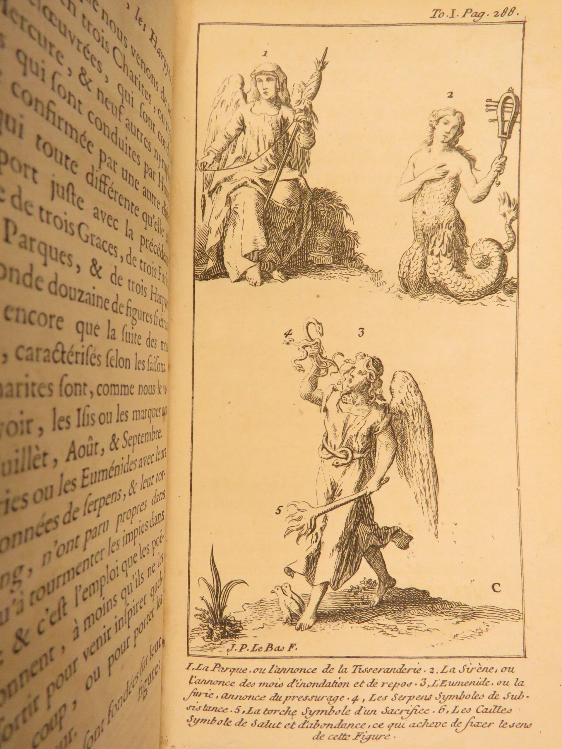The History of the Sky by Noel Antoine Pluche, is one of the most important and well-known treatises on astronomy and cosmology. This rare edition, published by Estienne, is illustrated with 24 full-page engravings by J. P. le Bas. These images depict mythological beings and creatures, sculptures and art of ancient Egyptian gods, and other important historical esoteric and pagan symbols.