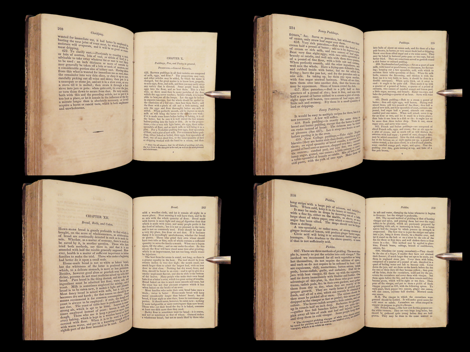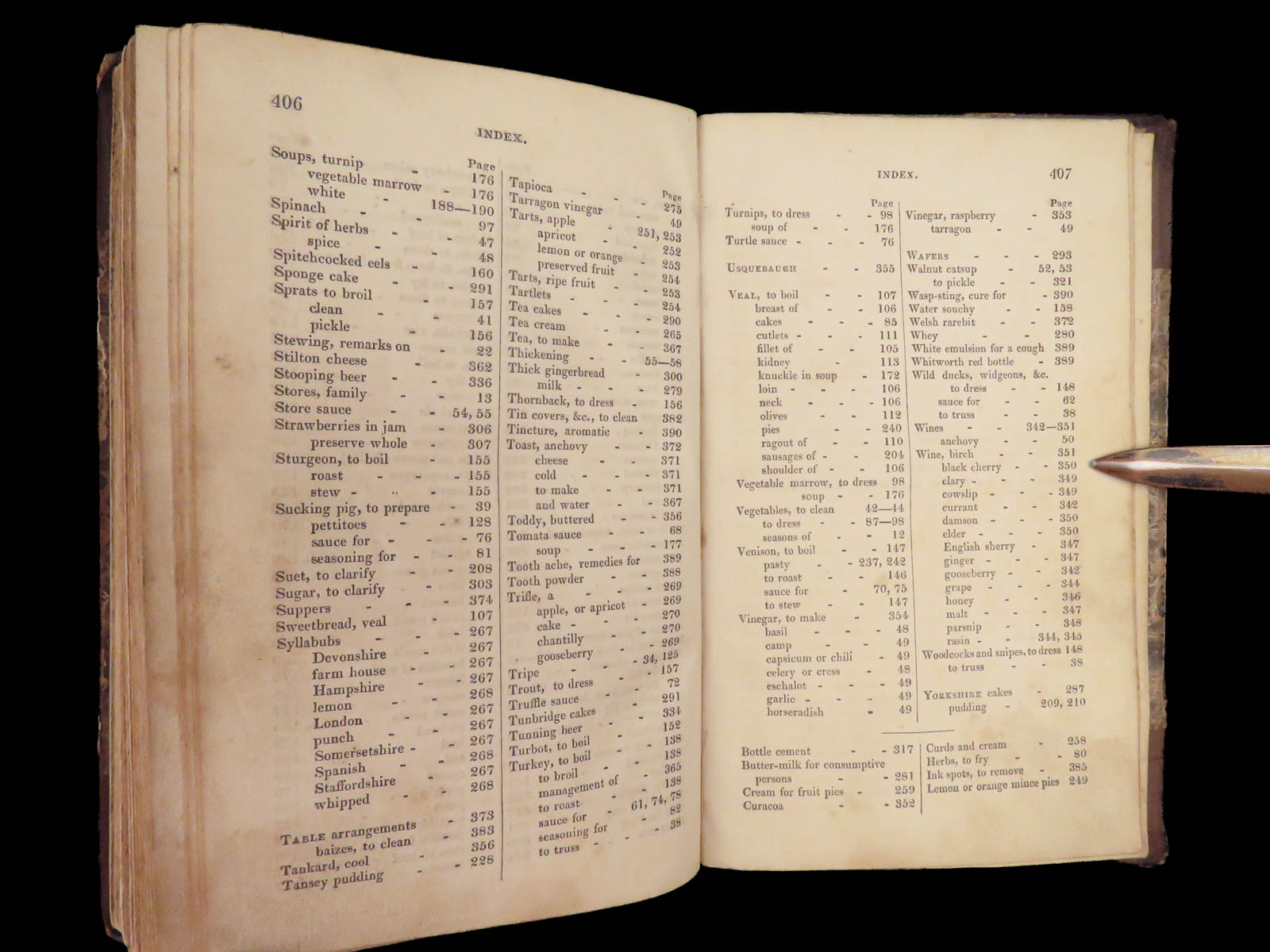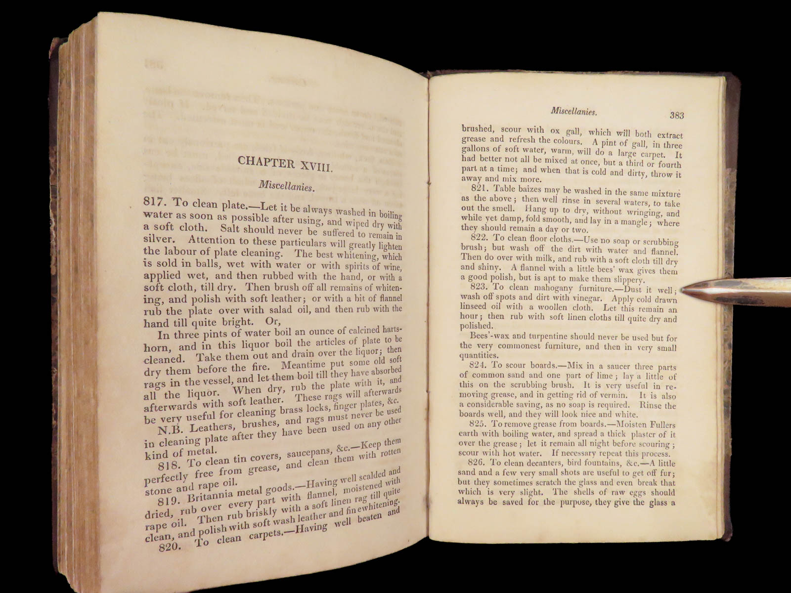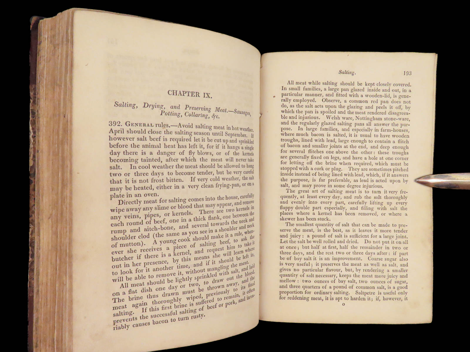 This first edition covers topics such as kitchen utensils, sauce preparation, instructions for butchering mutton and poultry, methods for preparing varieties of fish, direction on make stews, fruit pies, and preserves. It also includes sections on making wine and beer, making chocolate, and how to keep poultry and pigs healthy.