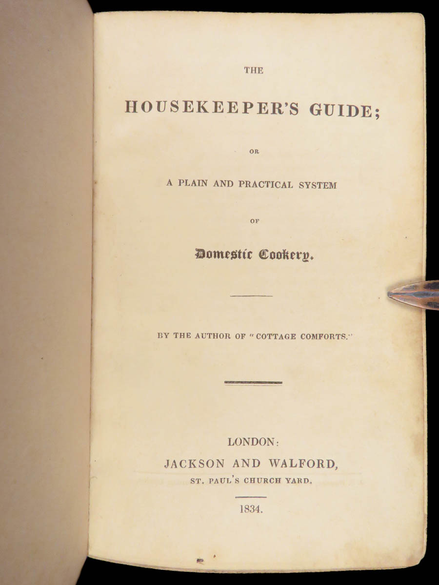 - Title: The Housekeeper’s Guide or a Plain & Practical System of Domestic Cookery