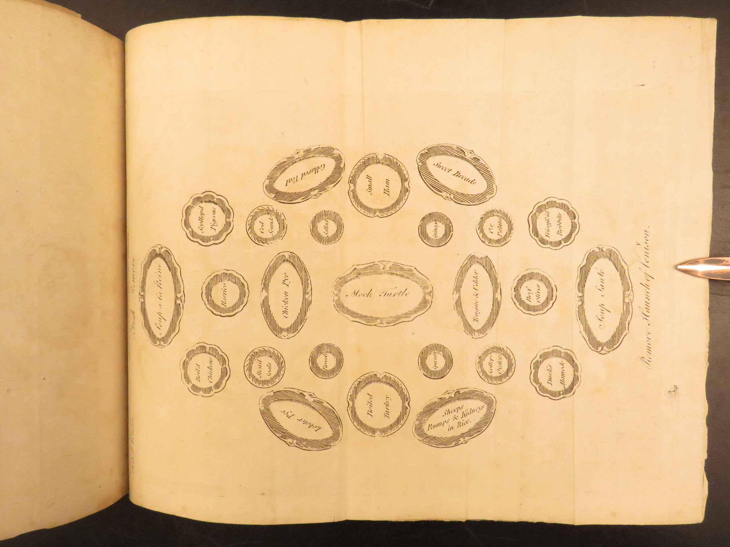 This fourteenth edition includes 11 full-page engravings which depict meat carving, serving, and table settings.