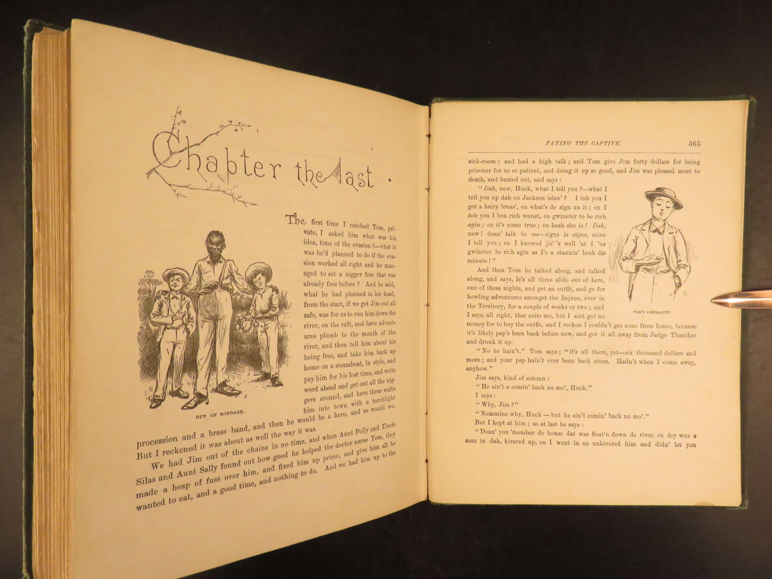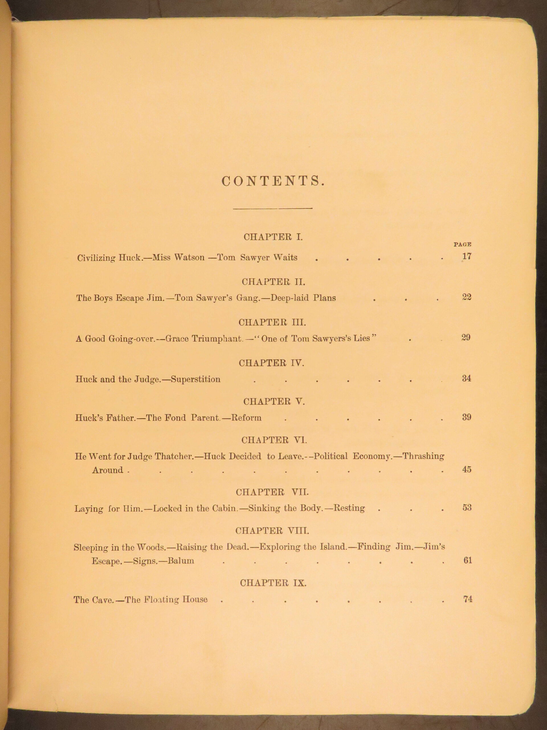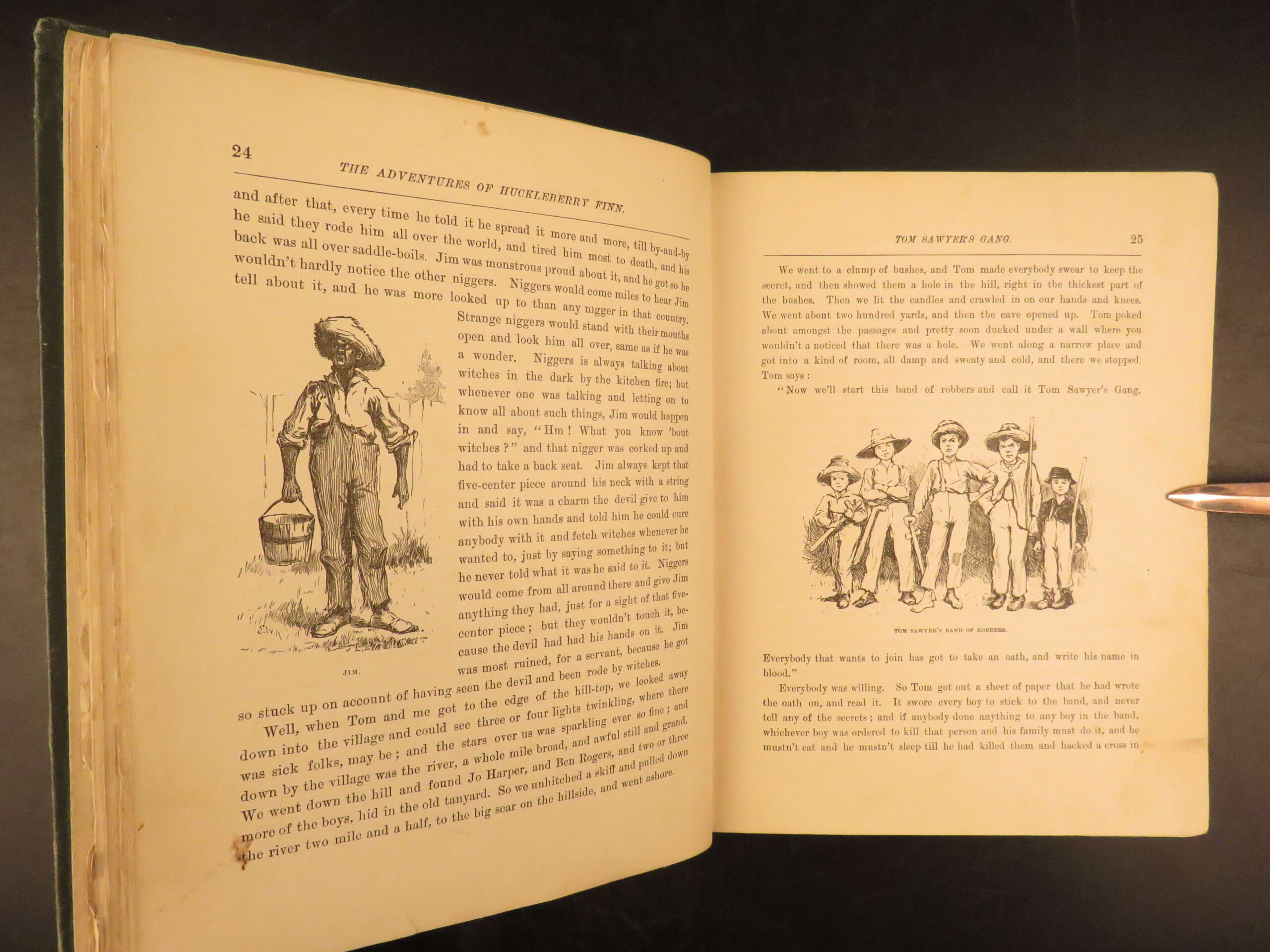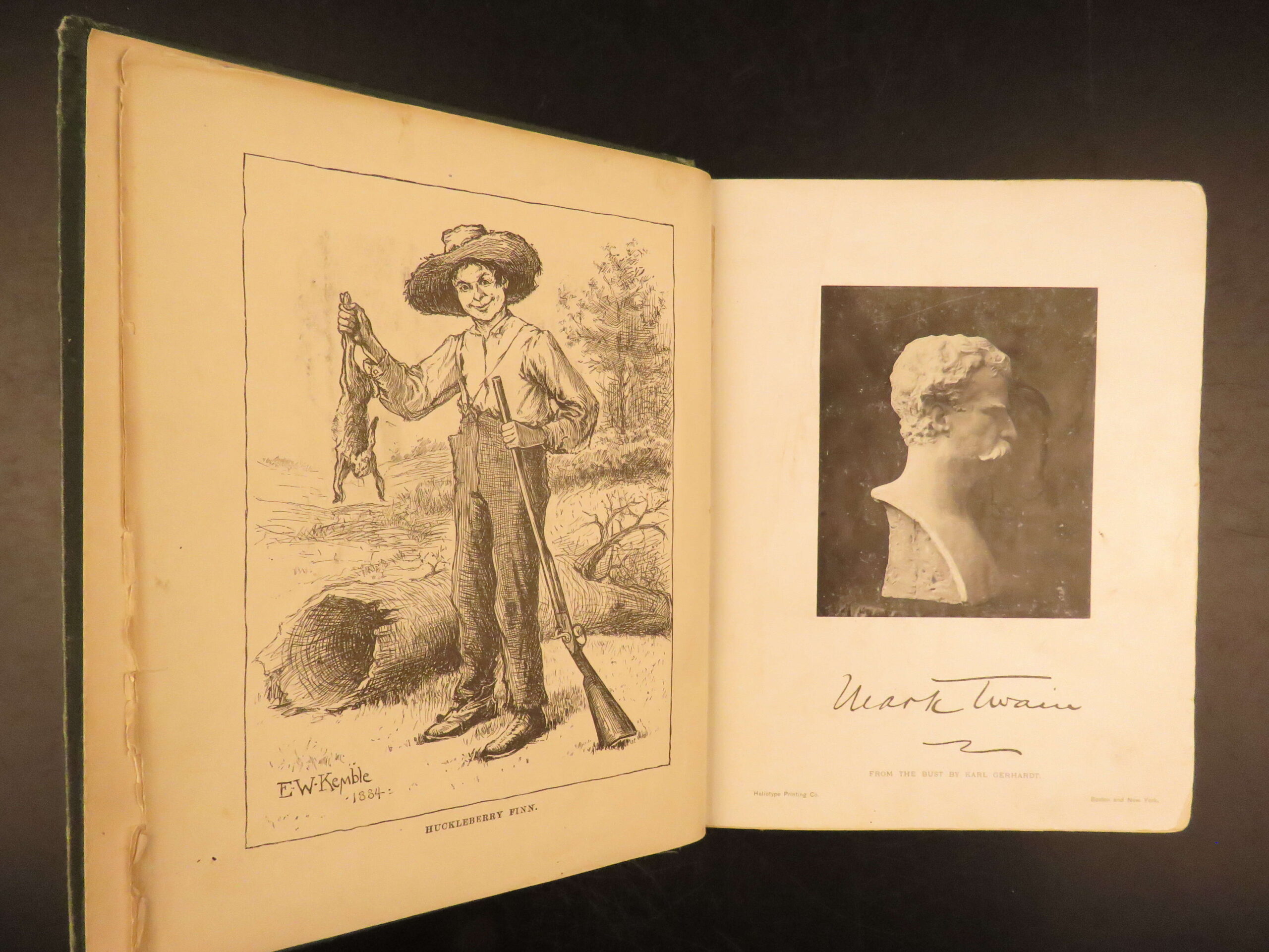 Mark Twain’s momentous book Huckleberry Finn has been the source of arguments, discussion, and controversy since it first appeared in 1885. It has been reprinted countless times and is still considered to be one of the most popular American novels, if not the most popular. This first American printing meets the first edition points according to the BAL (see below).