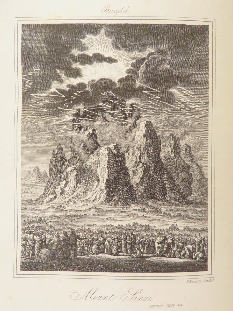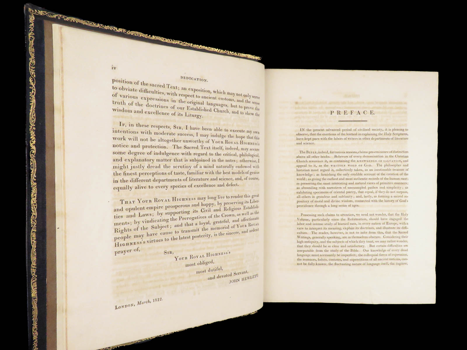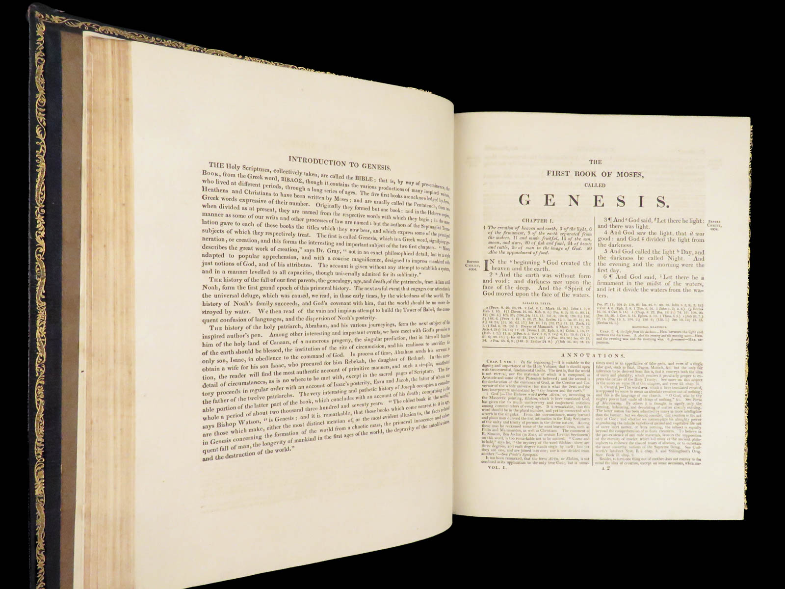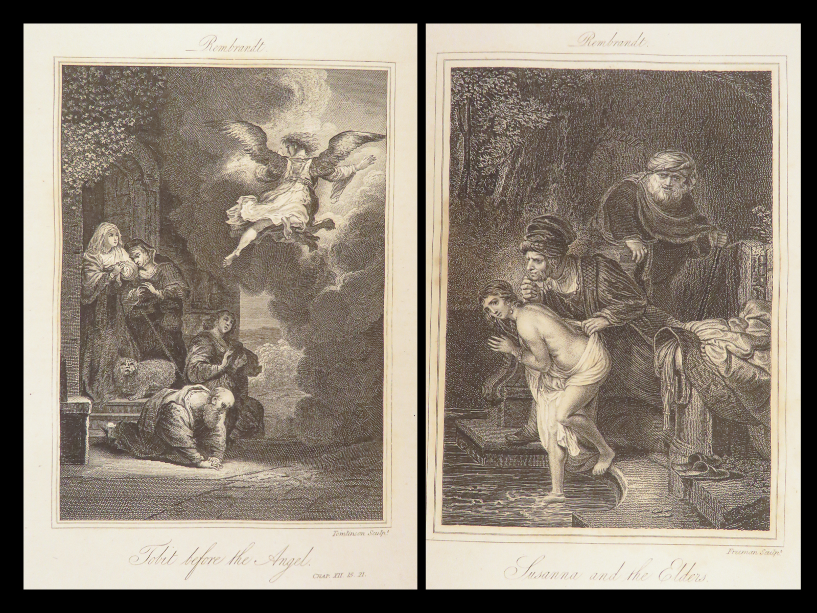 The Holy Bible, containing the Old and the New Testament, and Apocrypha was published in London in 1812 in six huge volumes. Each volume features extensive notes and commentary by Hewlett, a known biblical editor of the early 19th century. The set includes 120 engraved plates, integrated across the biblical text and apocryphal books.