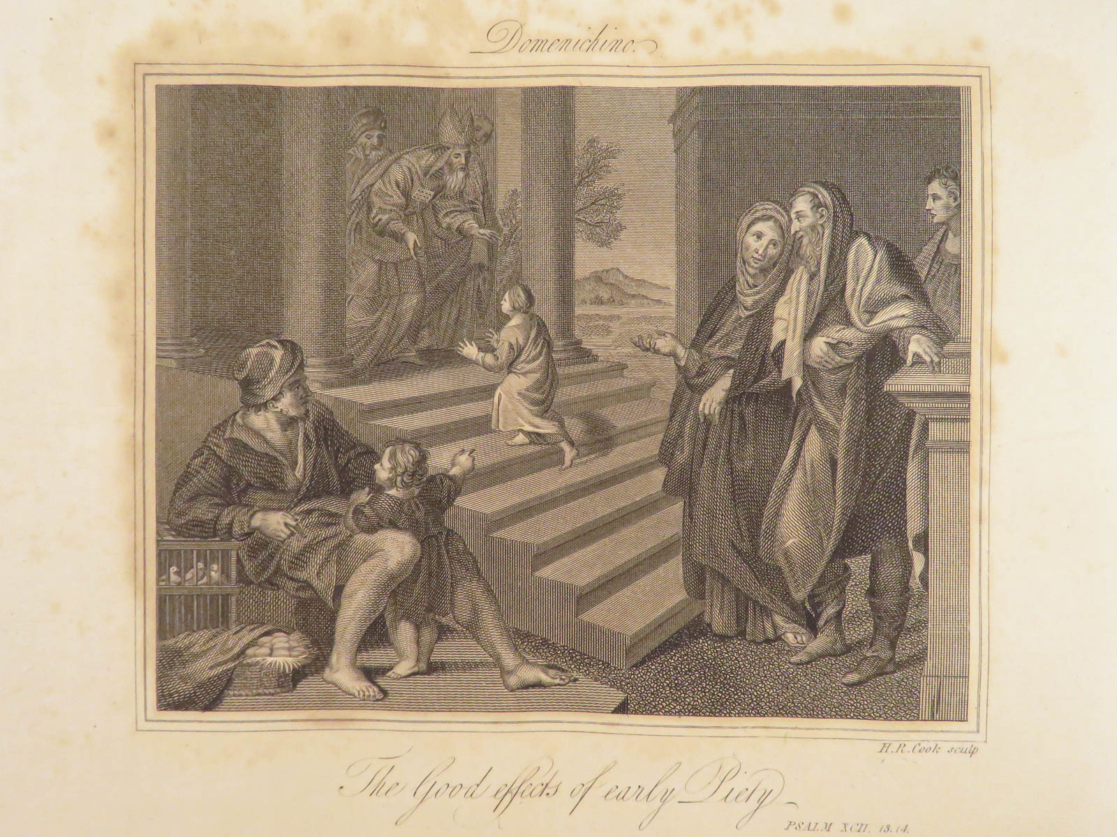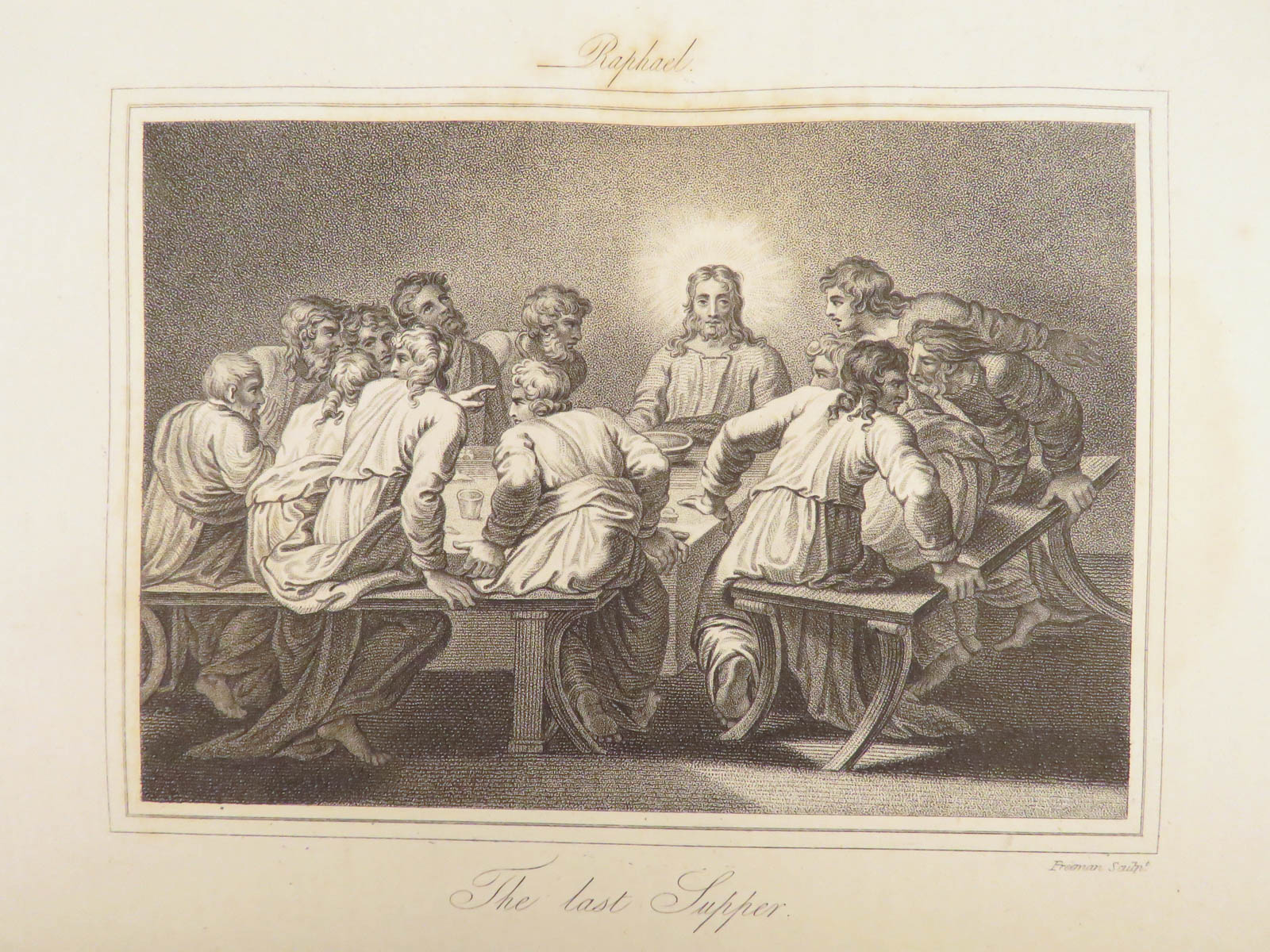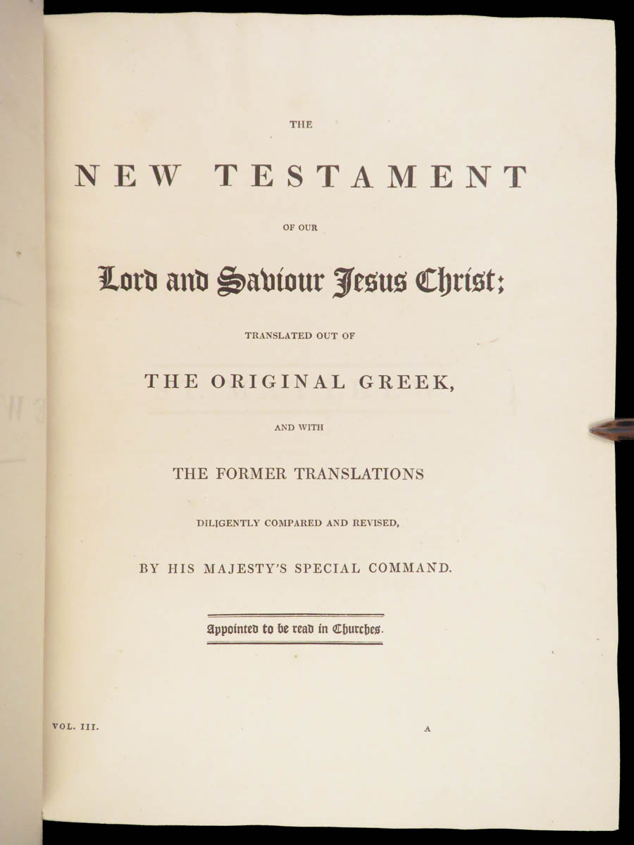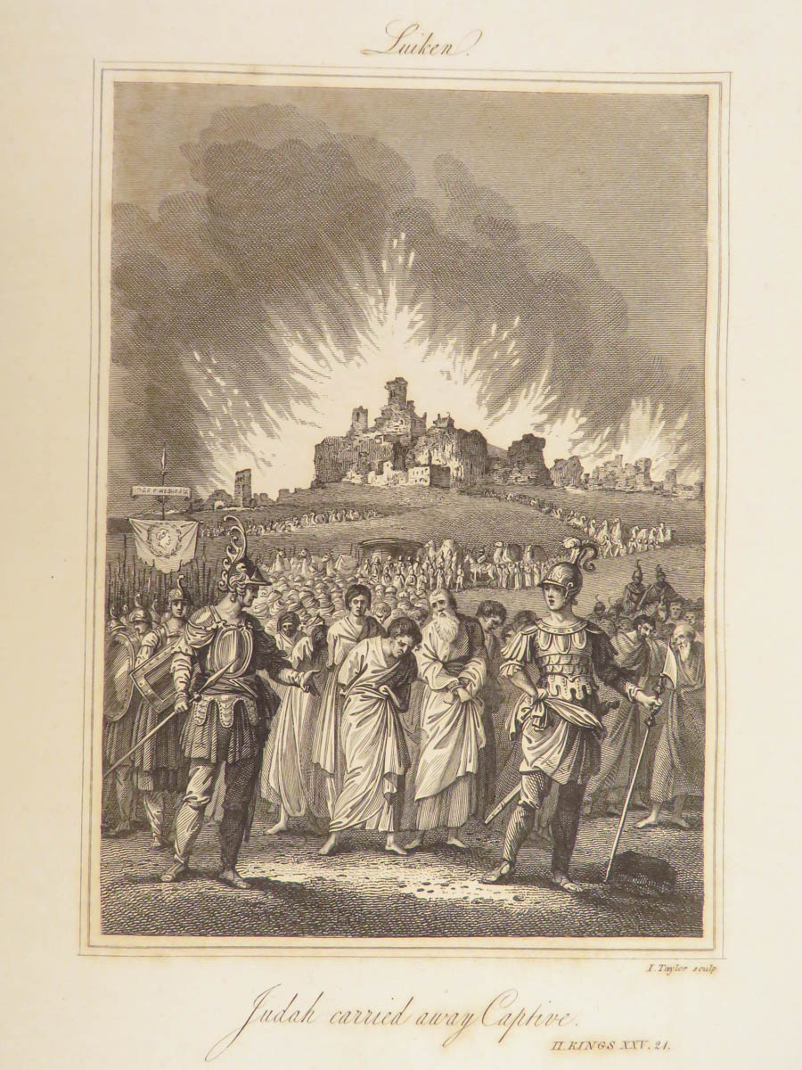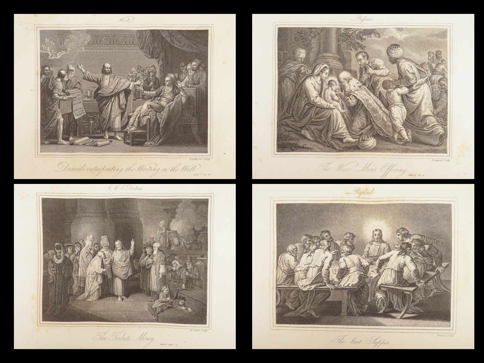 The Holy Bible, containing the Old and the New Testament, and Apocrypha was published in London in 1812 in six huge volumes. Each volume features extensive notes and commentary by Hewlett, a known biblical editor of the early 19th century. The set includes 120 engraved plates, integrated across the biblical text and apocryphal books.