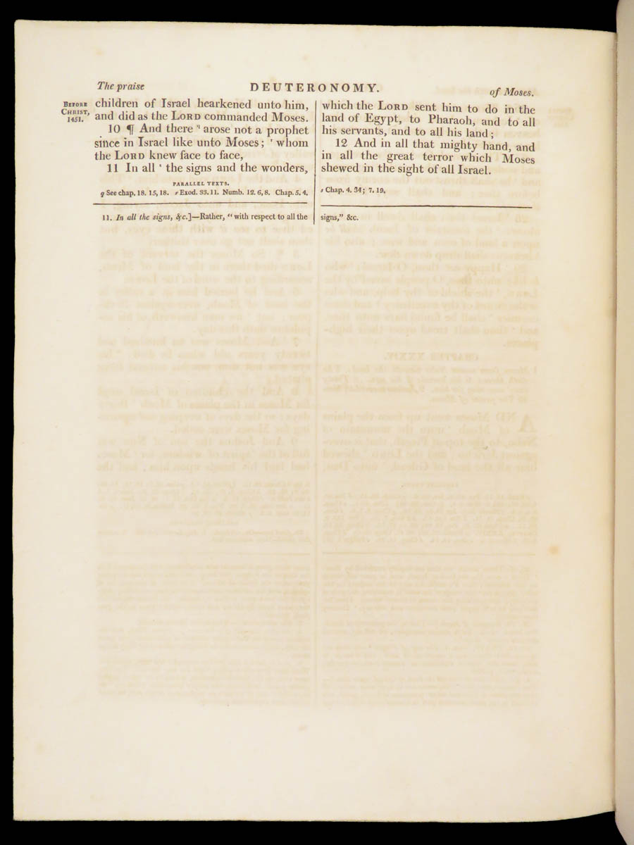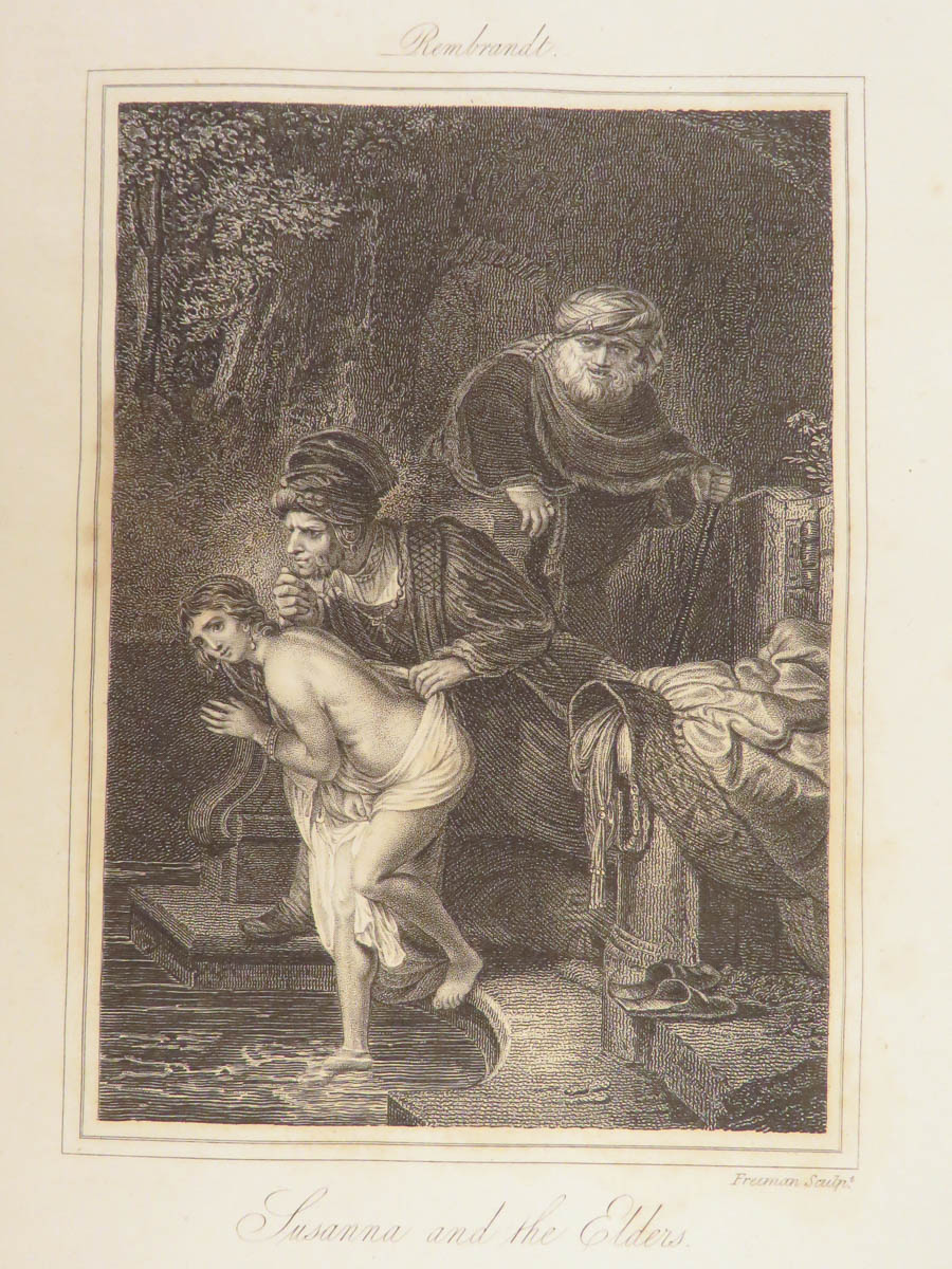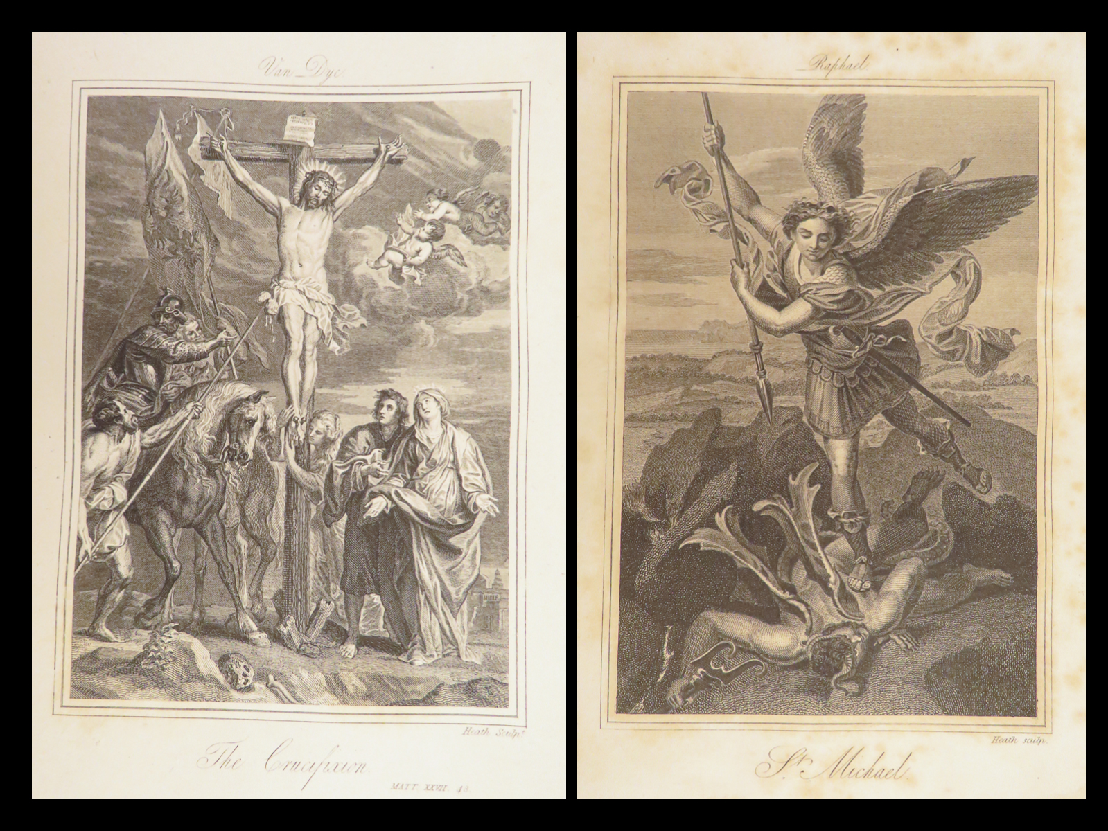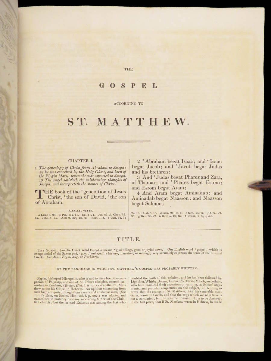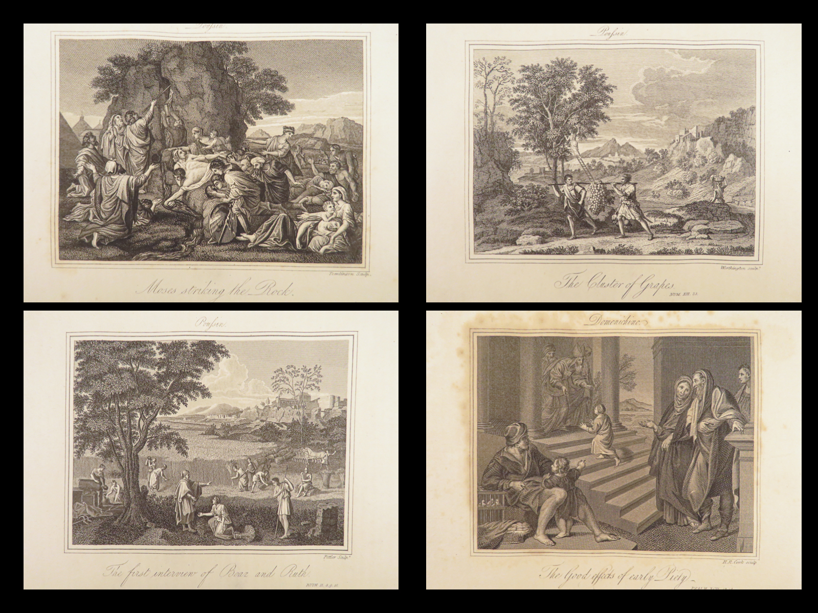 The Holy Bible, containing the Old and the New Testament, and Apocrypha was published in London in 1812 in six huge volumes. Each volume features extensive notes and commentary by Hewlett, a known biblical editor of the early 19th century. The set includes 120 engraved plates, integrated across the biblical text and apocryphal books.