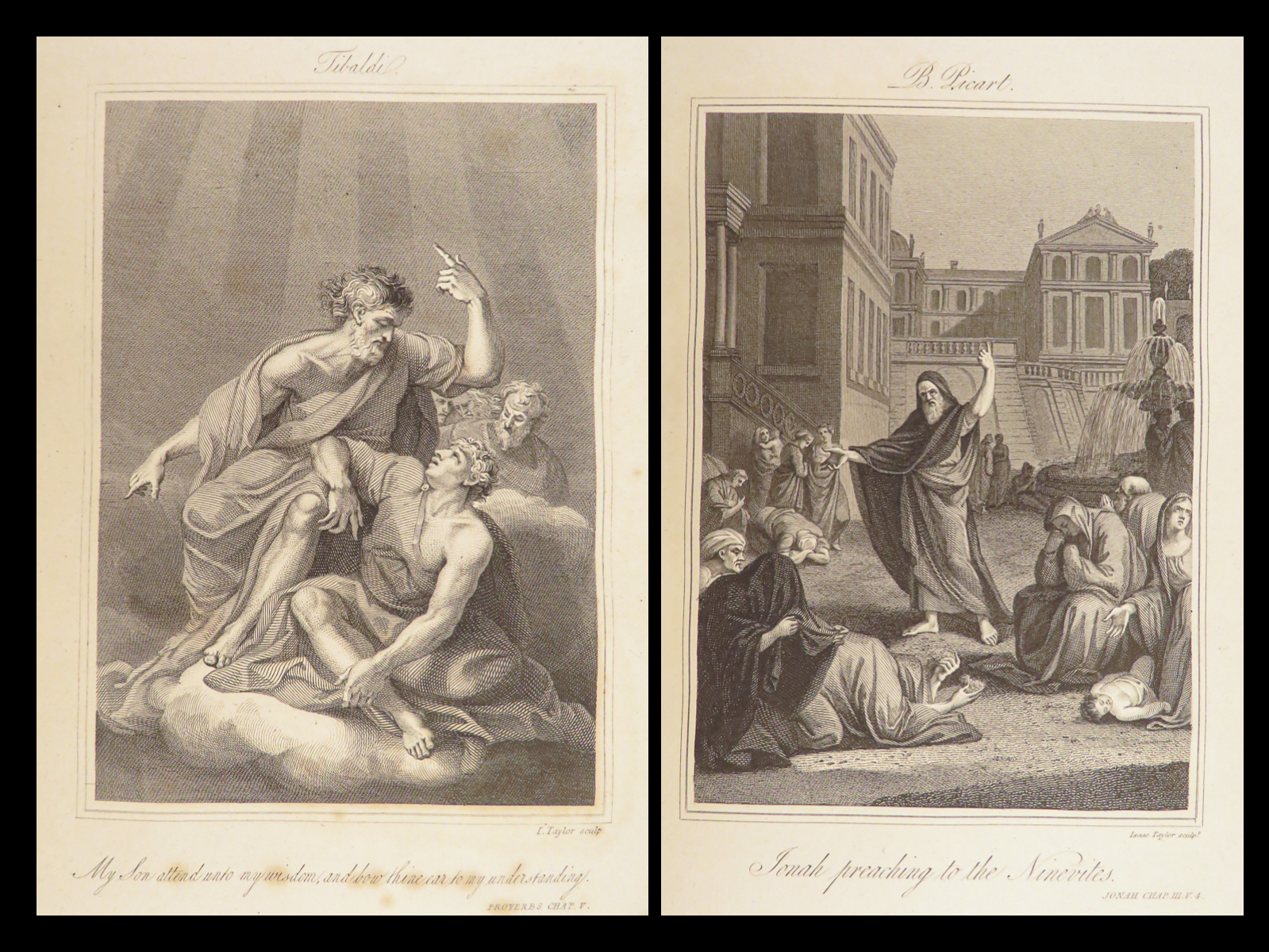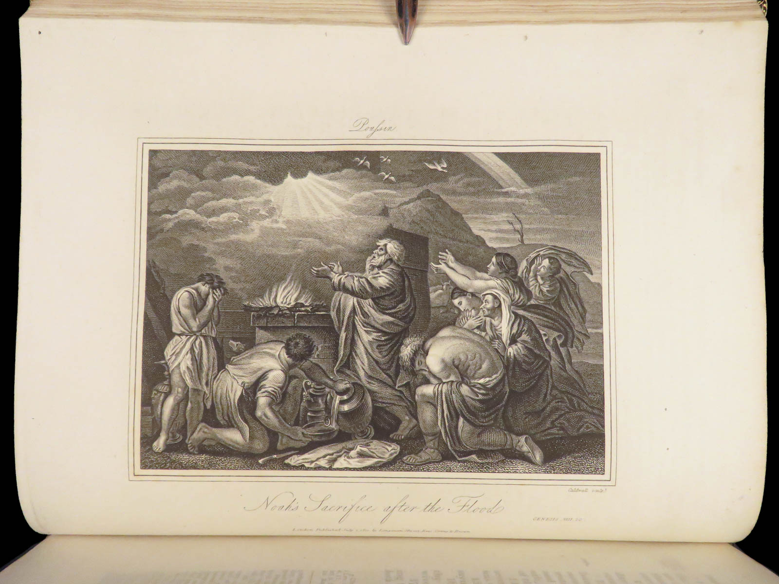 The holy bible – 1812 | john hewett commentary, 120 engravings, 6 huge volumes | the 1812 folio edition of the holy bible edited by john hewlett, printed in london, with 120 engraved plates across six volumes and complete with apocrypha and critical notes.