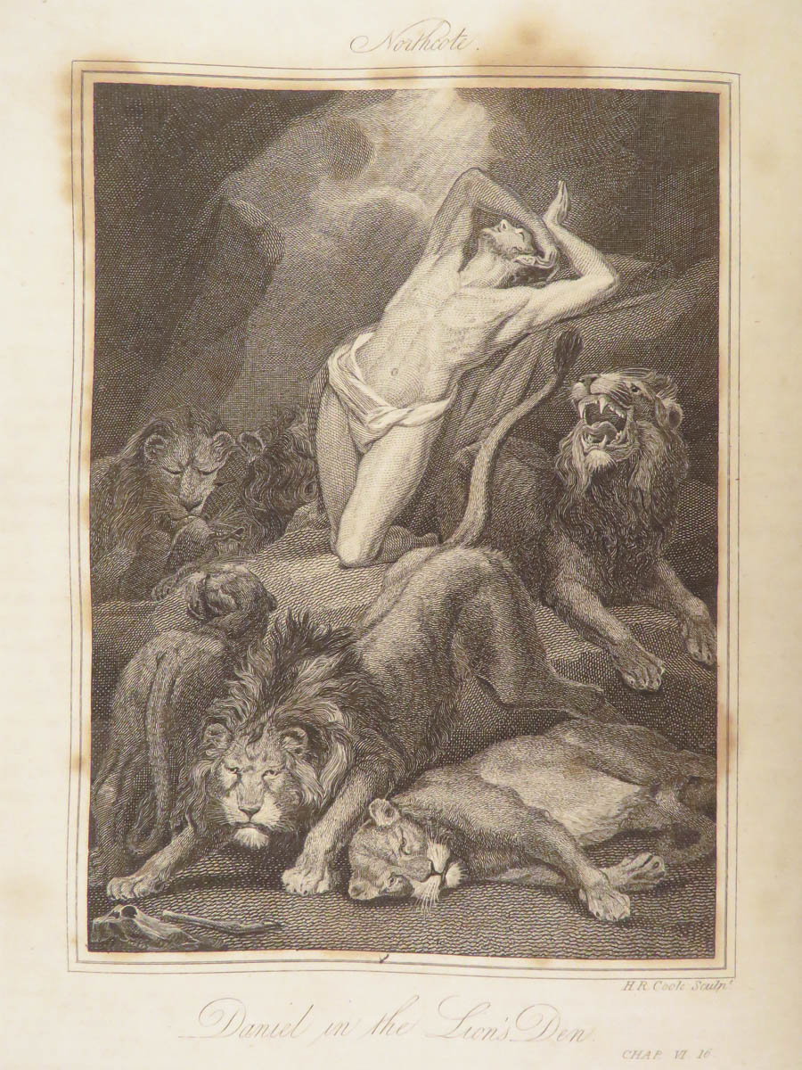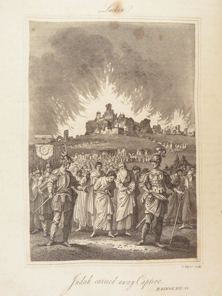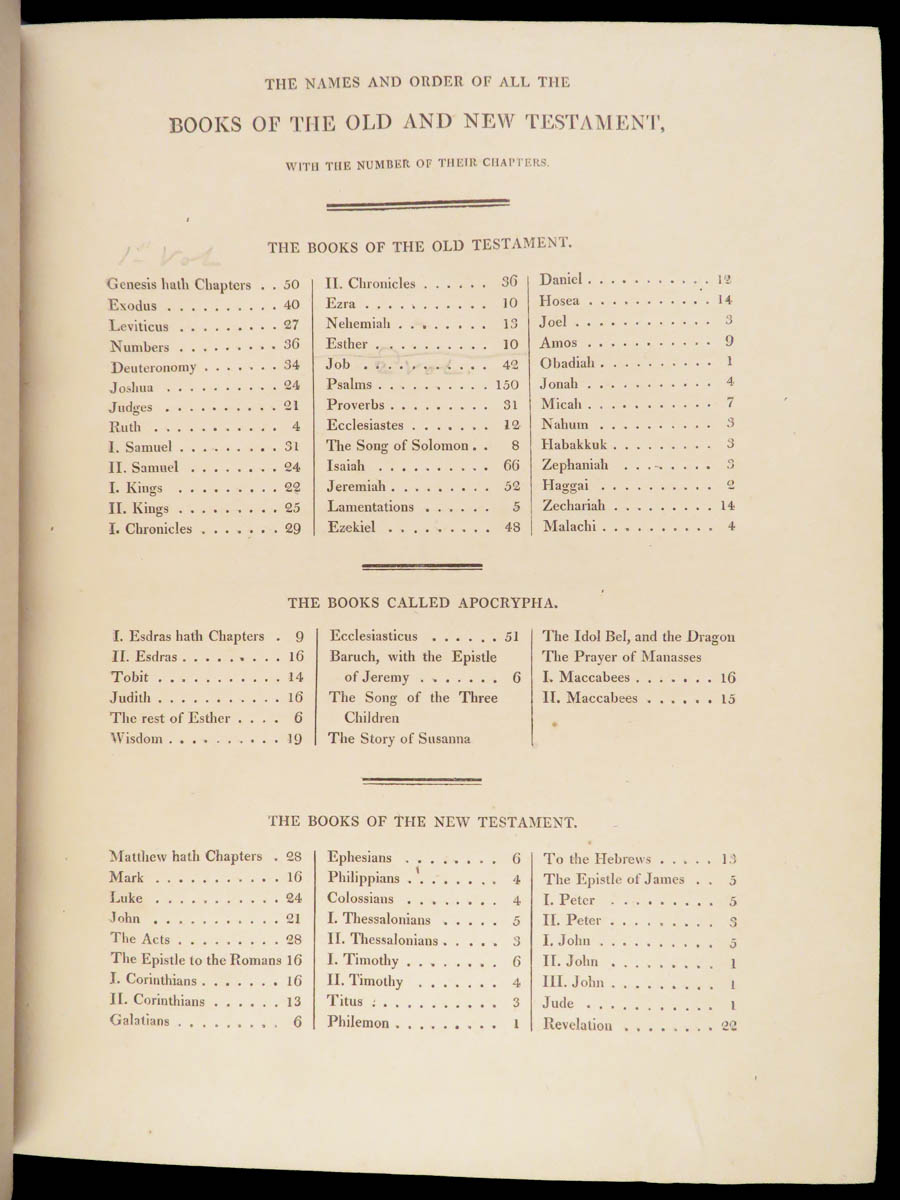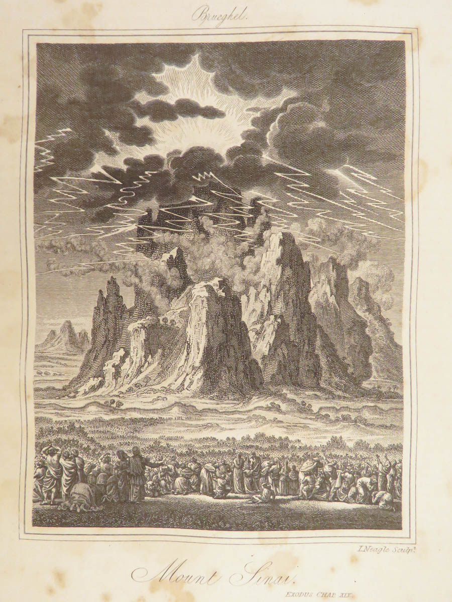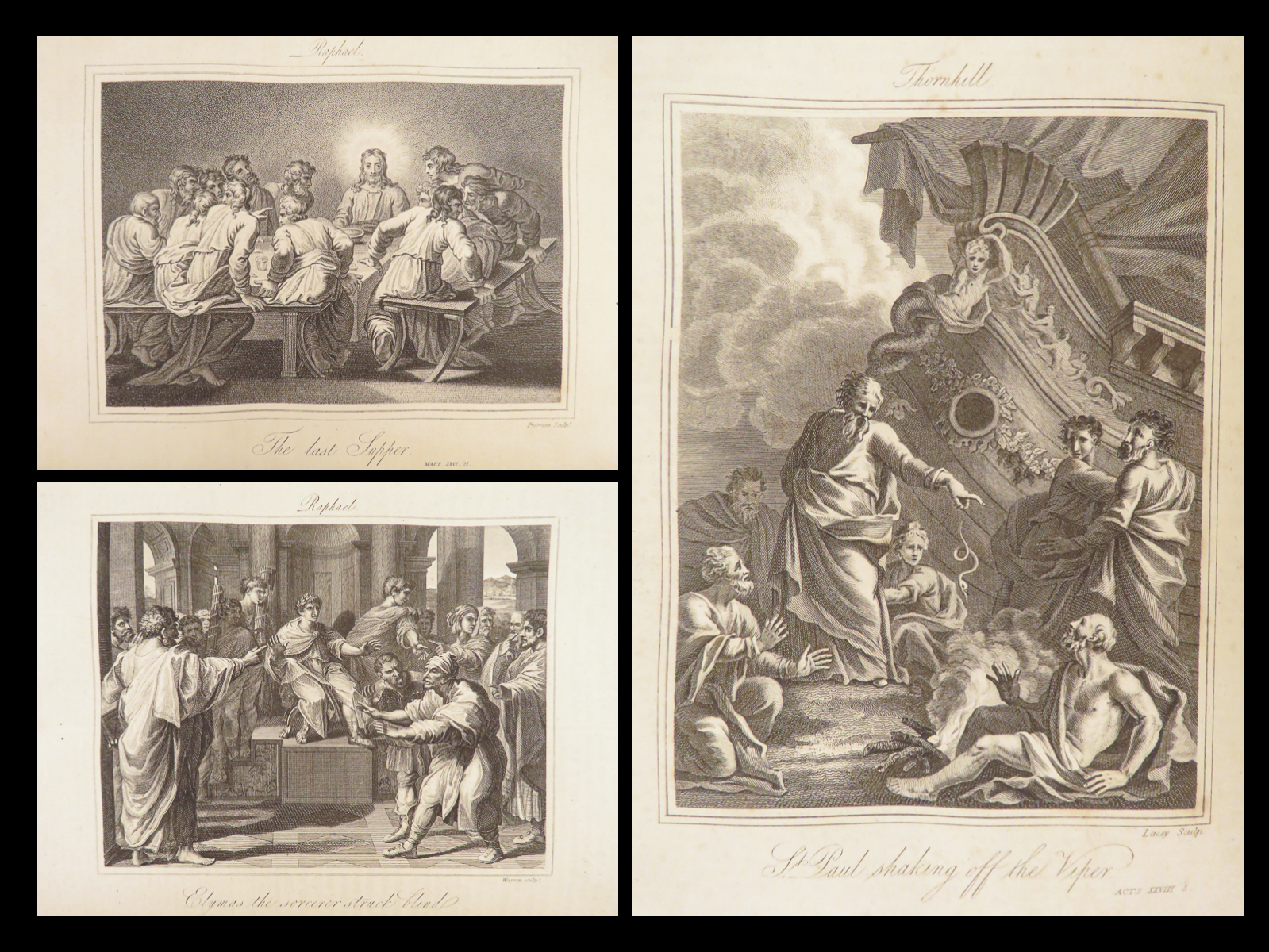 The Holy Bible, containing the Old and the New Testament, and Apocrypha was published in London in 1812 in three huge volumes. Each volume features extensive notes and commentary by Hewlett, a known biblical editor of the early 19th century. The set includes 120 engraved plates, integrated across the biblical text and apocryphal books.