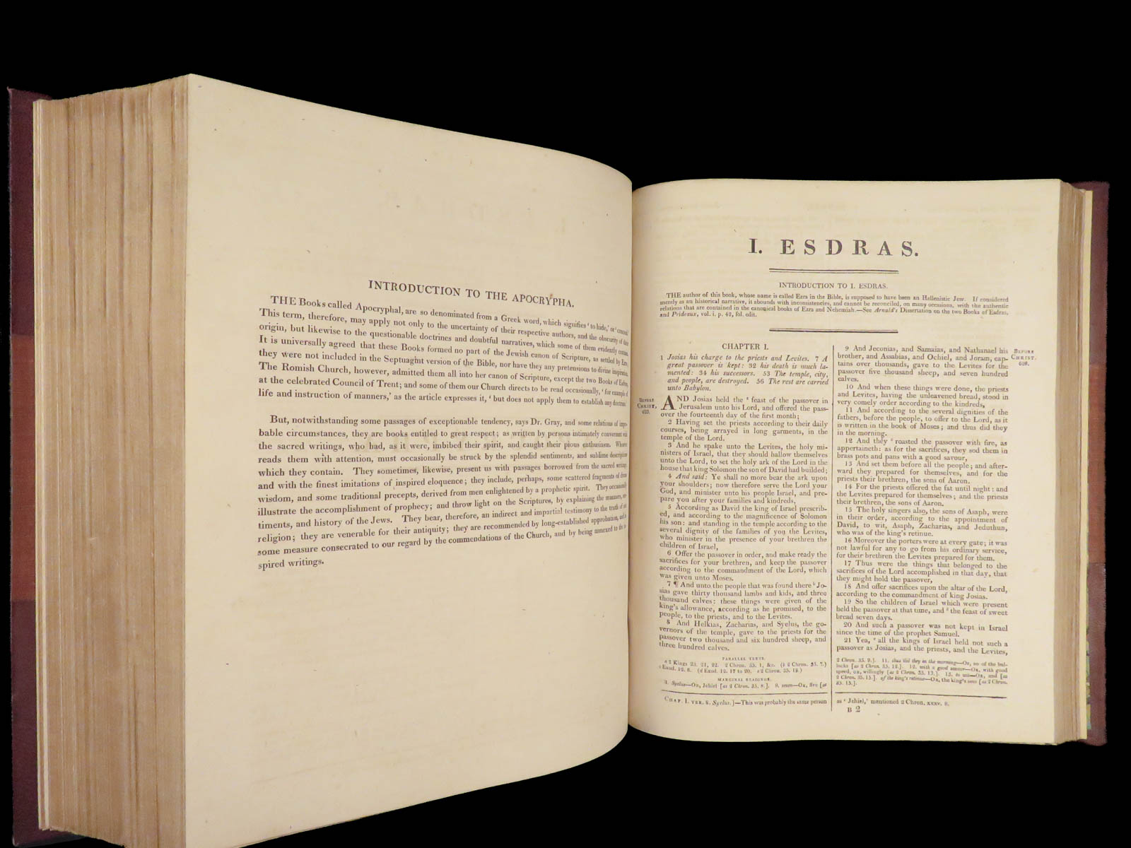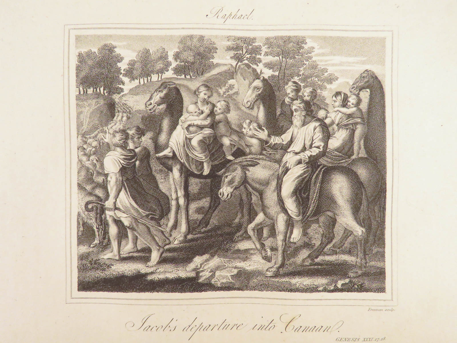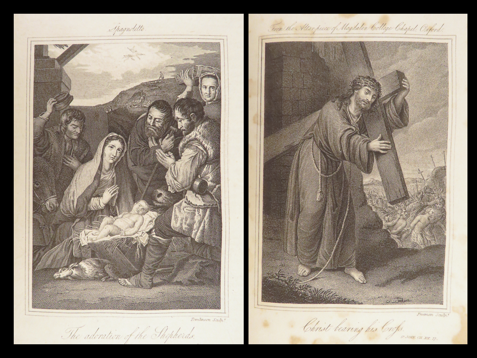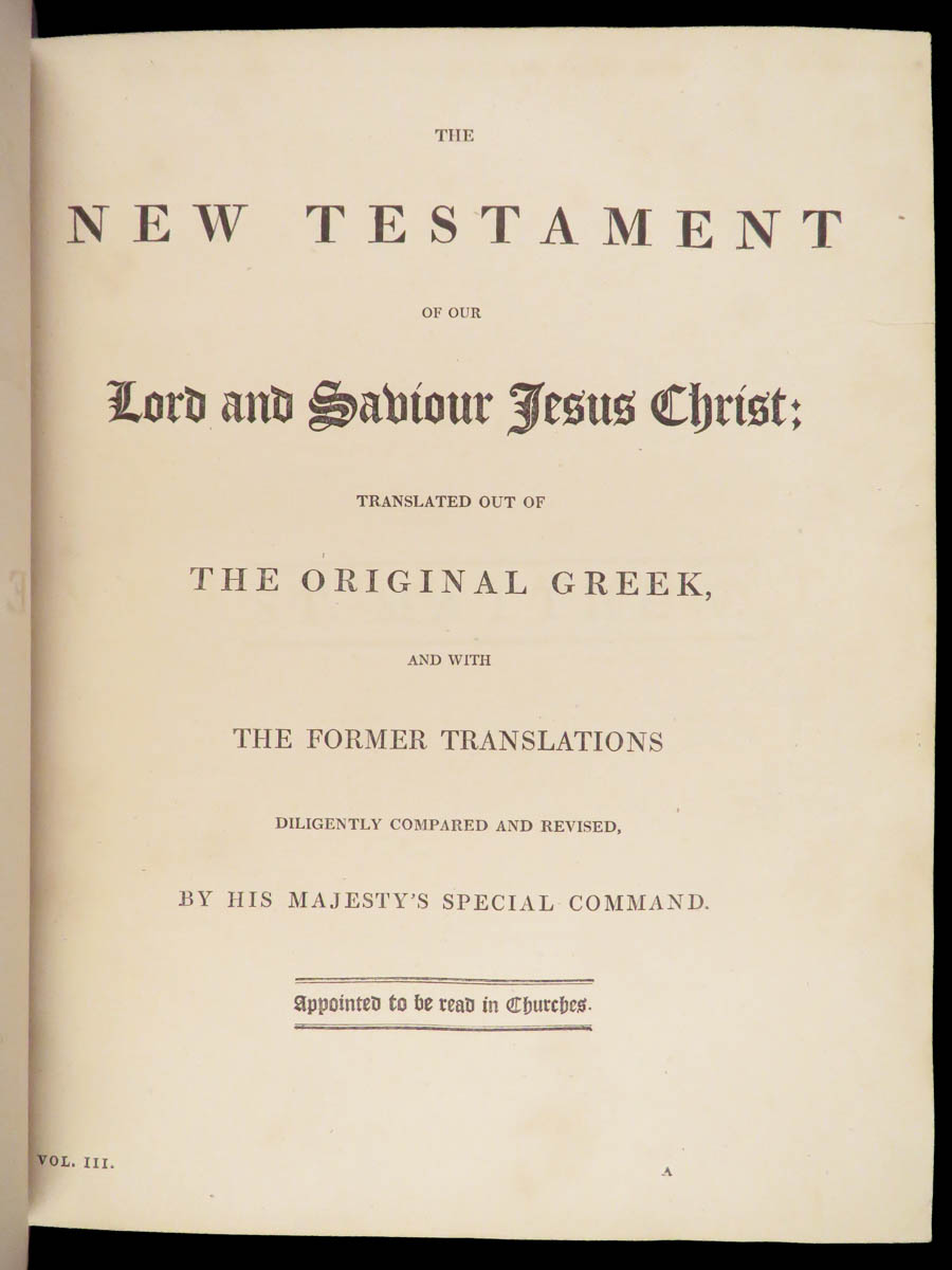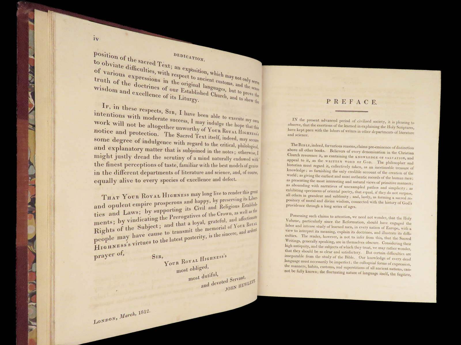 The Holy Bible, containing the Old and the New Testament, and Apocrypha was published in London in 1812 in three huge volumes. Each volume features extensive notes and commentary by Hewlett, a known biblical editor of the early 19th century. The set includes 120 engraved plates, integrated across the biblical text and apocryphal books.