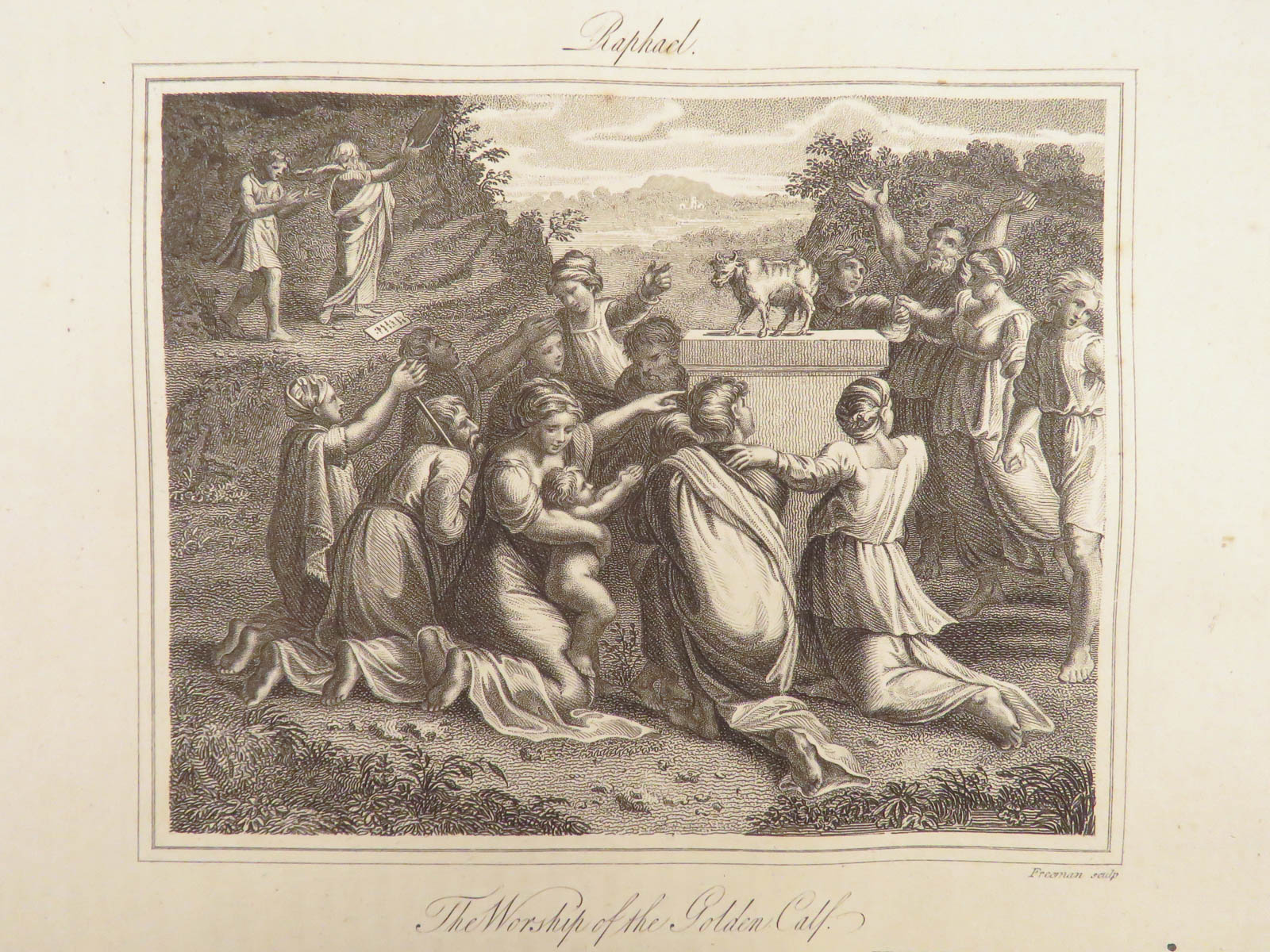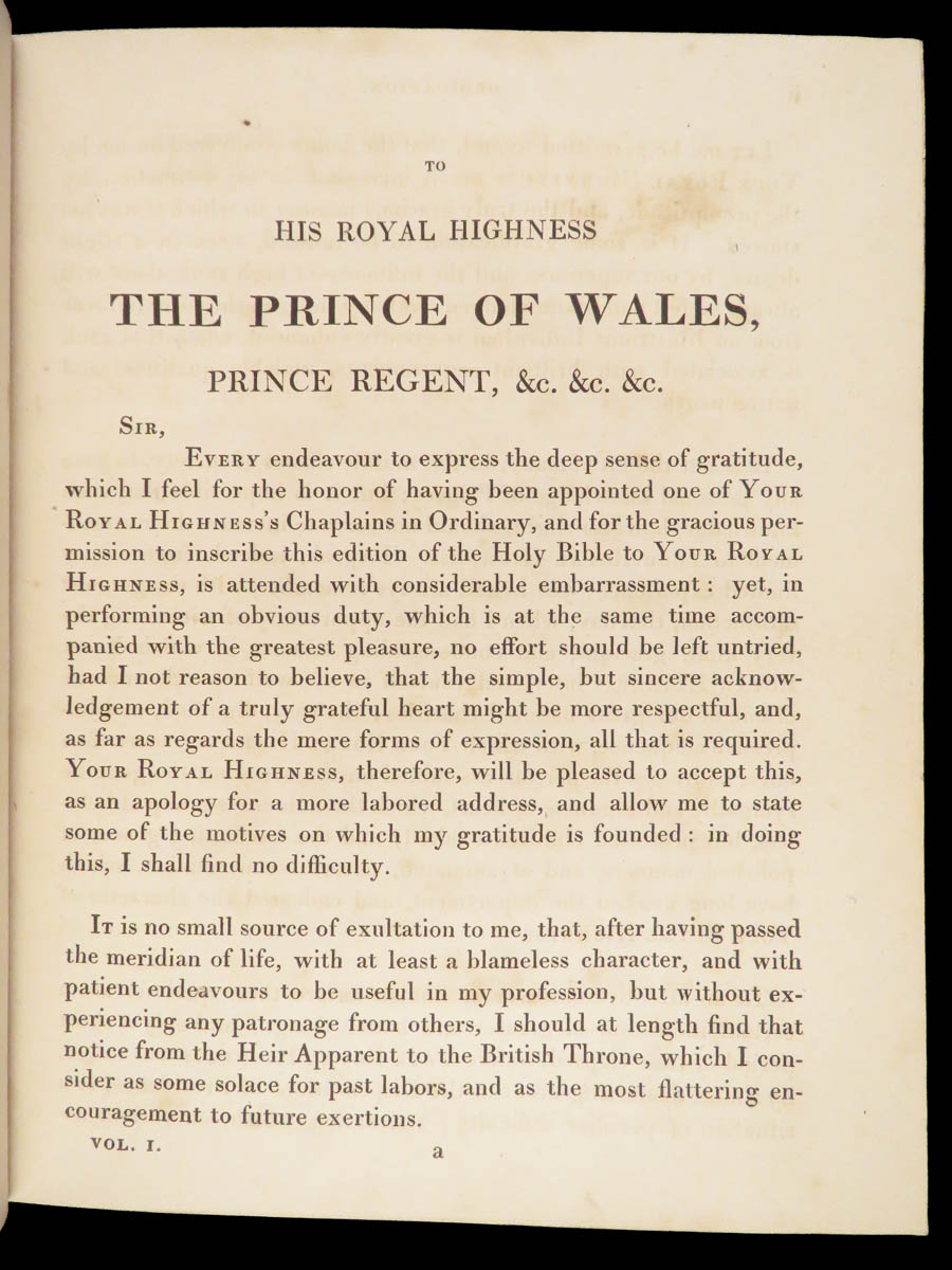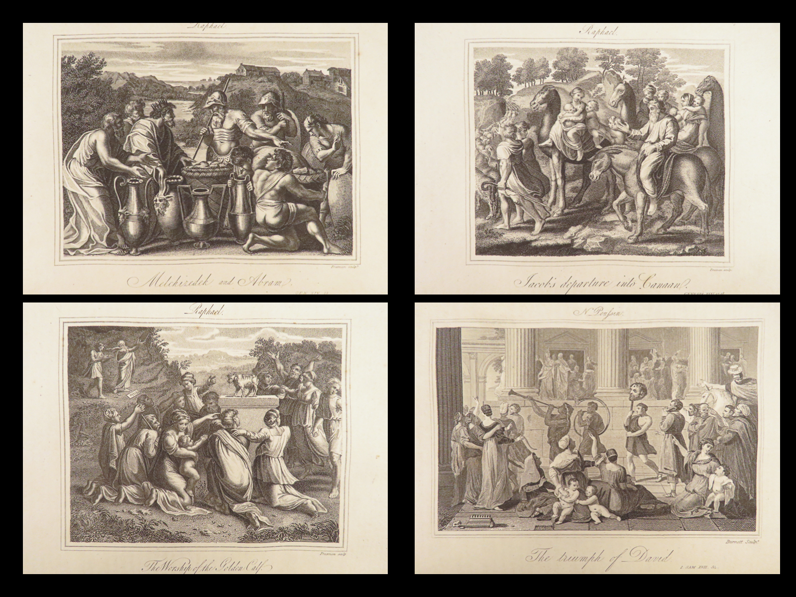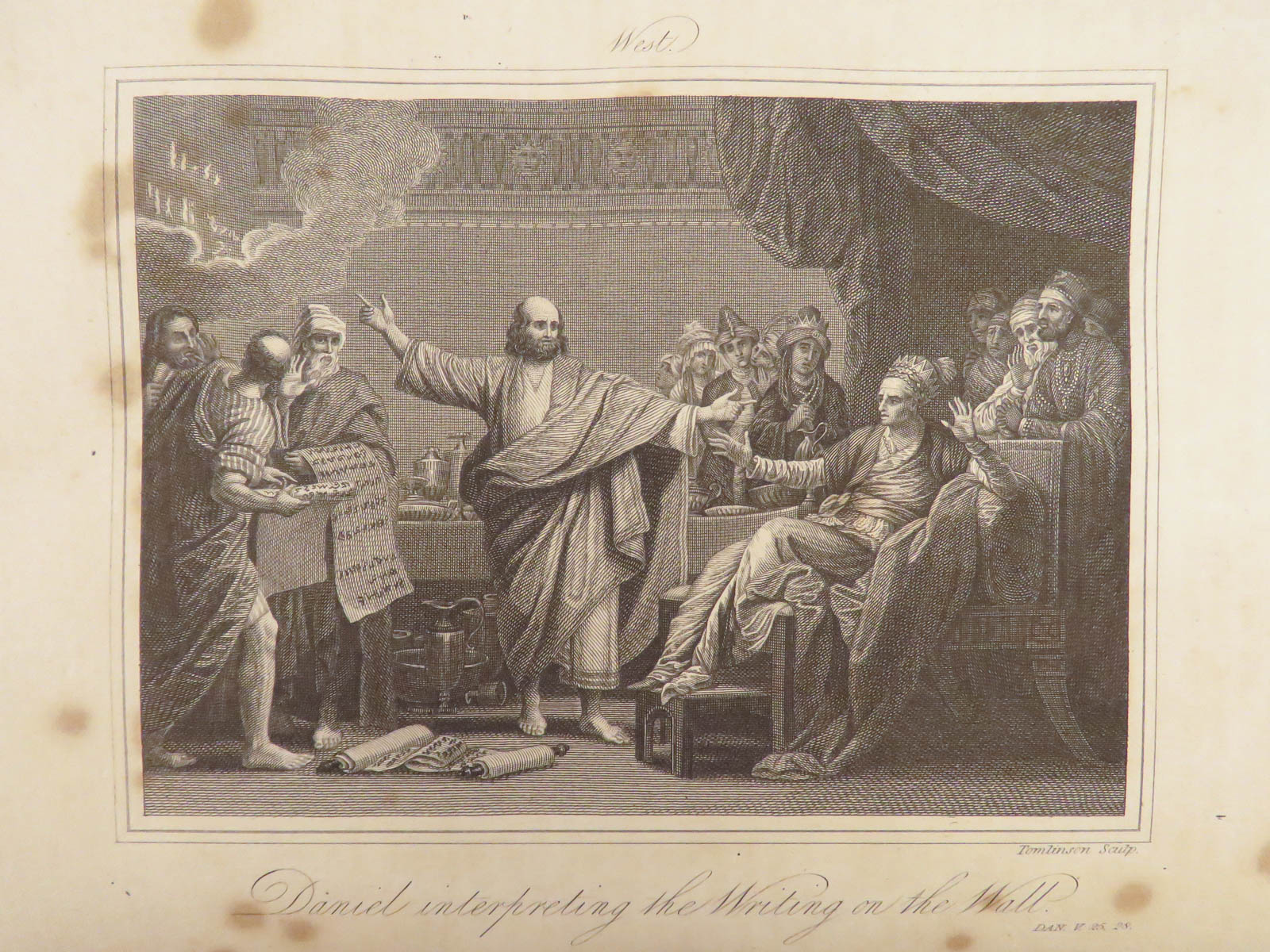 The Holy Bible, containing the Old and the New Testament, and Apocrypha was published in London in 1812 in three huge volumes. Each volume features extensive notes and commentary by Hewlett, a known biblical editor of the early 19th century. The set includes 120 engraved plates, integrated across the biblical text and apocryphal books.