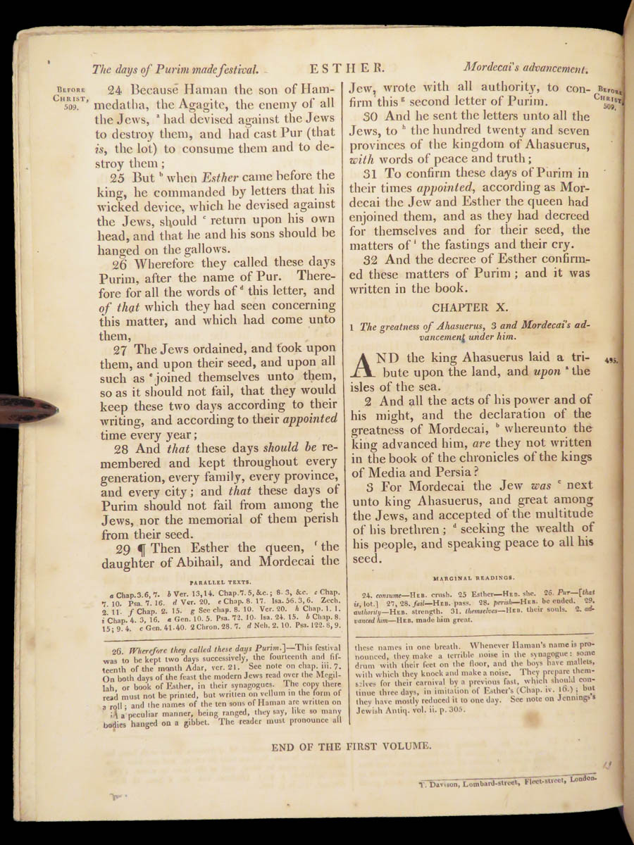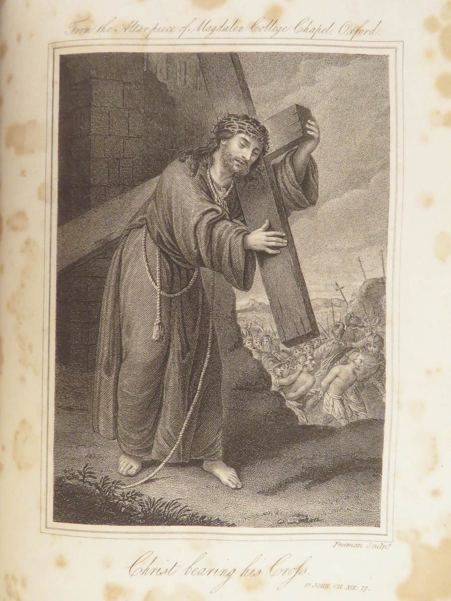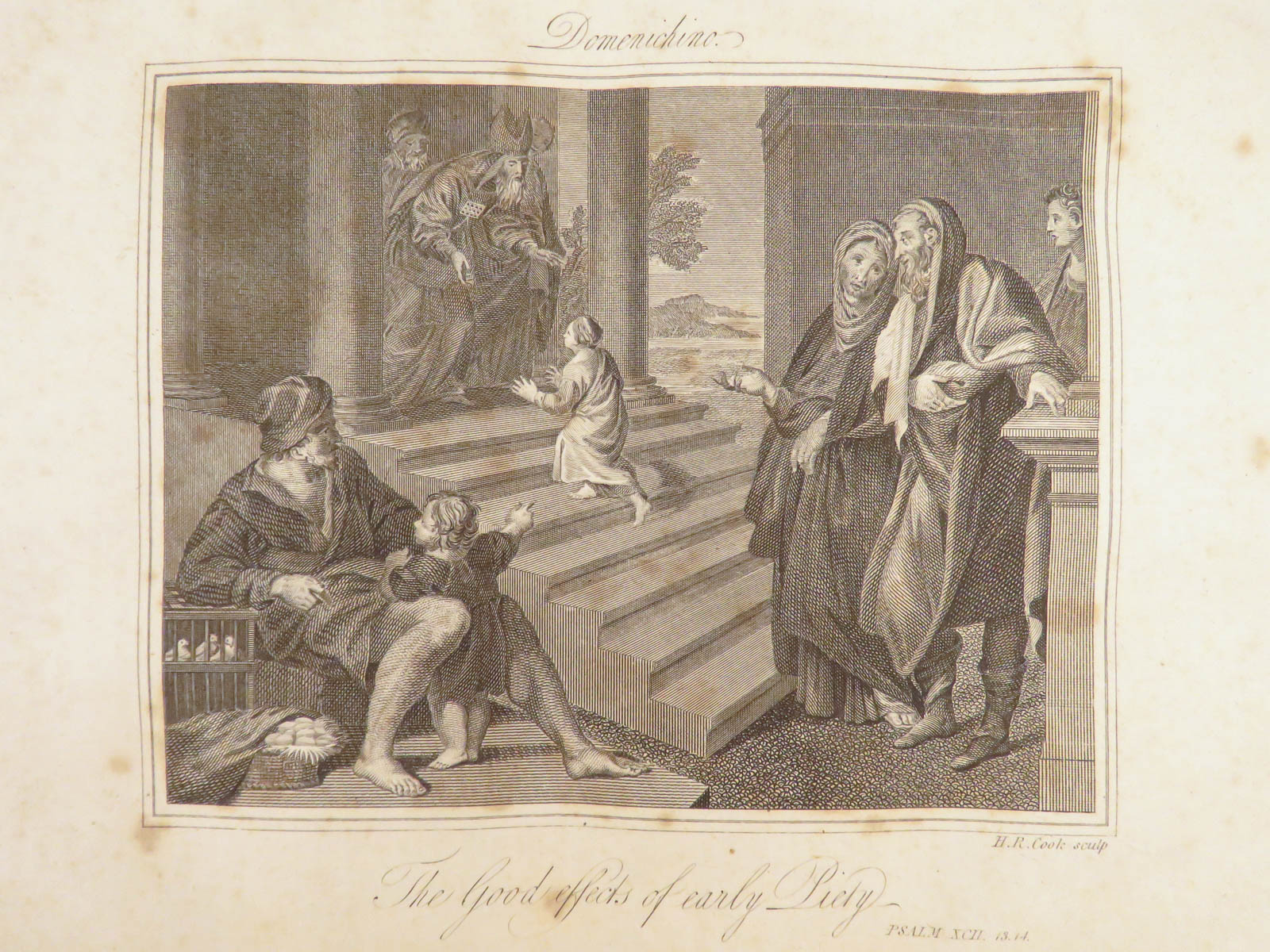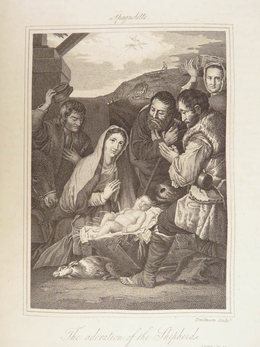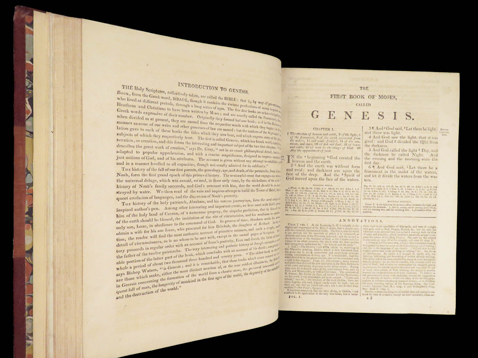The Holy Bible, containing the Old and the New Testament, and Apocrypha was published in London in 1812 in three huge volumes. Each volume features extensive notes and commentary by Hewlett, a known biblical editor of the early 19th century. The set includes 120 engraved plates, integrated across the biblical text and apocryphal books.