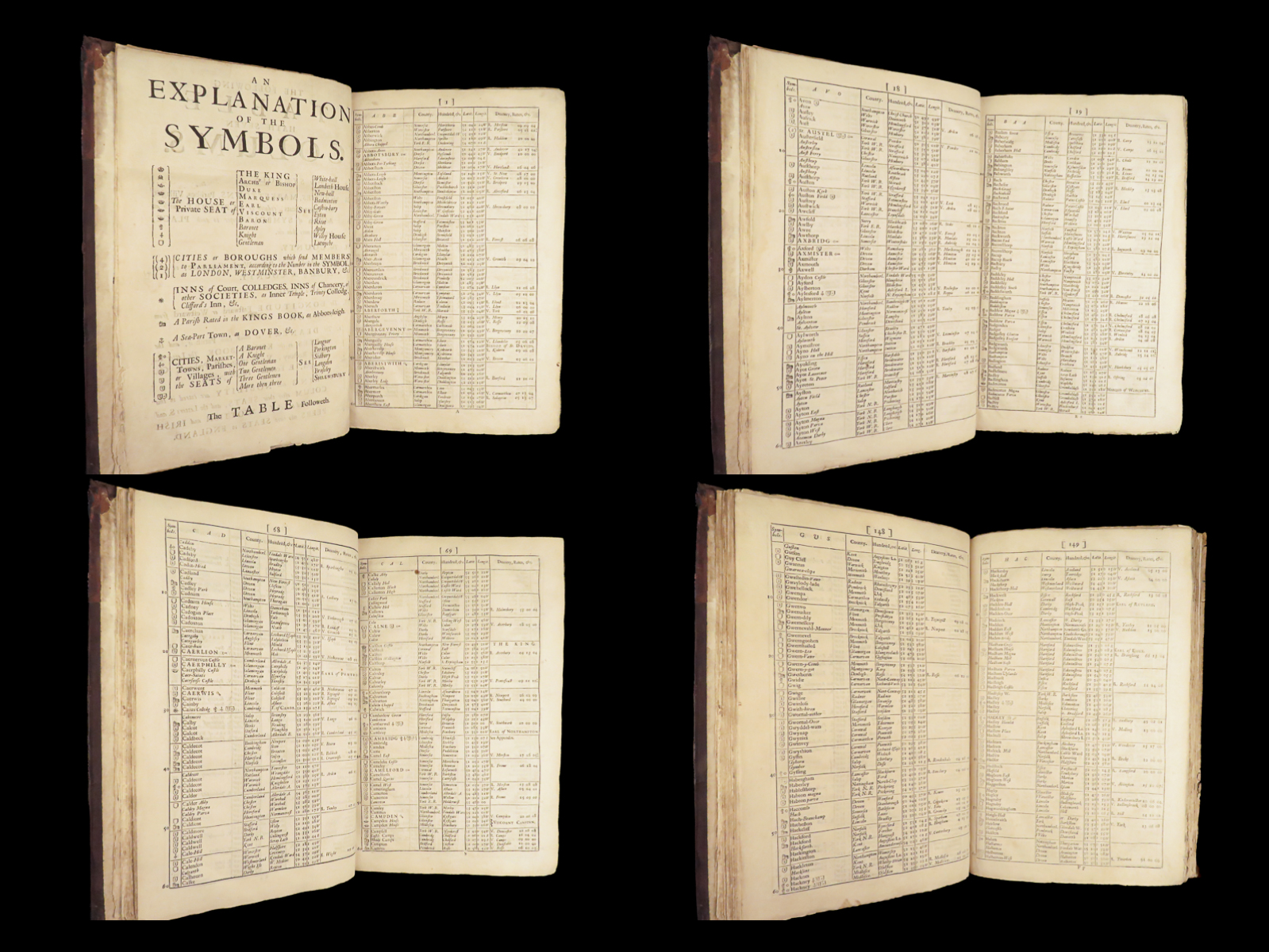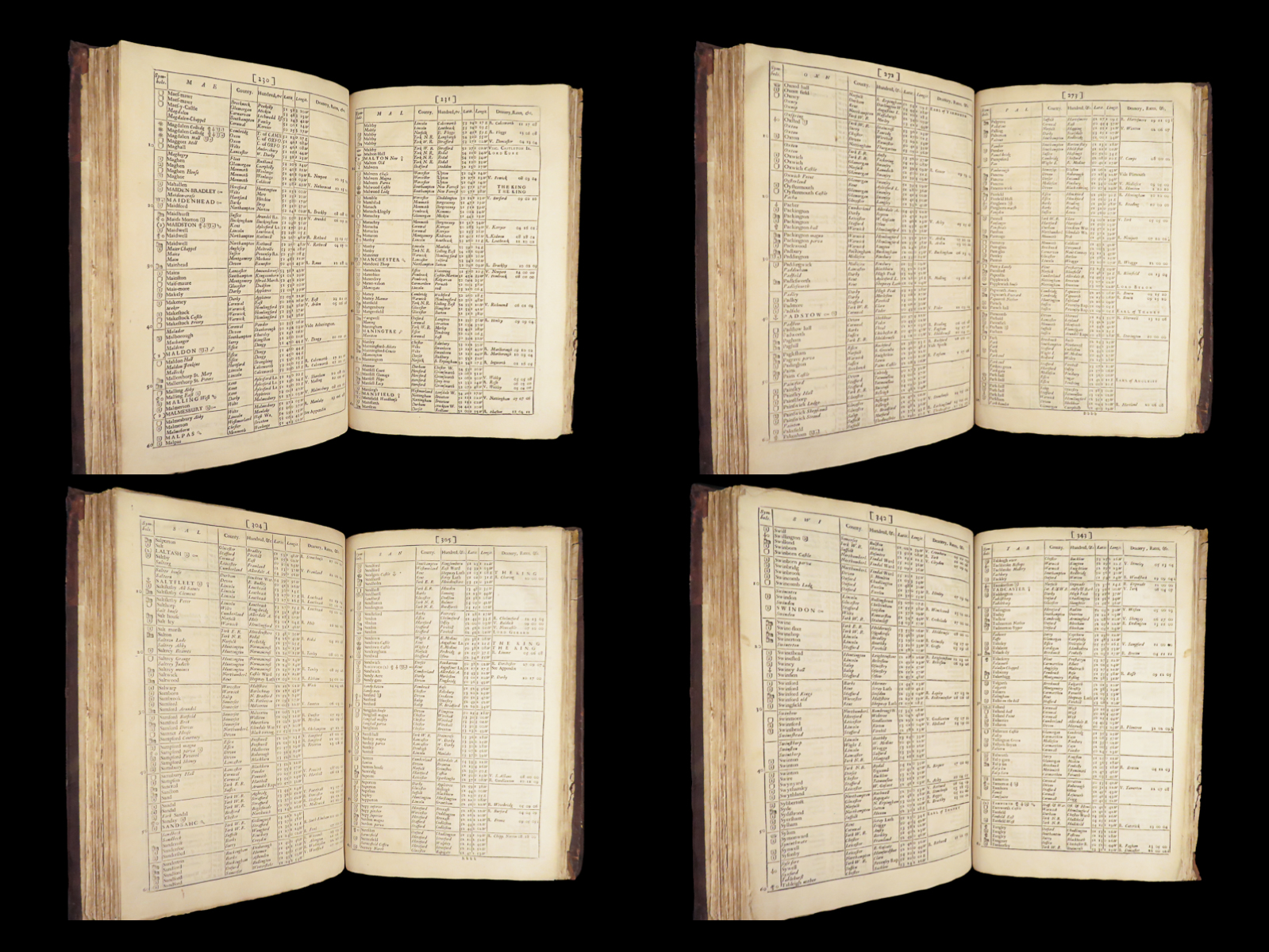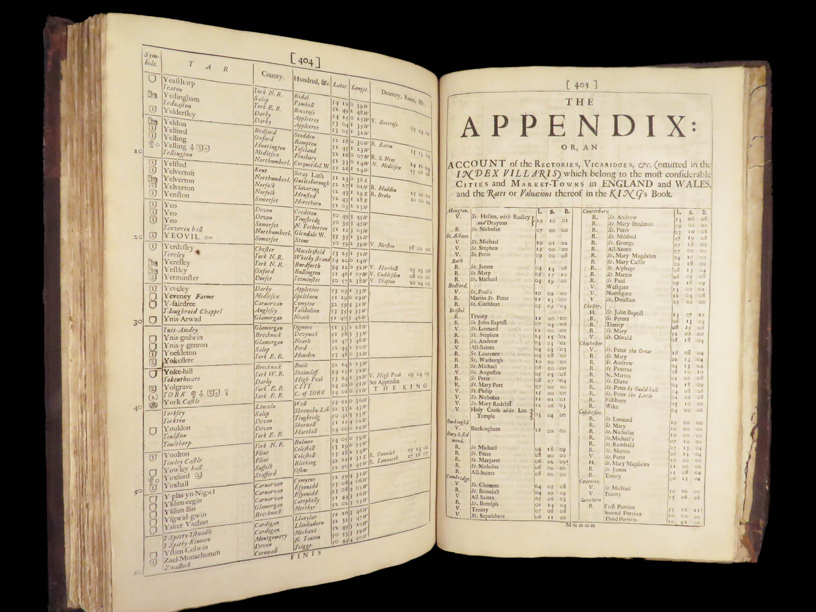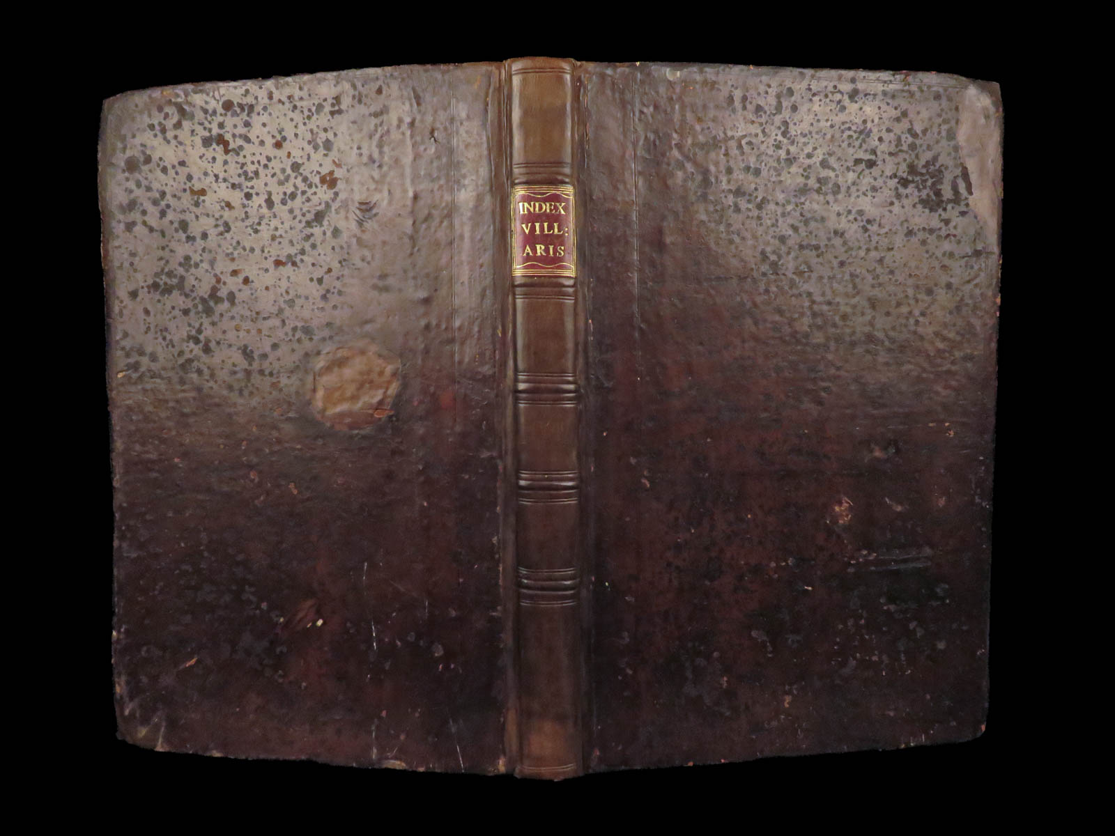 John Adams’s 1690 Index Villaris is a folio-sized English register listing all known cities, parishes, and counties in England and Wales, including their administrative and ecclesiastical divisions.