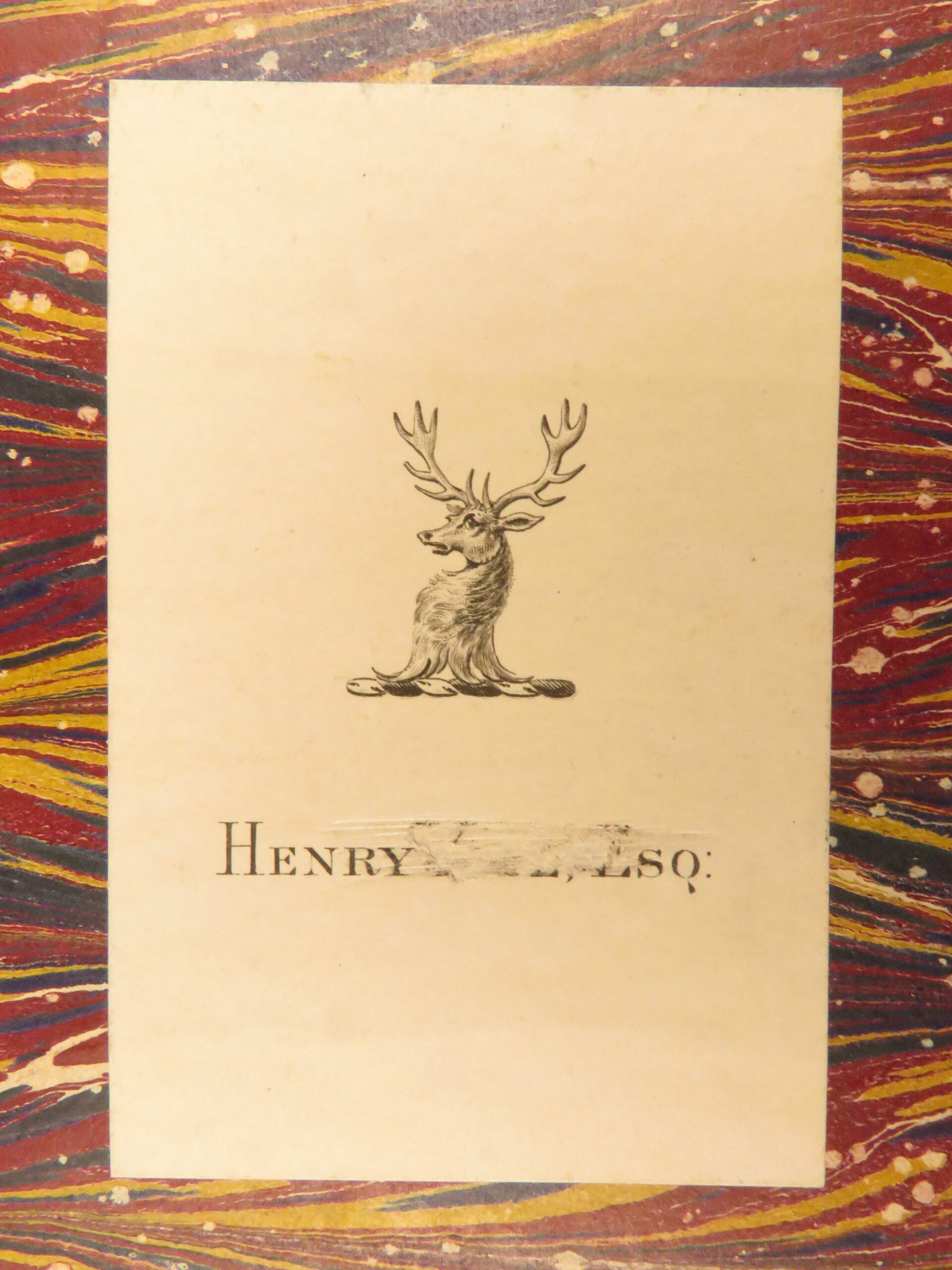 - Provenance: Armorial bookplate of Henry [illegible], Esq.