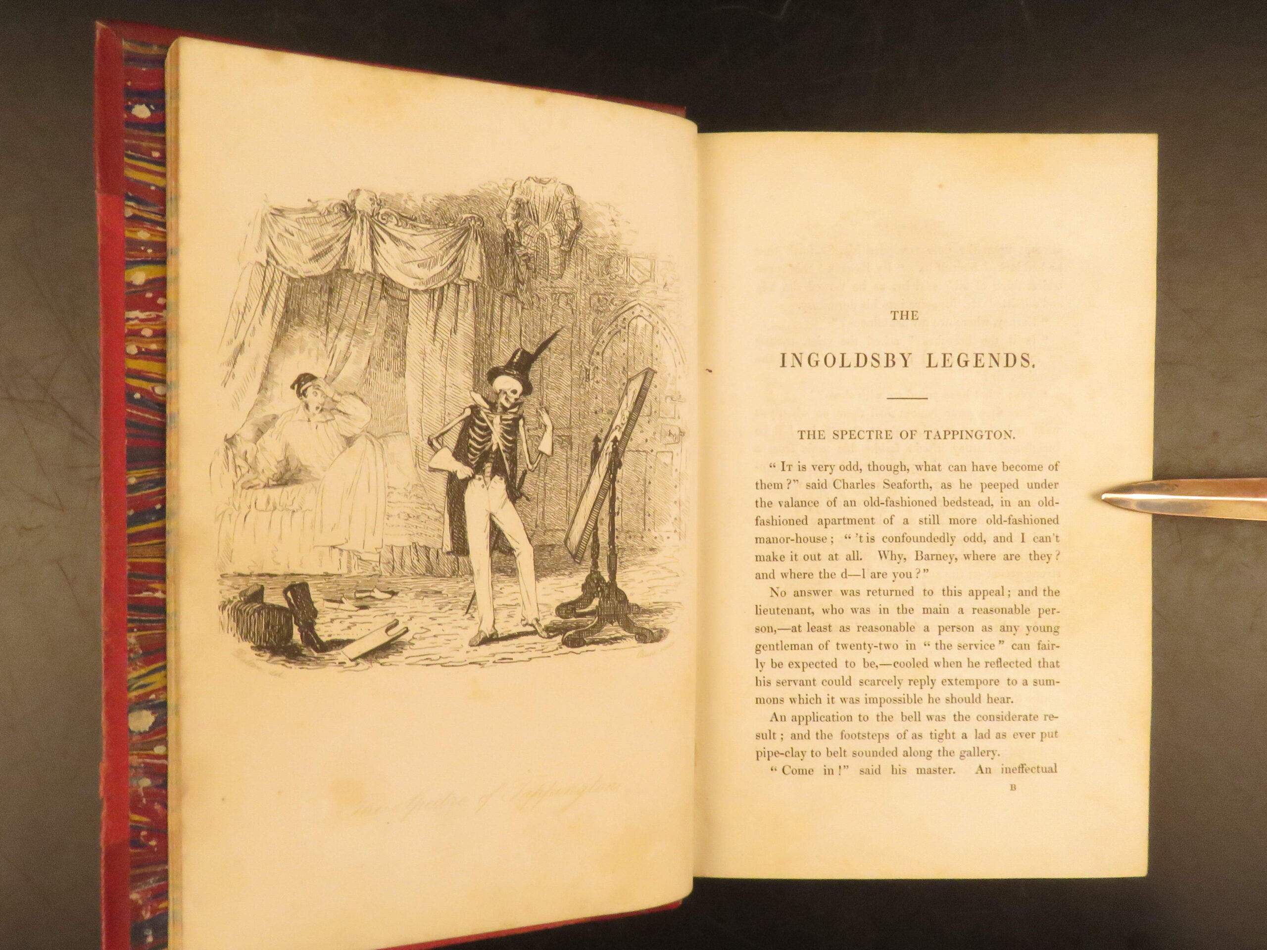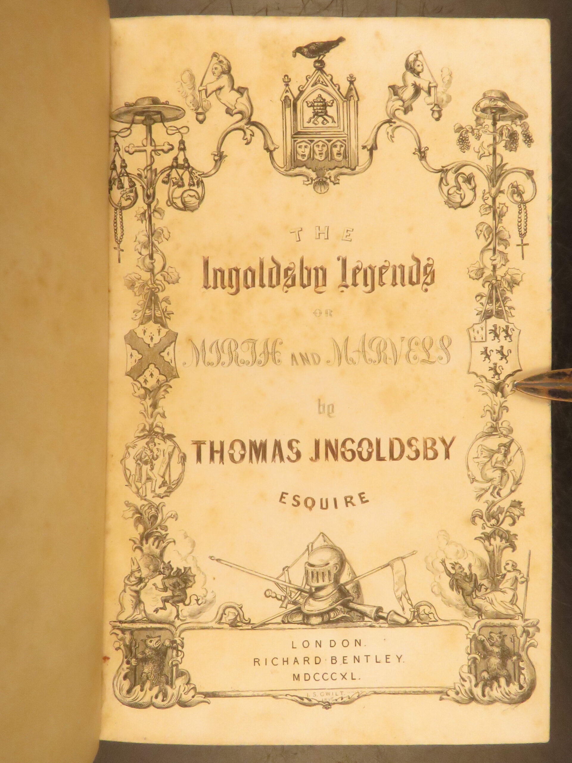 The 1840 true first edition of The Ingoldsby Legends by Thomas Ingoldsby (Richard Harris Barham)! A highly rare Victorian classic filled with gothic humor that includes features the comic illustrations of the iconic artists George Cruikshank, John Leech, and Robert Buss!