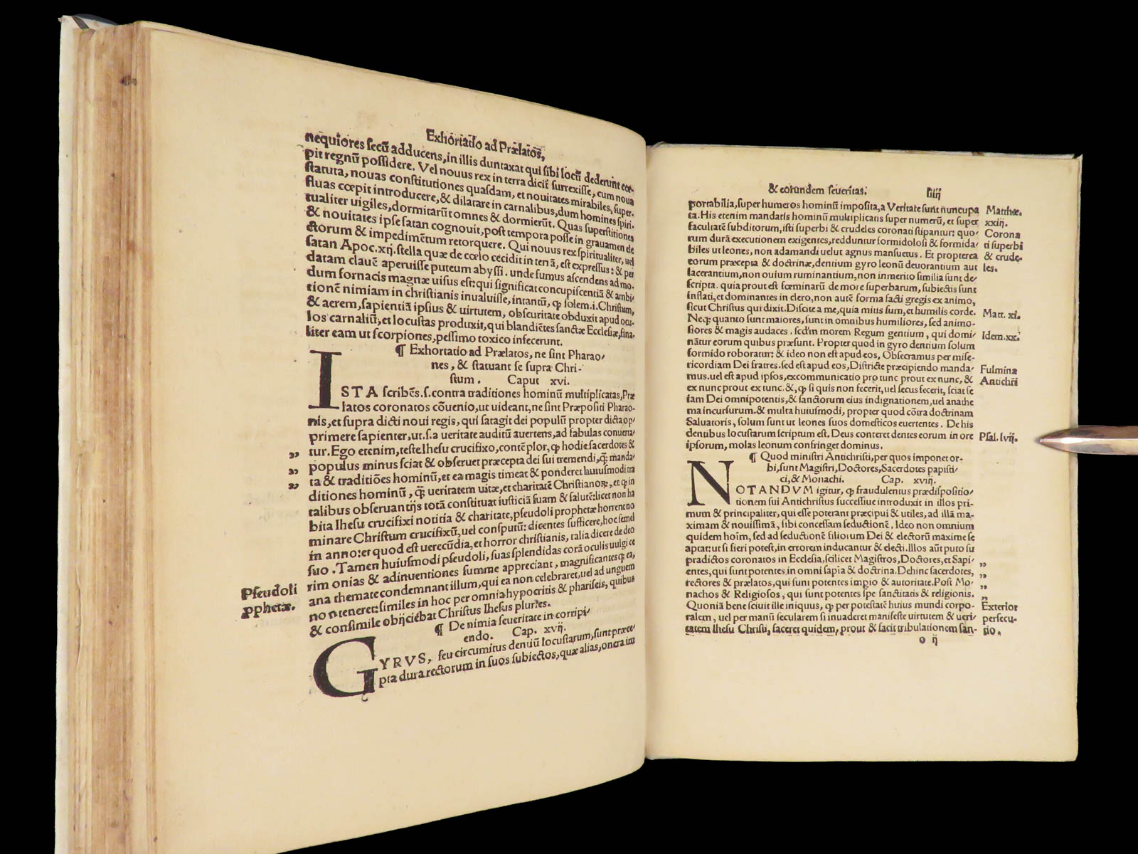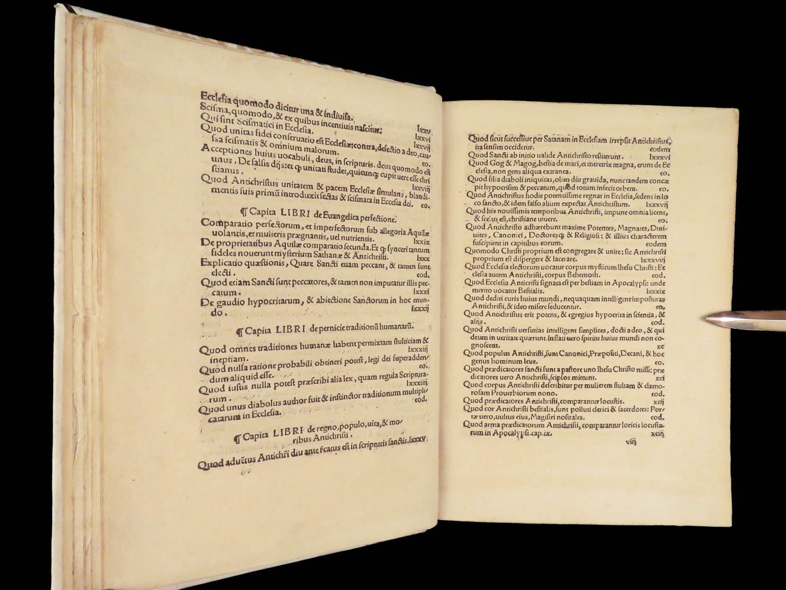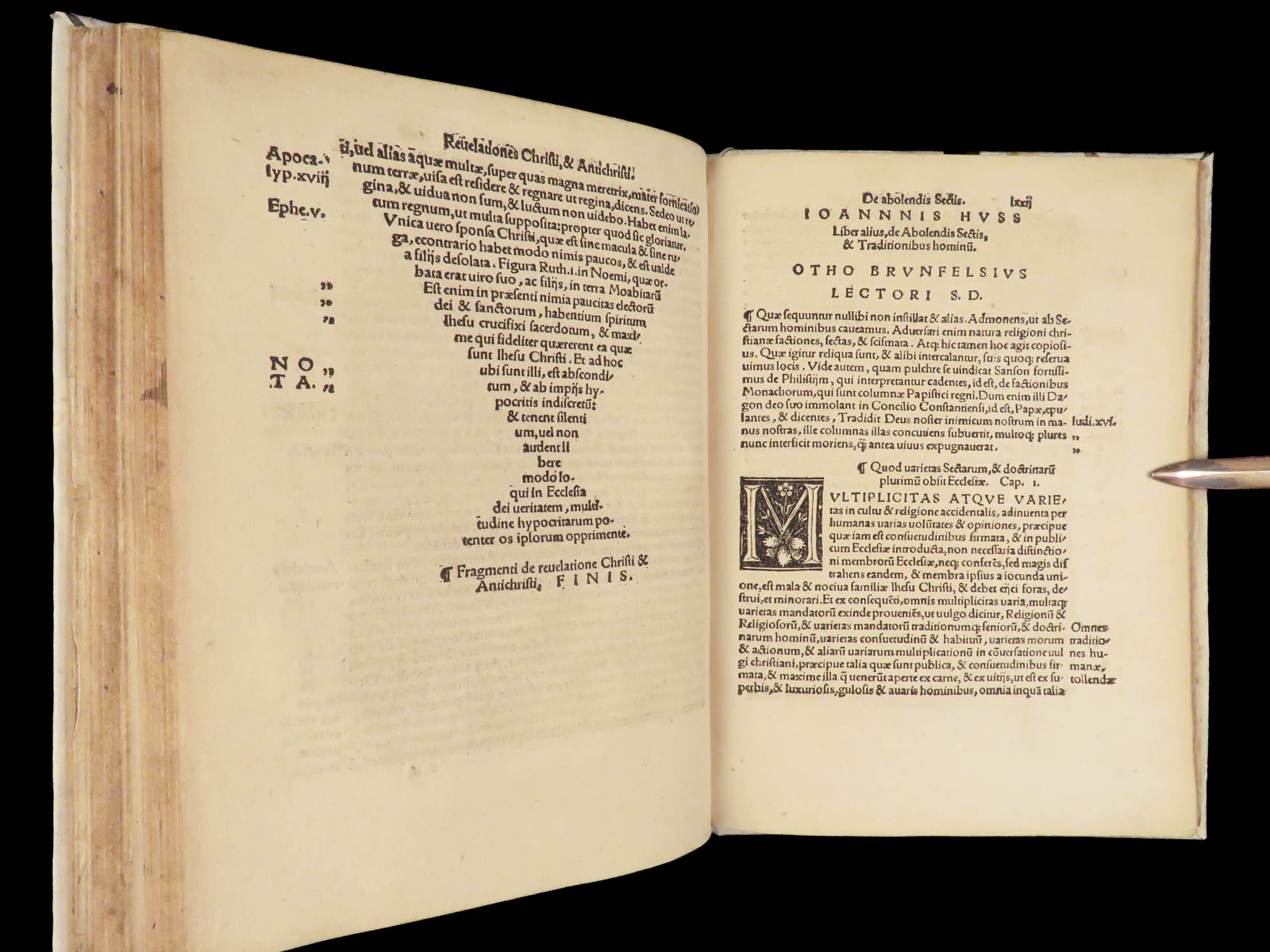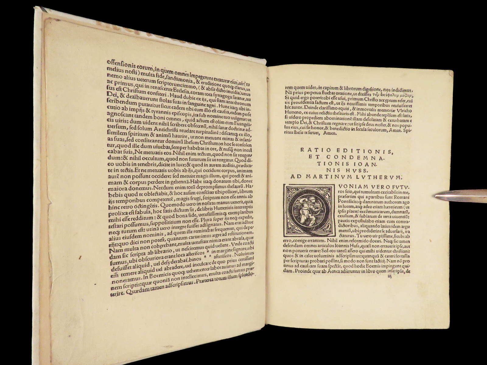 Joannes huss de anatomia antichristi, liber unus is am early Renaissance treatise connecting John Wycliffe, Jan Hus, and Martin Luther. This work, first published in 1524, adapts material from Matthias de Ianova’s Regulae Veteris et Novi Testamenti, a foundation of Hussite teaching, as well as the concept of papal Antichrist through the allegory of human anatomy. Included is Hus’s letter to Martin Luther urging the importance of his writings within the reform movement. Johann Schott produced this edition in Strassburg, a center of Reformation printing, and this particular example is notable for being bound in a period manuscript with leather ties.