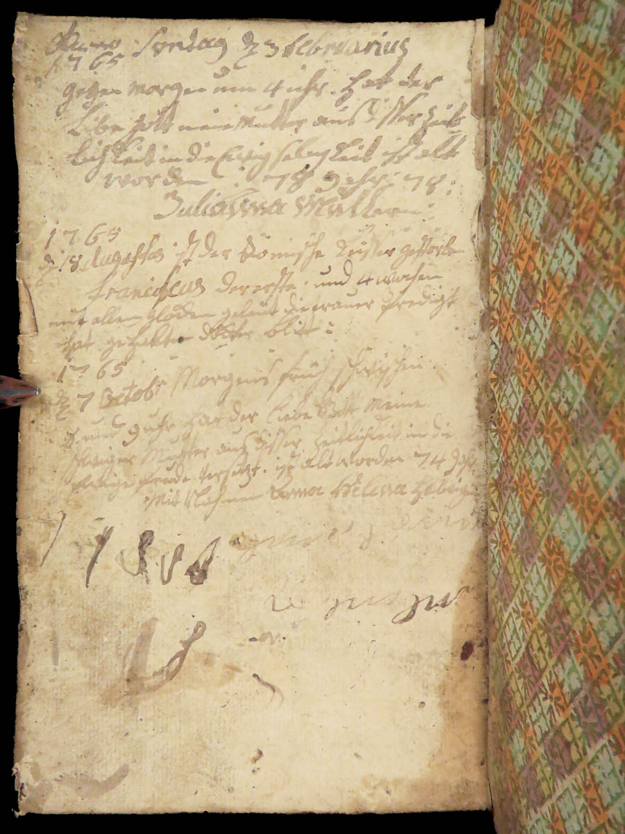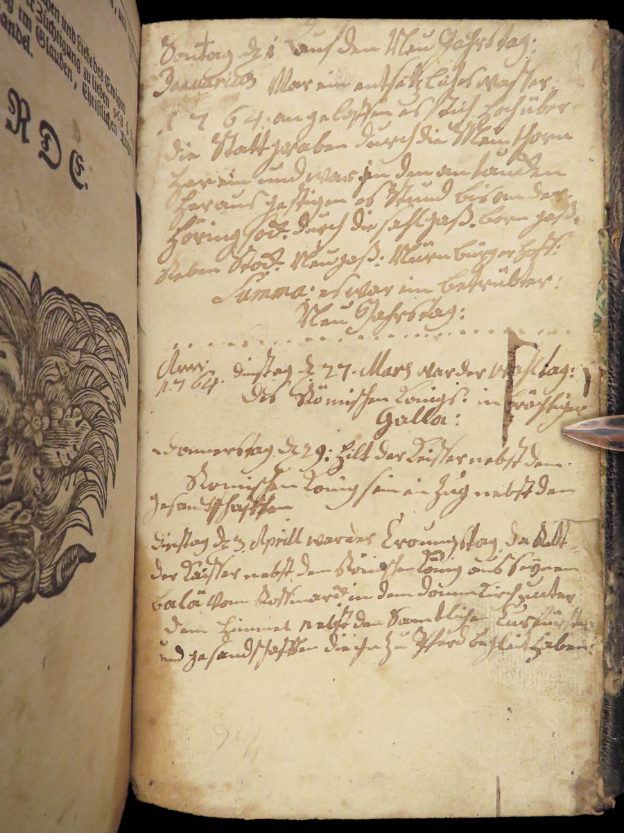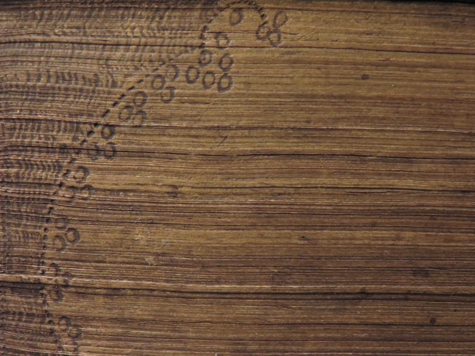 Worth noting, the top and bottom fore-edge of the tome has a decorative illustration, drawn at some point in the book’s history.