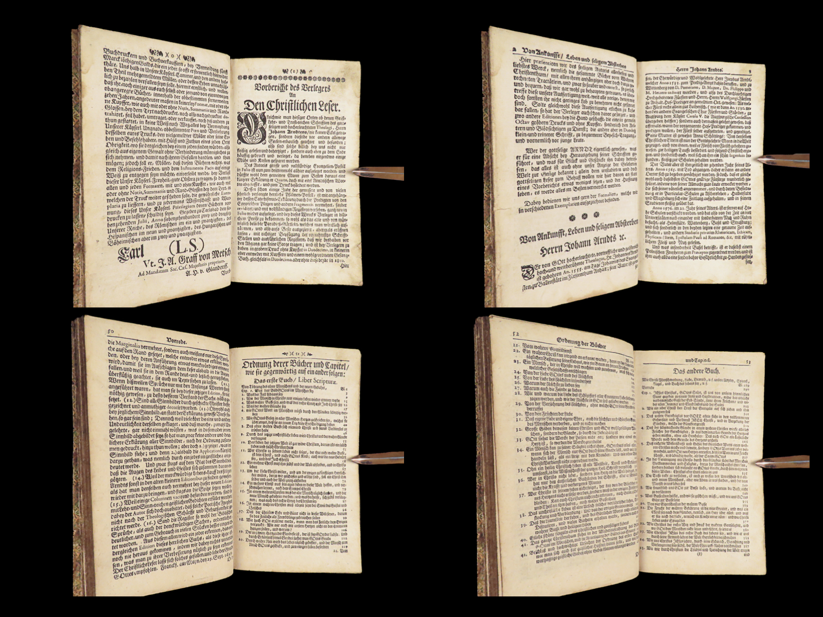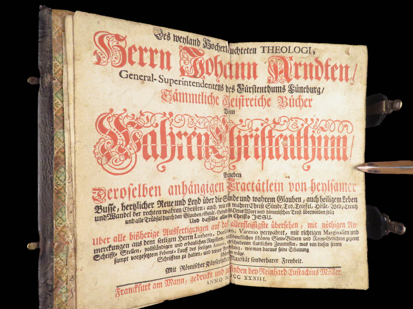 - Early eighteenth-century Frankfurt printing of Johann Arndt’s complete devotional works