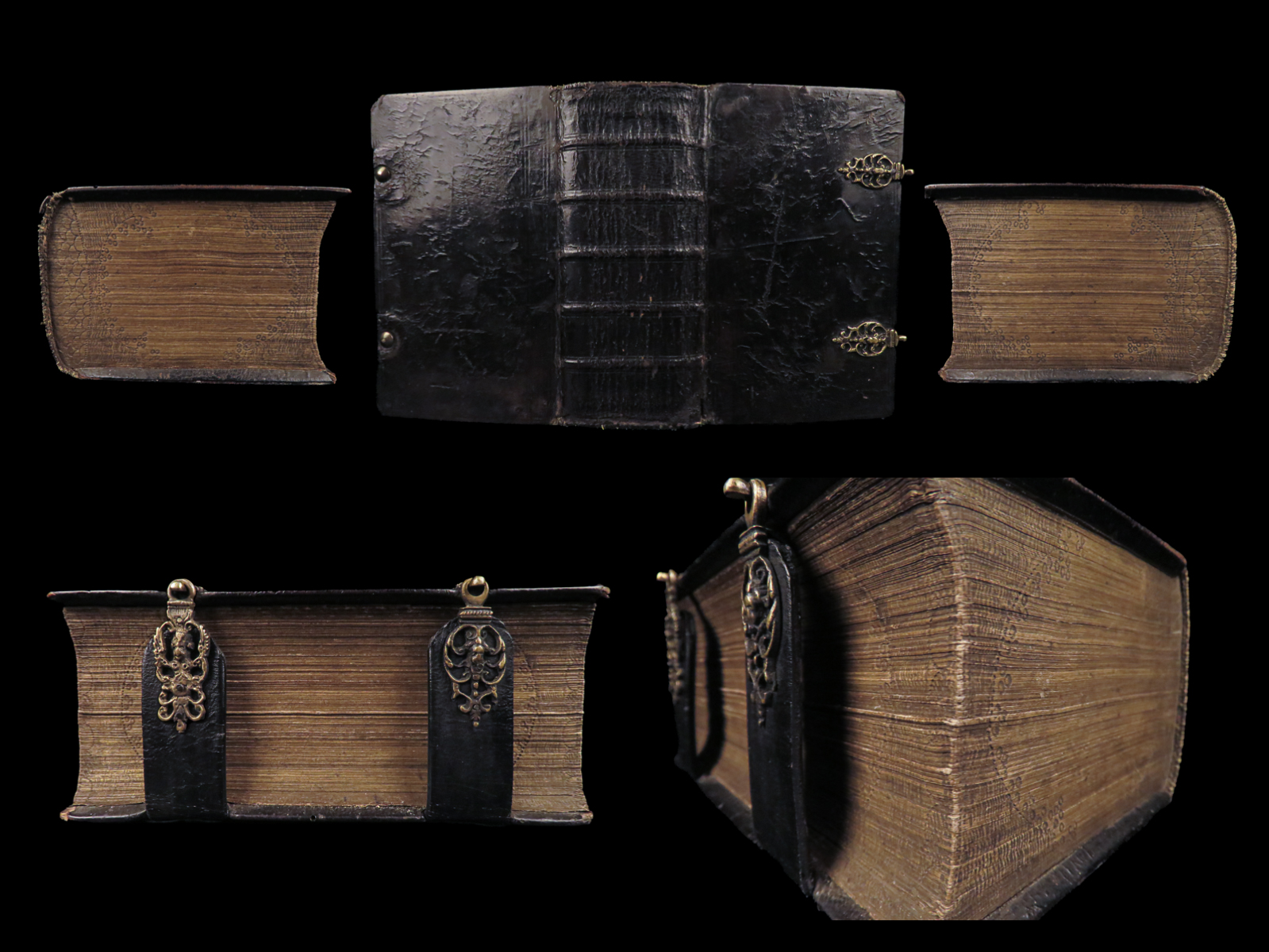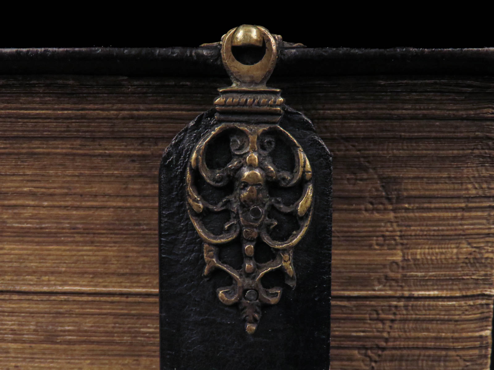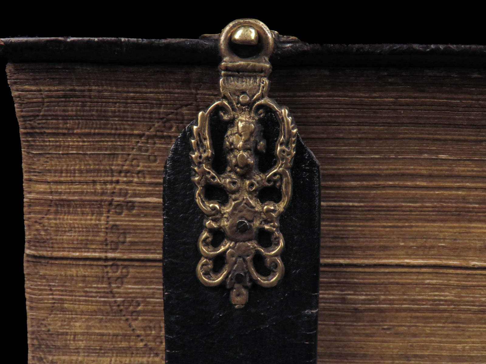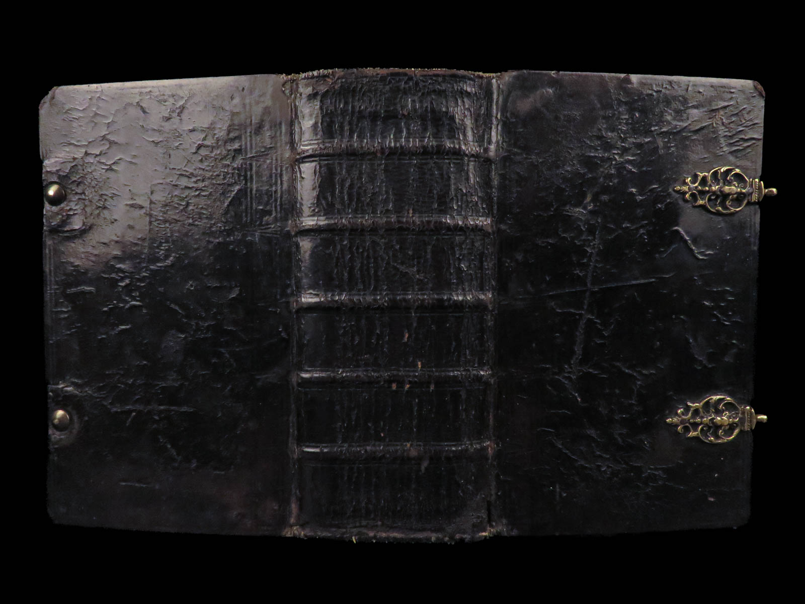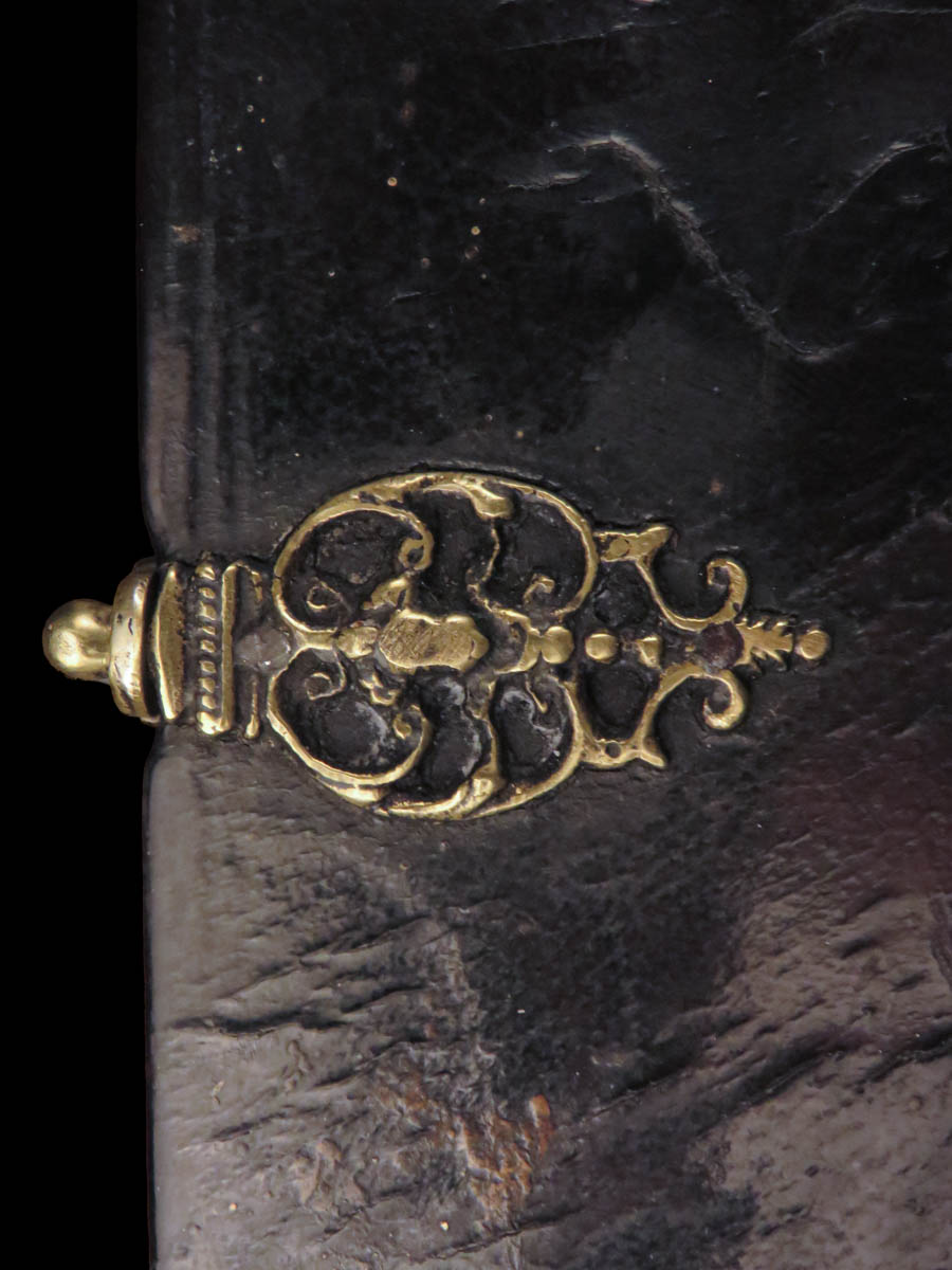 The book is in Very Good condition, bound in full leather with original brass and leather clasps fully functional. The binding remains tight and secure with only slight rubbing at corners. Decorative top and bottom page edge illustrations remain clear.