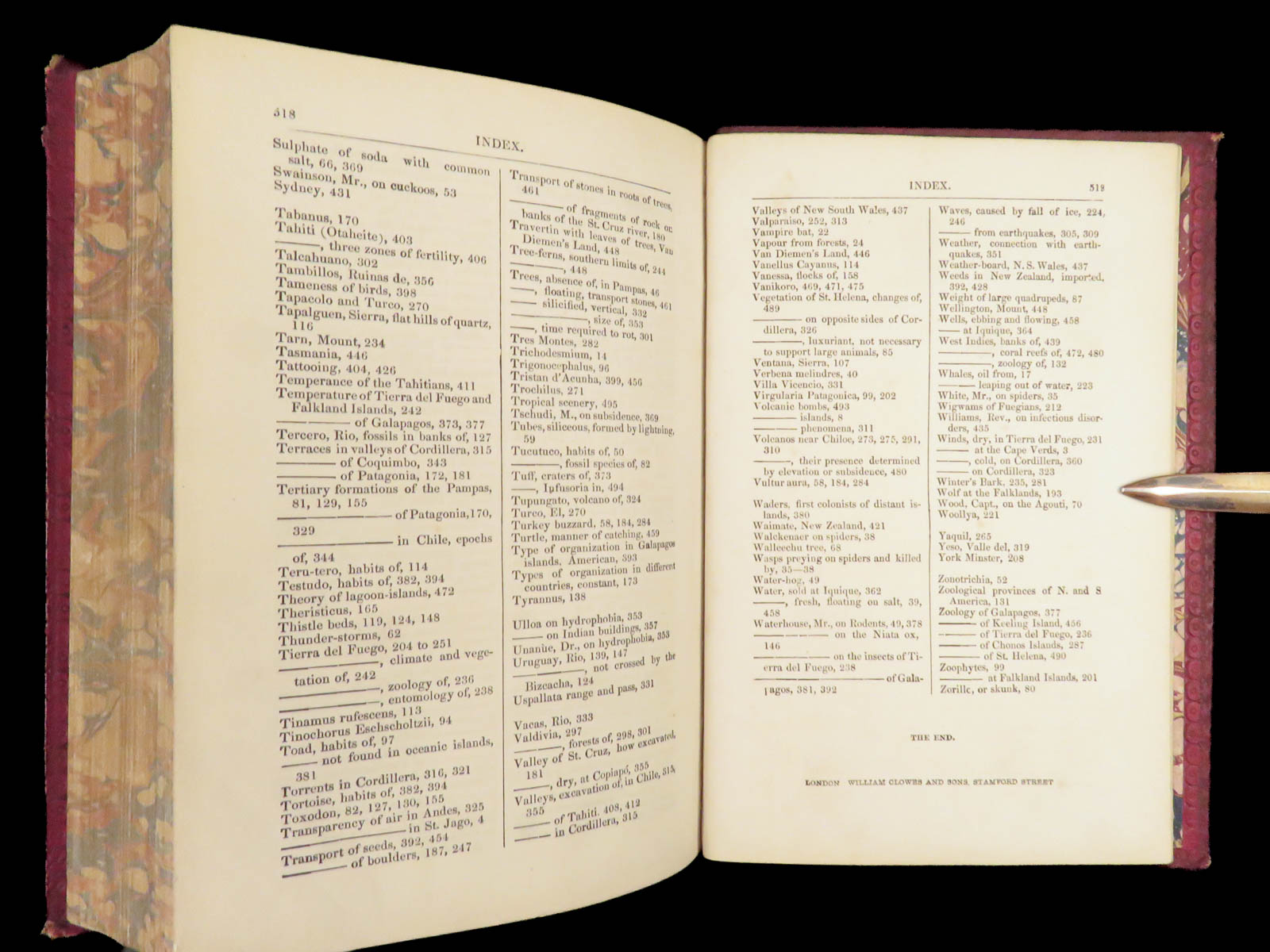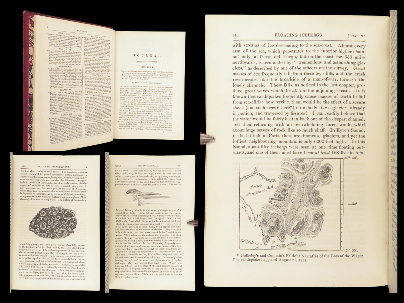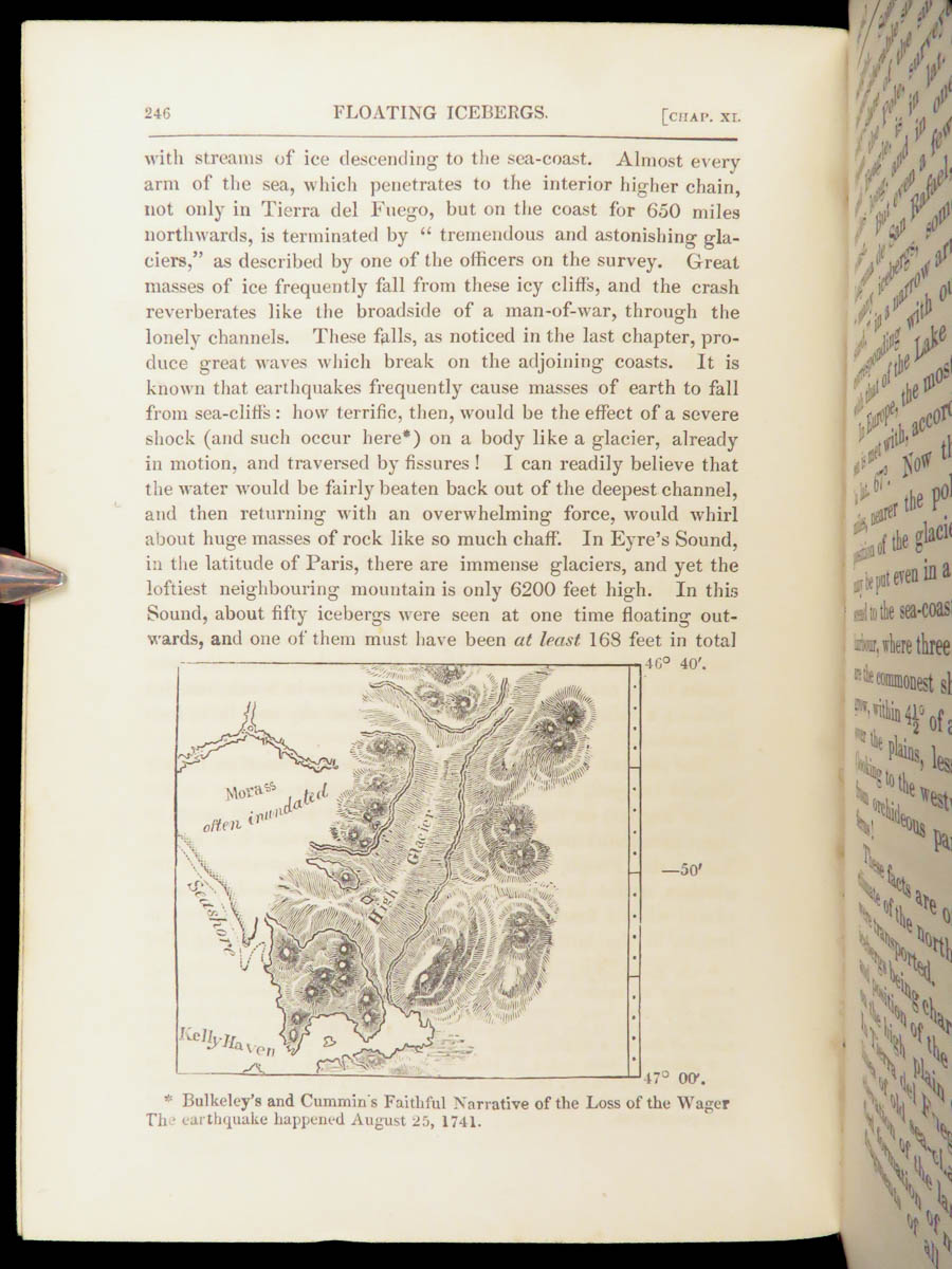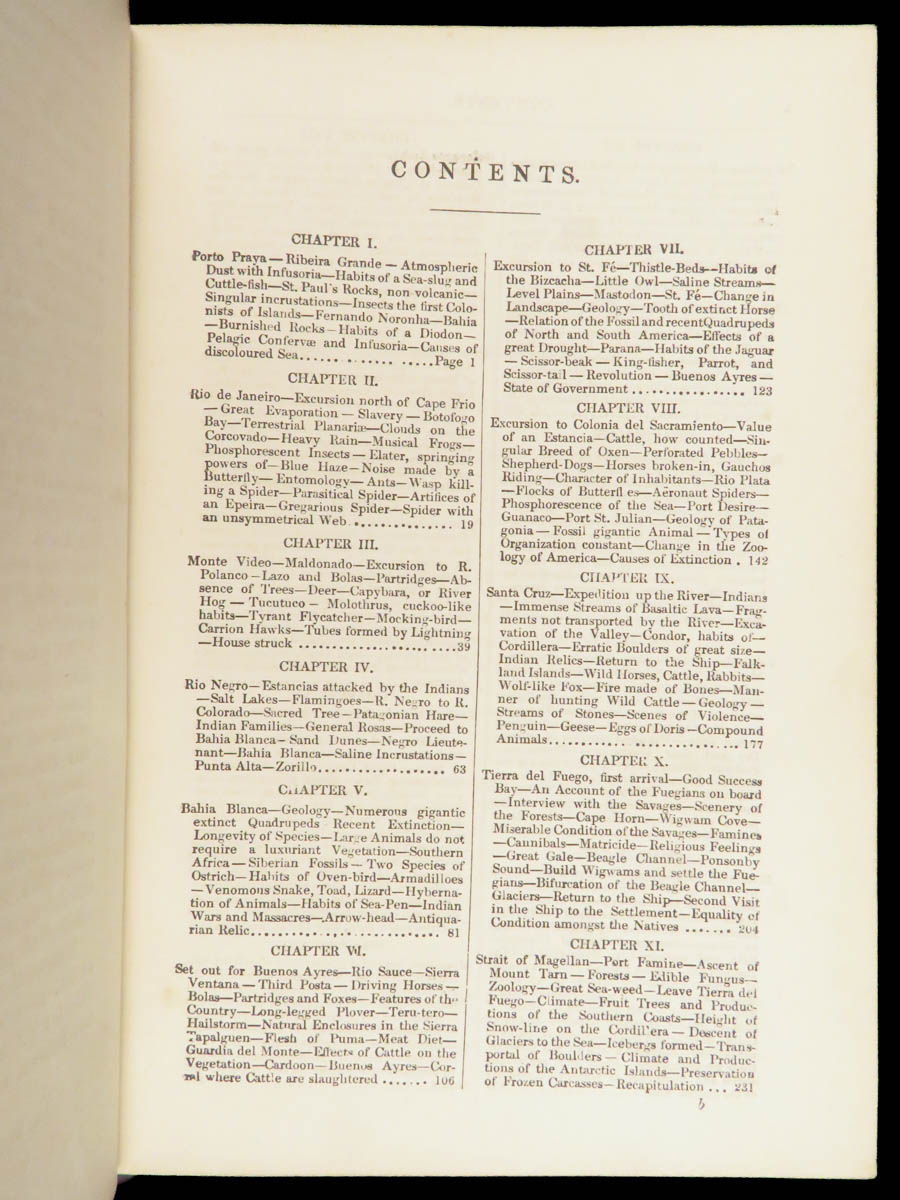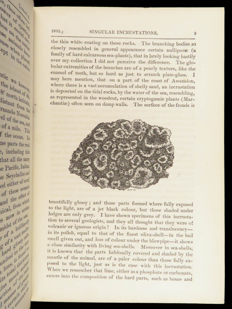 Charles Darwin’s Journal of Researches (John Murray, 1879) documents his H.M.S. Beagle voyage, recording natural and geological observations across South America and the Pacific, with numerous in-text illustrations in a morocco binding.