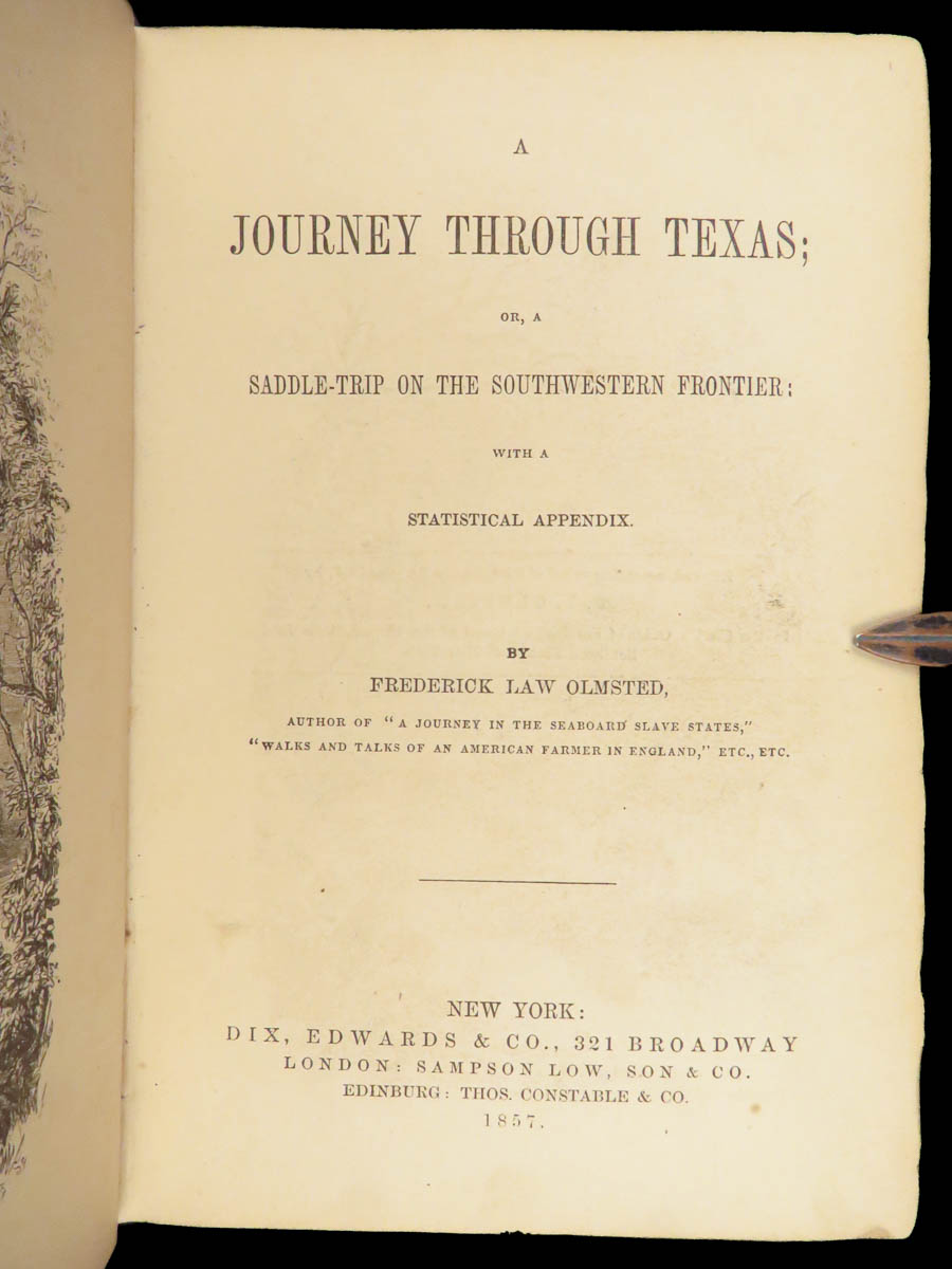 “A Journey Through Texas” is a pre-Civil War account of slavery and immigration in the American South by Frederick Law Olmsted. Olmsted was most known for his landscape architecture and design of Central Park; however, he was also commissioned by the ‘The New York Times’ to write a thorough account of the southern states – which included a description of Texas and the Texan frontier. This book offers notes on cattle drives, cotton labor and plantations, slaveholders and regulations, tobacco harvests, Mexican settlers, and the Pacific Railroad!