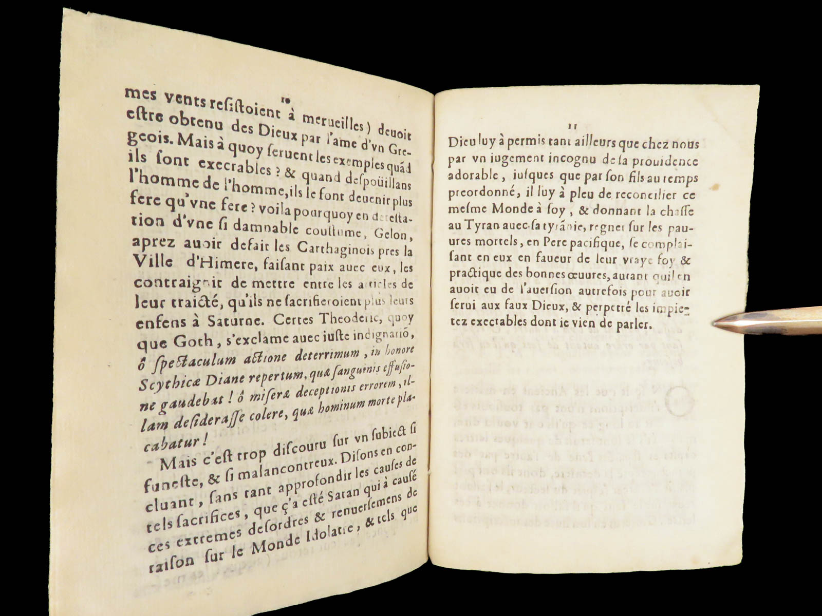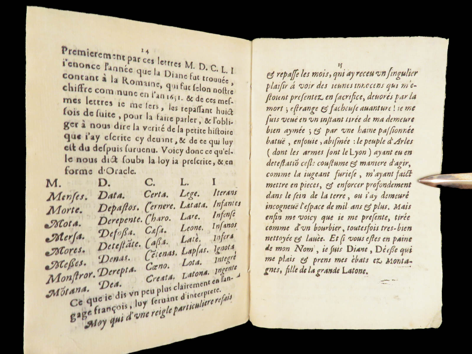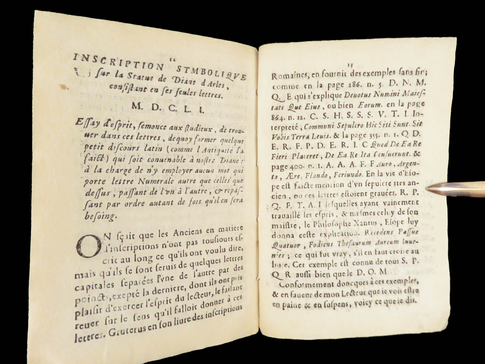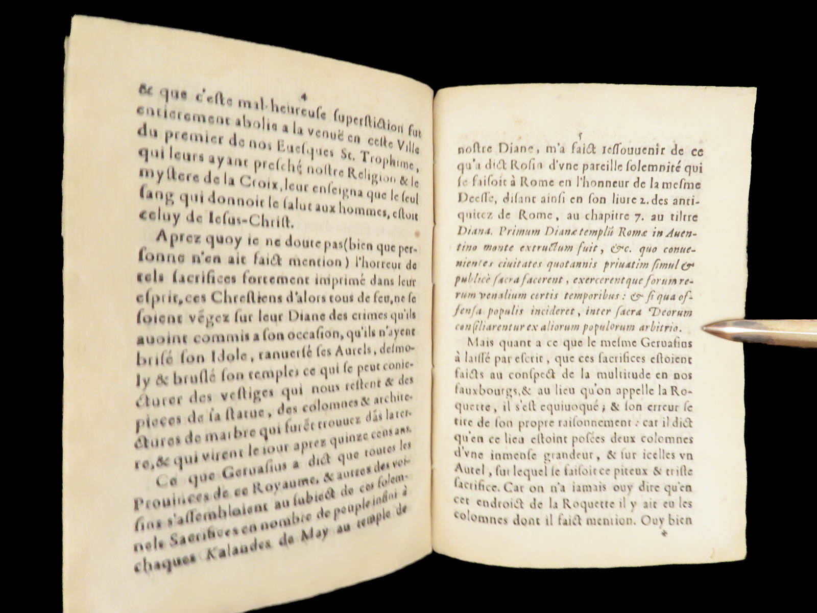 La Diane et le Iupiter d’Arles by François de Rebatu was printed in Arles in 1656. Rebatu, a royal adviser and poet, wrote this short work following the 1651 discovery of a Roman statue near the city’s ancient theatre. Scholars debated whether the figure represented Diana or Venus, though, reglardless, Rebatu took a hard stance, calling it a symbol of pagan worship and warning against celebrating such artifacts. He describes the idol as an object once linked to sacrifices, even claiming that children were once burned in its honor. This first edition captures both local reaction and religious sentiment of the time.