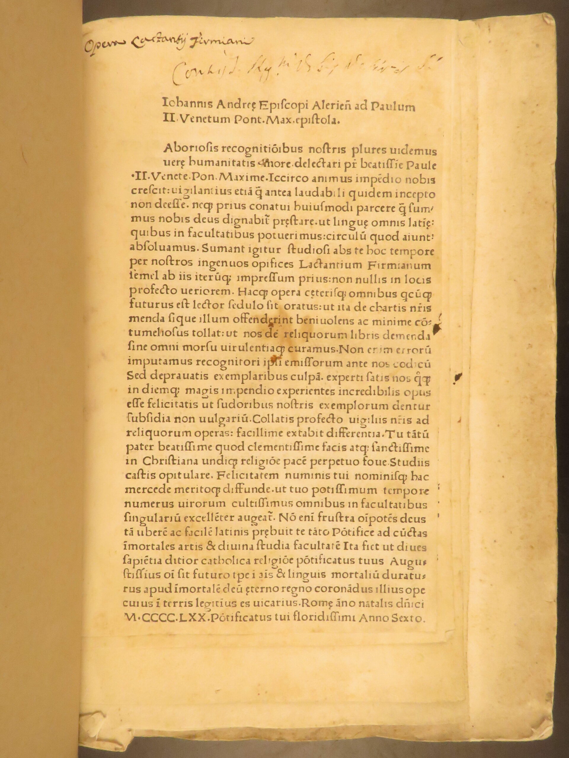 Divinae Institutiones – Lactantius – 1474 | Roma Incunable, Han & Cardella