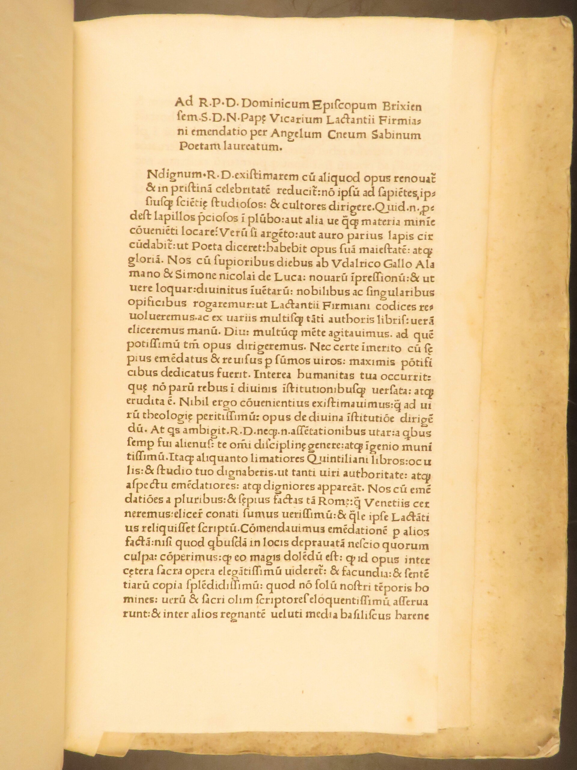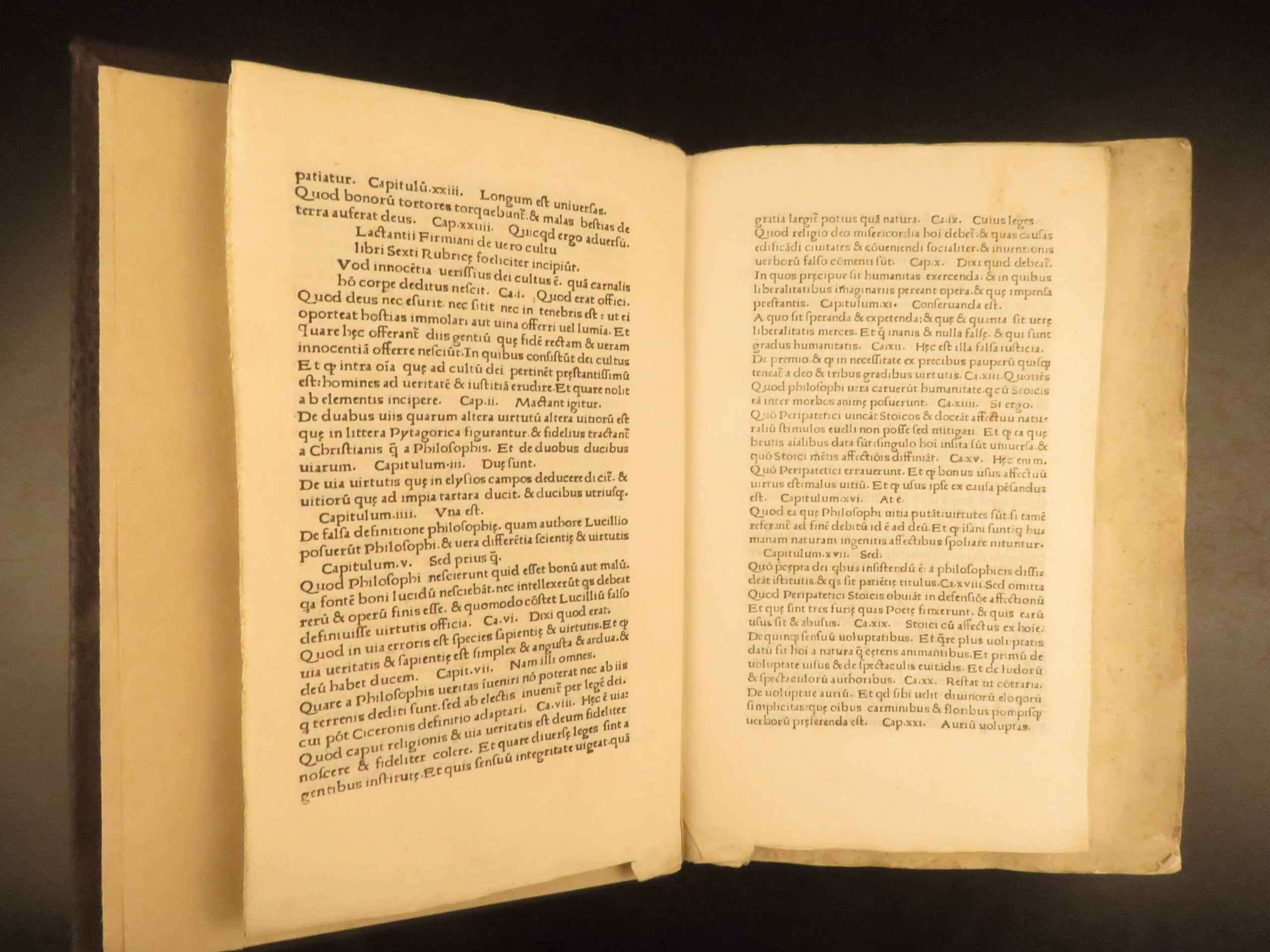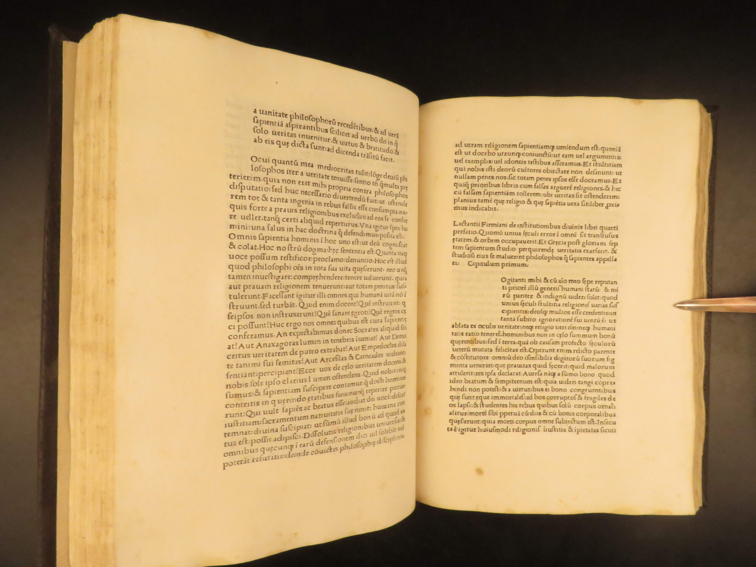 1474 Roman folio incunable of Lactantius’s Divinae Institutiones with De Ira Dei and De Opificio Dei, edited by Angelo Sabino, printed by Ulrich Han and Simon Cardella, 168 of 257 leaves present.