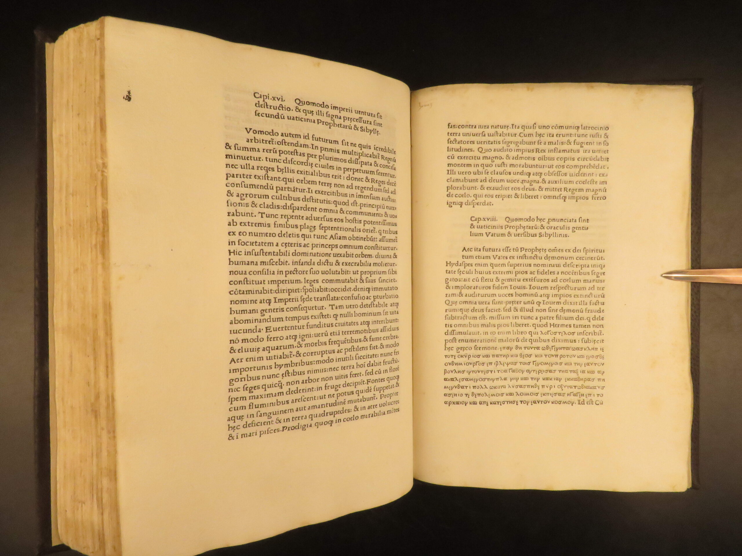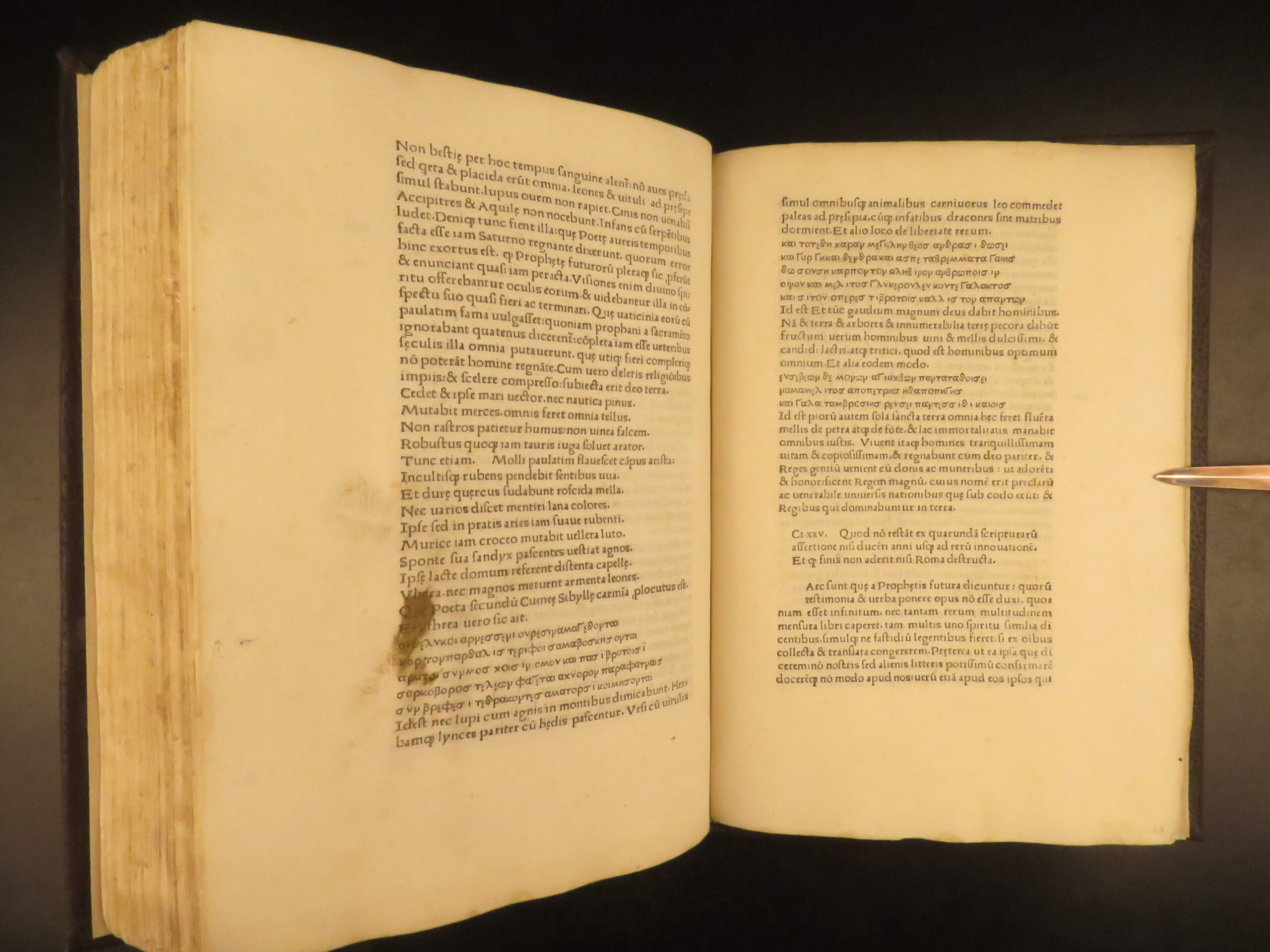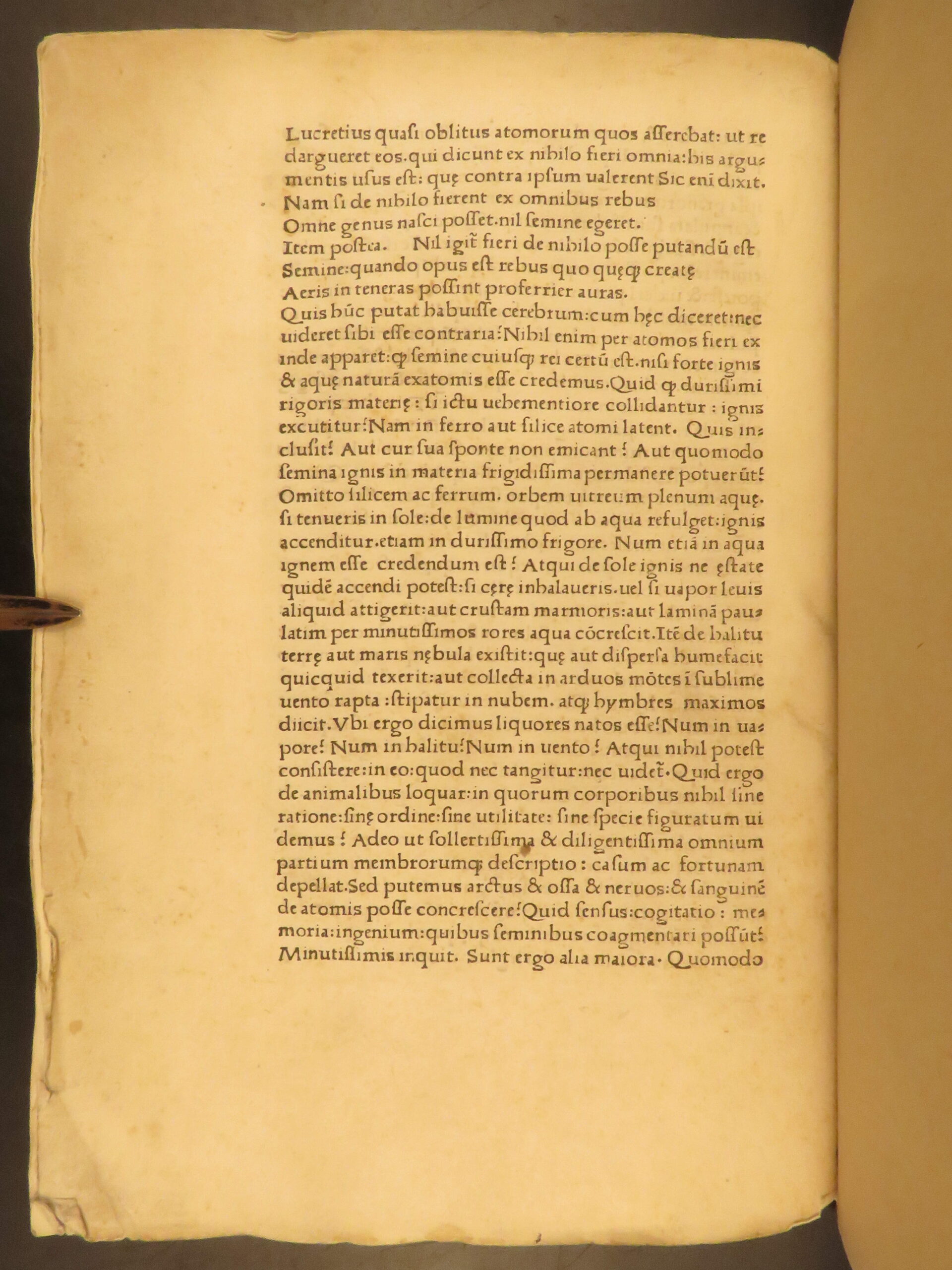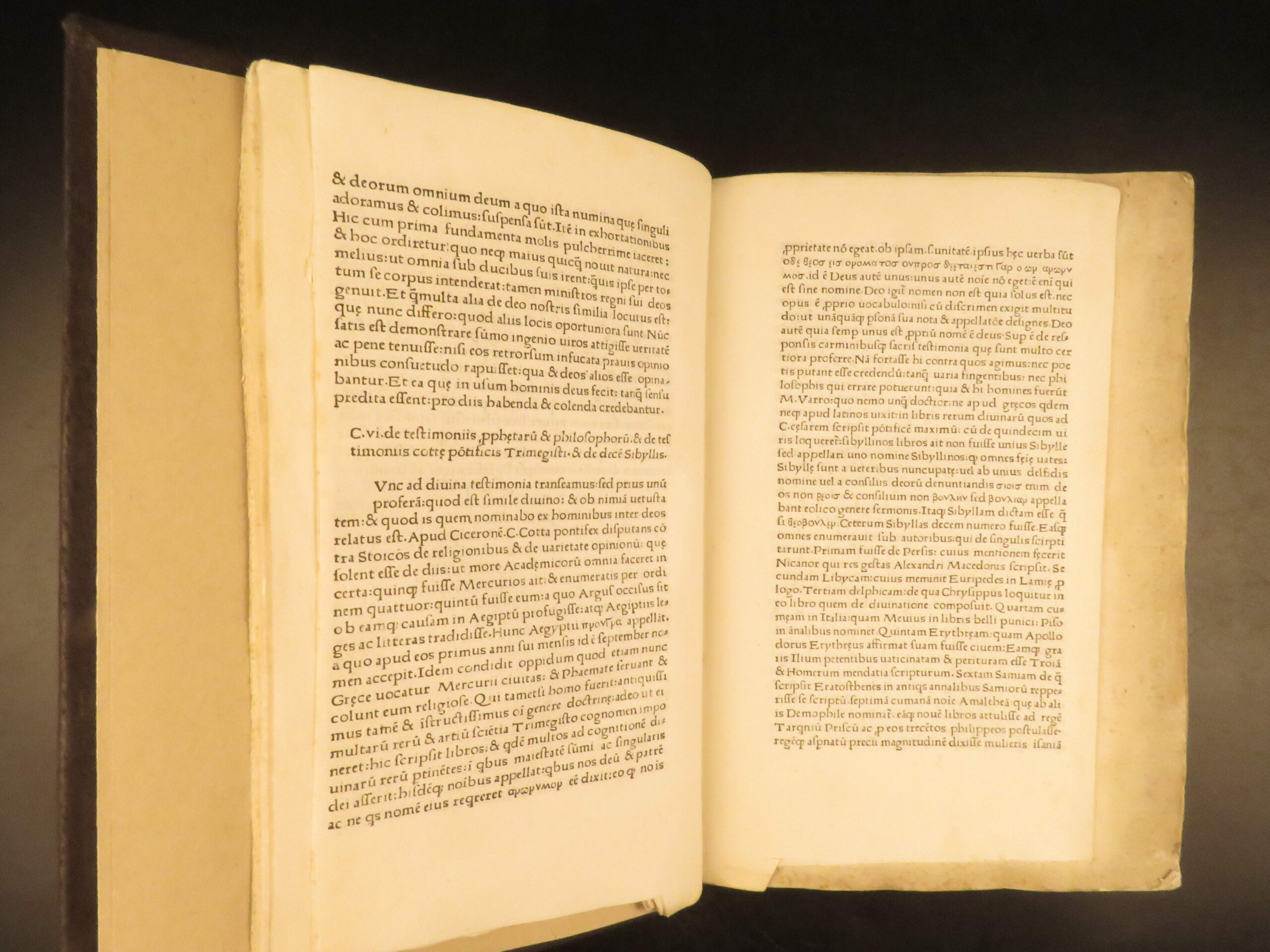1474 Roman folio incunable of Lactantius’s Divinae Institutiones with De Ira Dei and De Opificio Dei, edited by Angelo Sabino, printed by Ulrich Han and Simon Cardella, 168 of 257 leaves present.