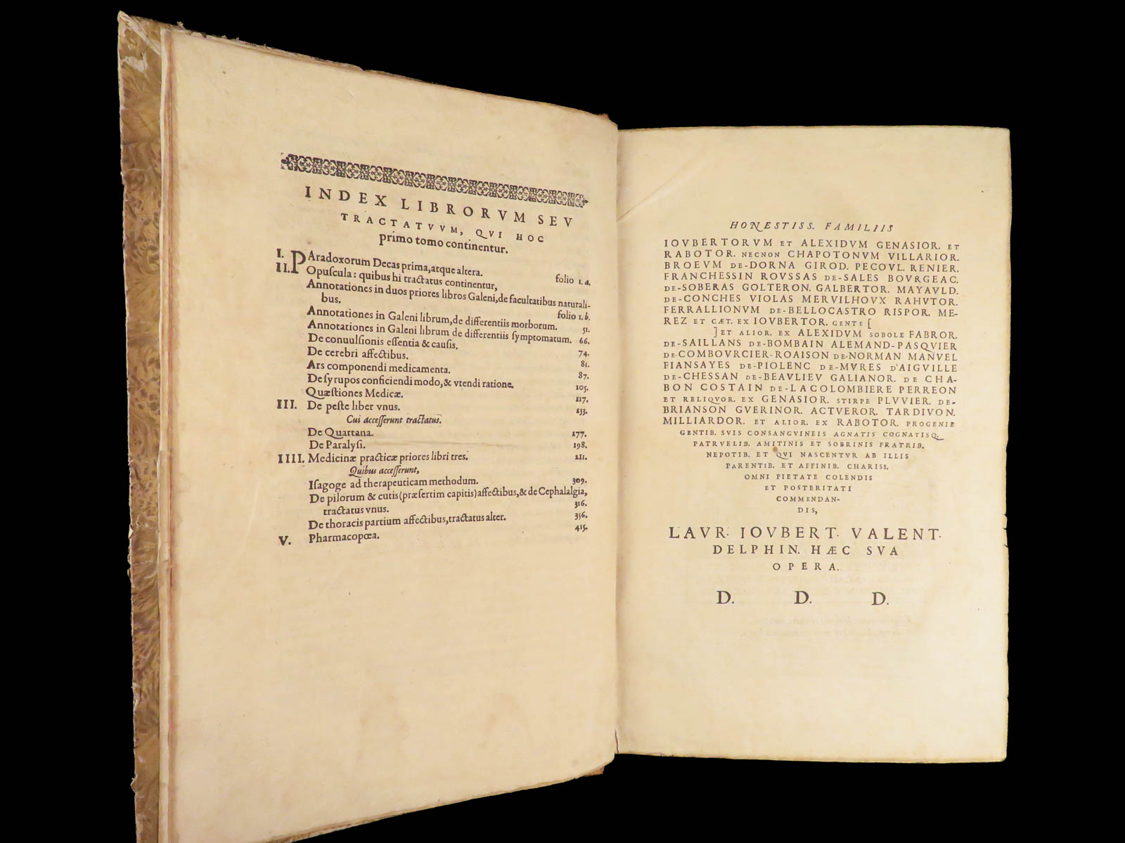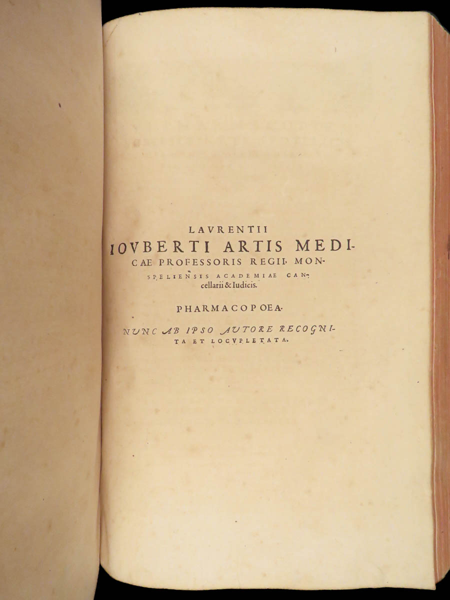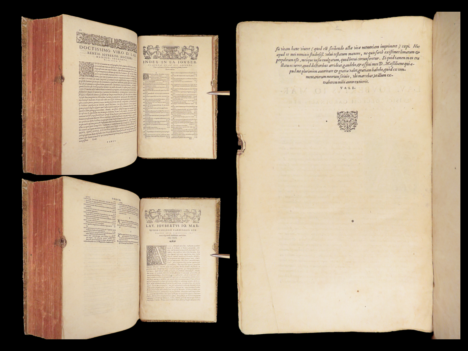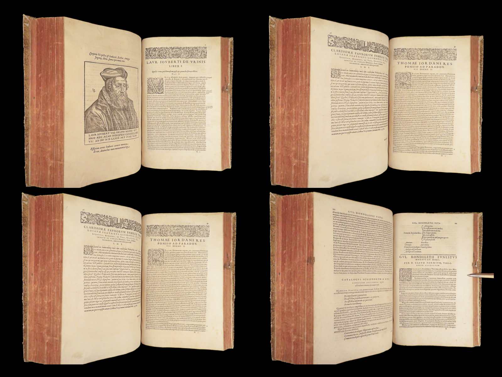 An enormous 16th-century folio of the medical works of French physician Laurent Joubert. Joubert was a royal physician serving Queen Catherine de Medici and Henry III.