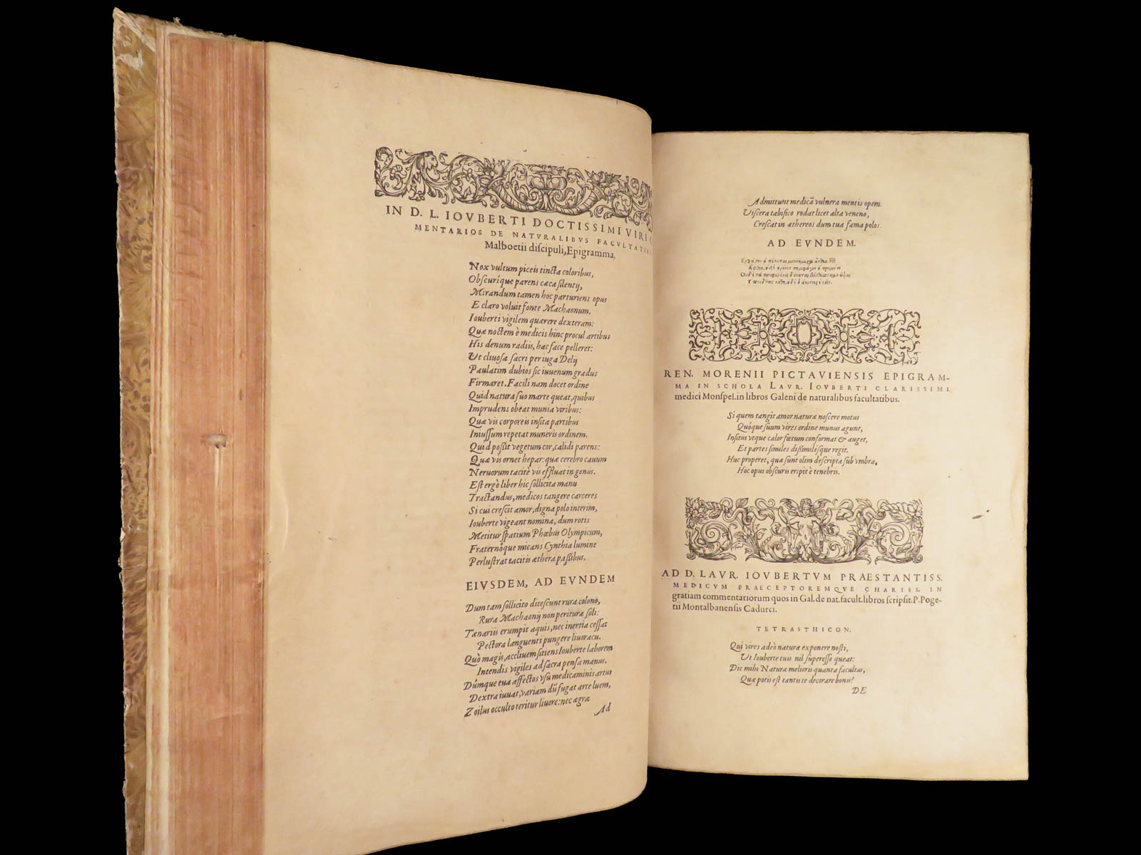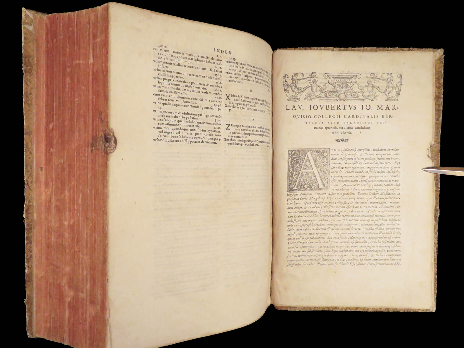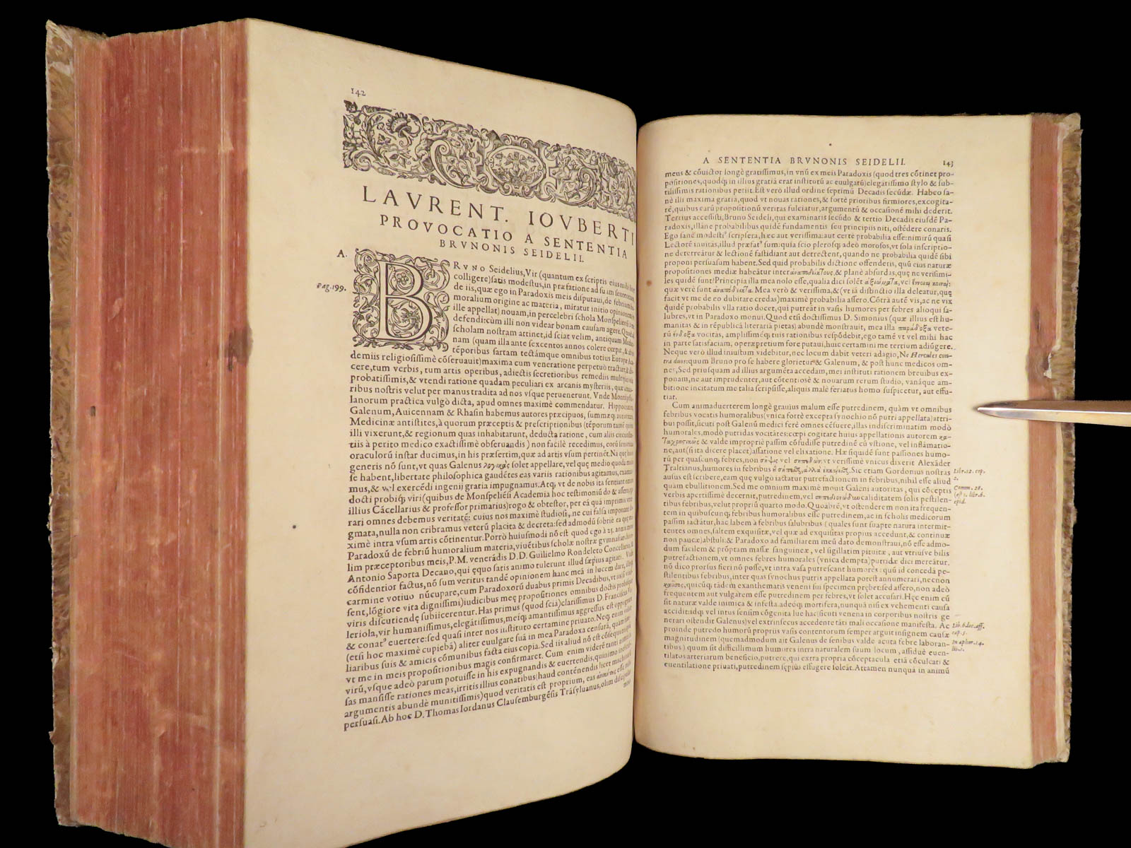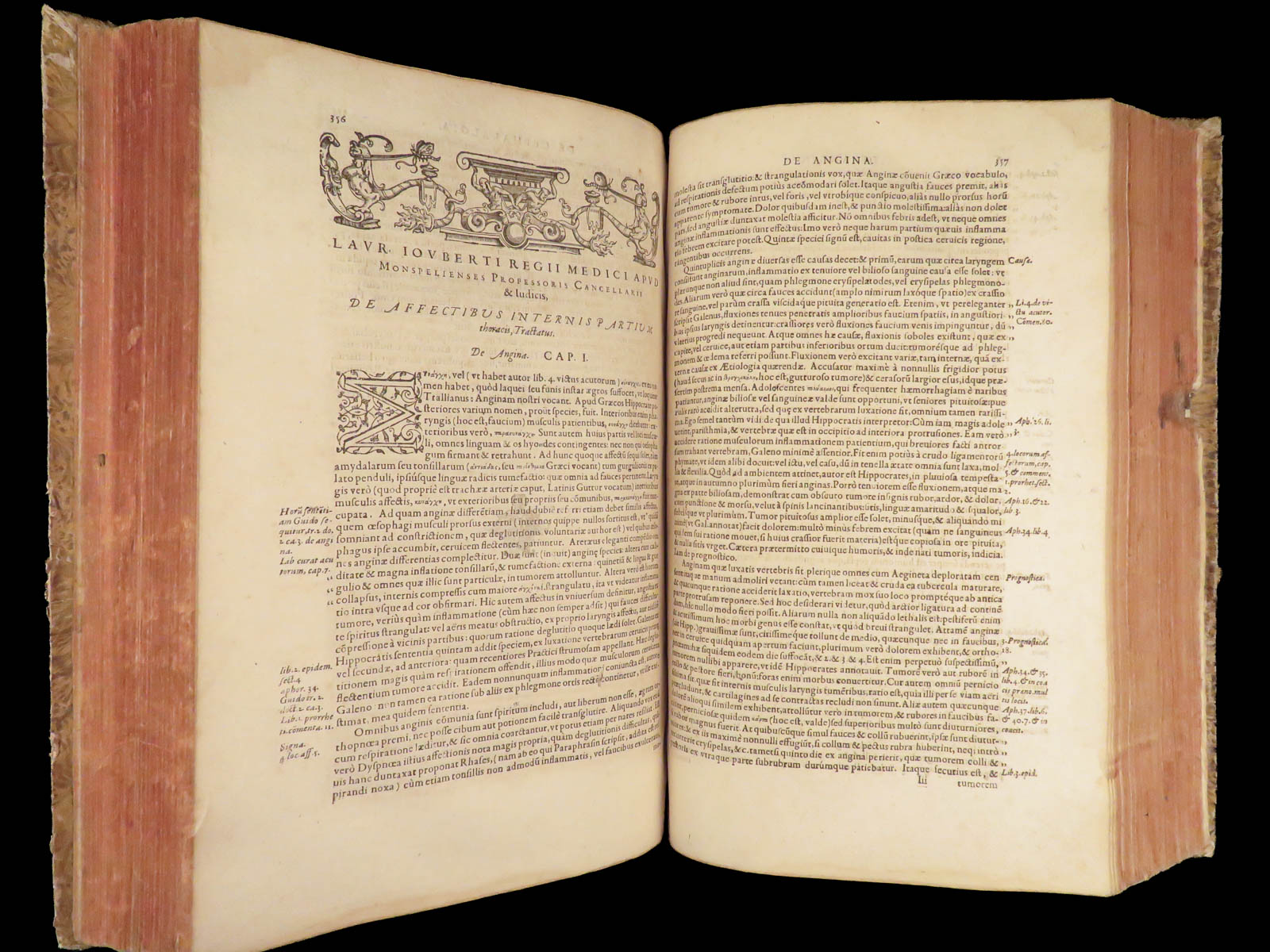 An enormous 16th-century folio of the medical works of French physician Laurent Joubert. Joubert was a royal physician serving Queen Catherine de Medici and Henry III.